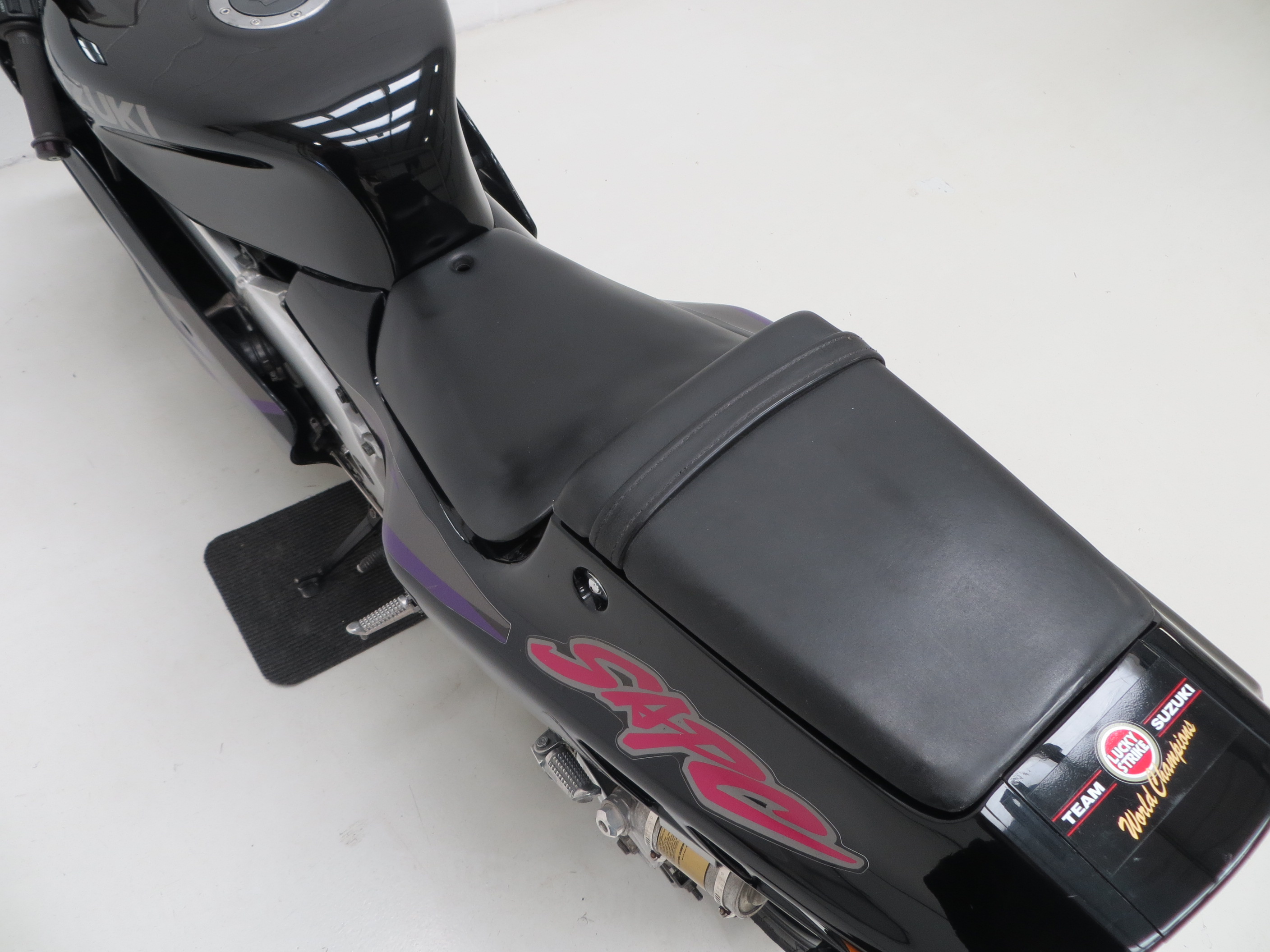 Aluminium-alloy double cradle frame, light weight high rigidity DC-ALBOX main tube, link-type rear suspension, double braced swing arm, racer-styled cowling brace, racerlike wide seat, pillion seat, lockable under-seat storage, lockable fuel tank, steering lock, rectangular double tail light, aerodynamic rear view mirrors, dual right side exhaust pipes, Automatic Exhaust Timing Control (AETC), Suzuki Advanced Power Control (SAPC), Multiple Digital Ignition System (MDIS), Ram Air cooling system, race-proven inverted front fork, extensive side faring, front cowling incorporating windshield, tachometer, temperature gauge, parking lights.