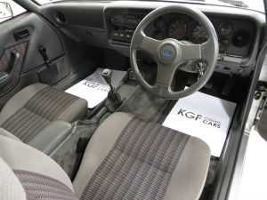 The factory fitted 1593cc OHC ‘pinto’ unit with single venturi carburettor is famed for it’s robust and simplistic mechanics. The engine is quiet and performs brilliantly with a top speed of 99mph and 0-60mph time of 13.0 seconds. The engine bay is beautifully clean with factory stickers and plates displayed and even bright factory markings to the cam cover, long lost or at least very faded on most examples! The 5-speed gearbox is light and works through the gears precisely, and the clutch feels positive.