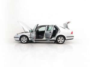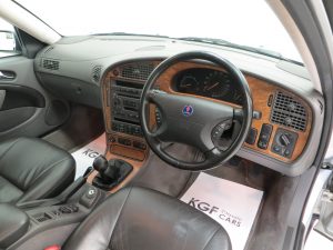 Saab were renowned for their innovative, safe and supremely comfortable interiors and this 9-5 is certainly no exception. The original Charcoal full leather, (Code K10), is very clean and in superb condition with only very light stretching to the hide on the driver’s seat. An impressive array of safety features including multiple airbags and even ISOFIX child safety points to make this the ultimate safety conscious retro barge! The dashboard with cultivated burr walnut instrument panels is in excellent order and absolutely all equipment and functions operate perfectly including the park assist, ice-cold air conditioning, heated seats and cruise control. The carpets have been protected from new by genuine Saab fitted over mats and the doors cards and headlining are immaculate. A well-engineered, clean, sumptuous and super safe interior.