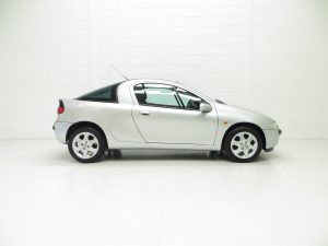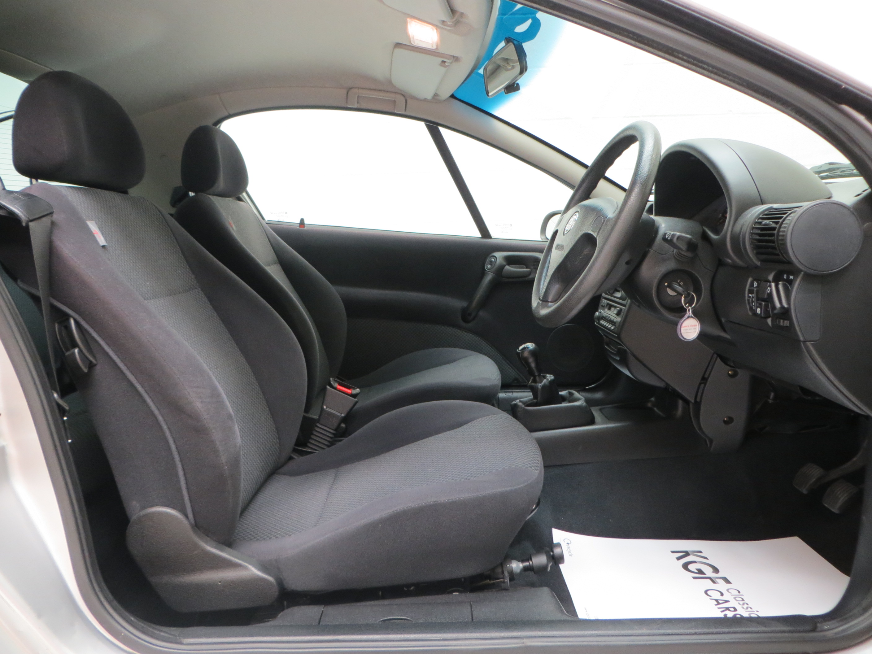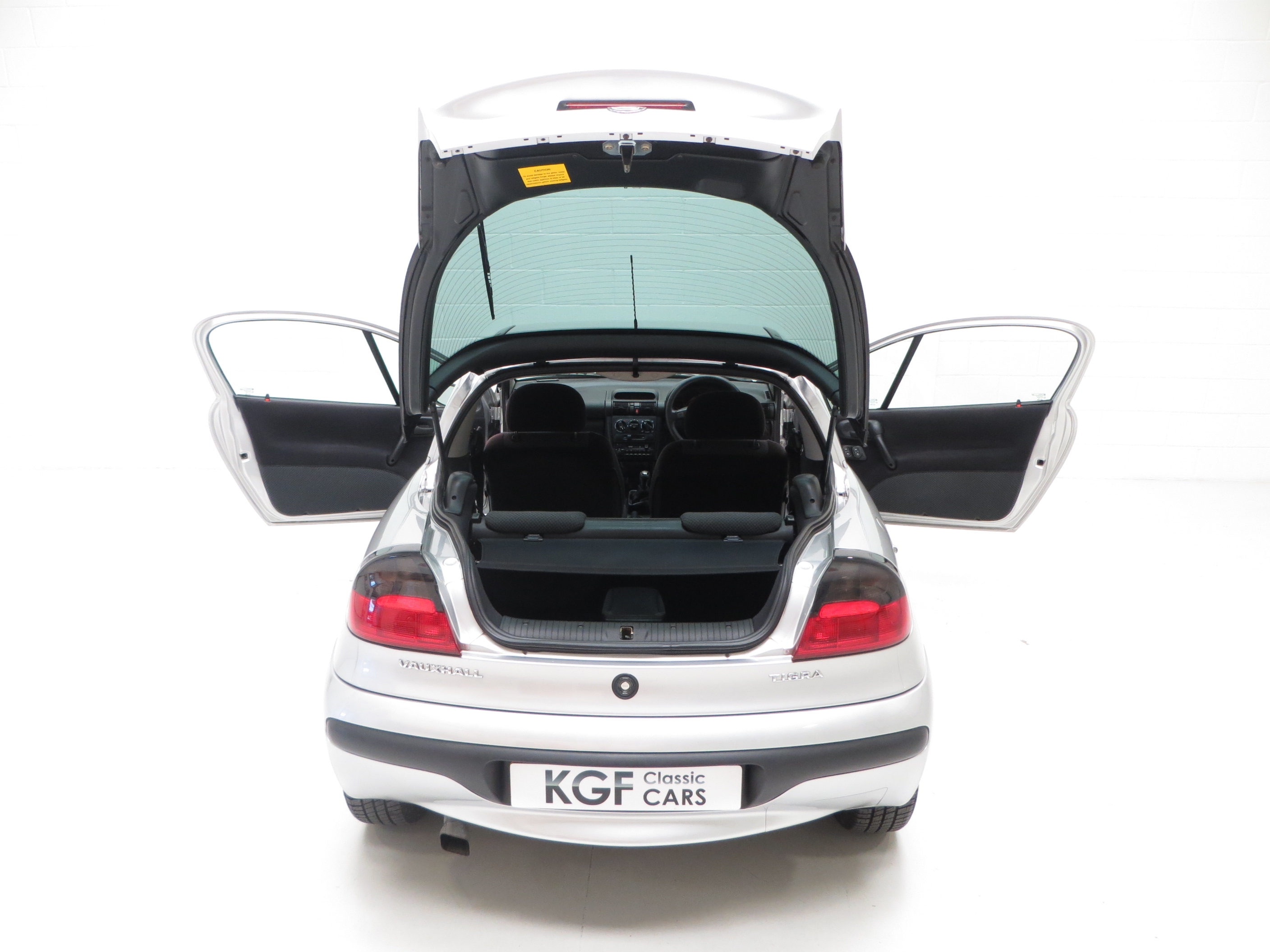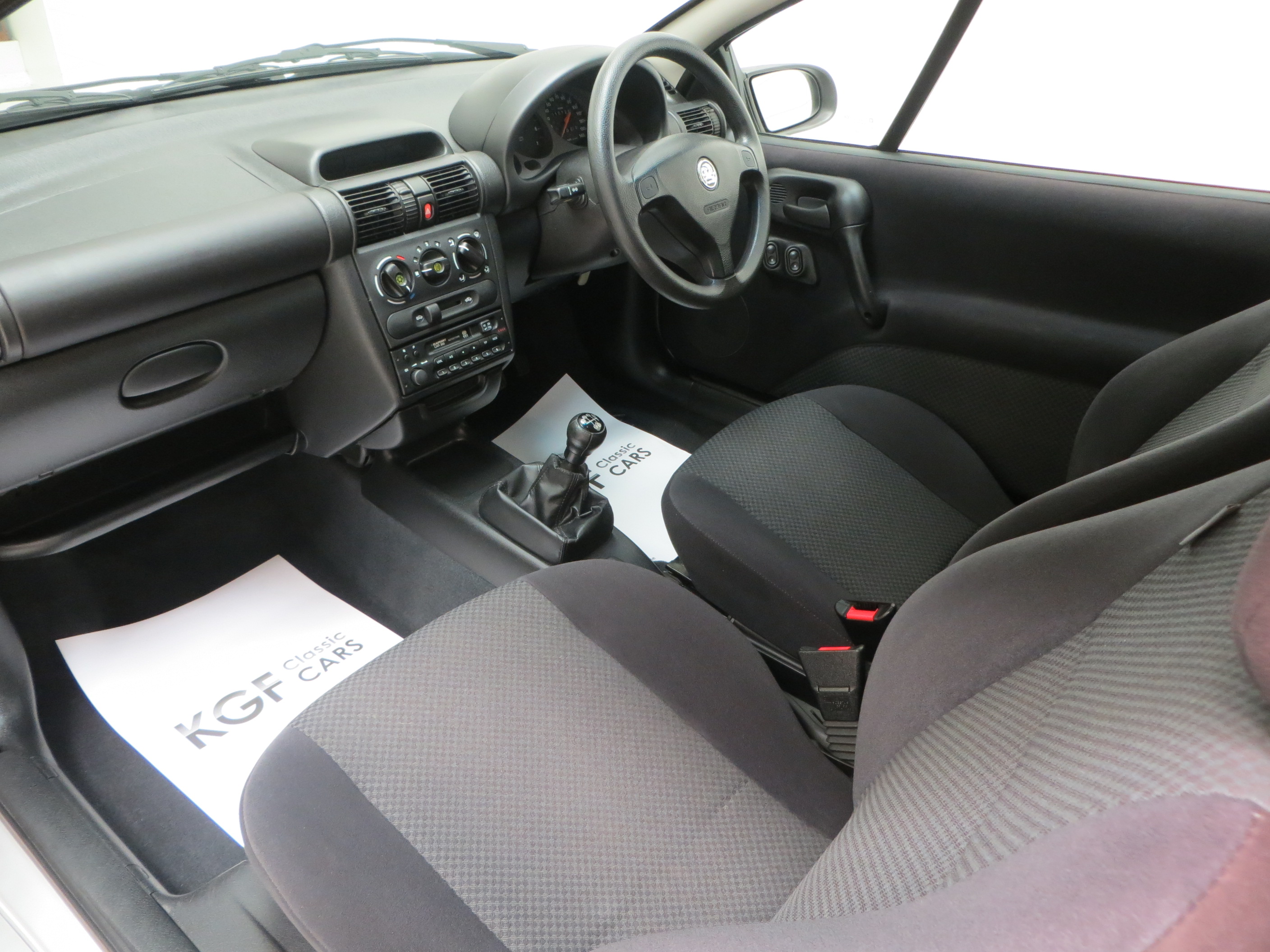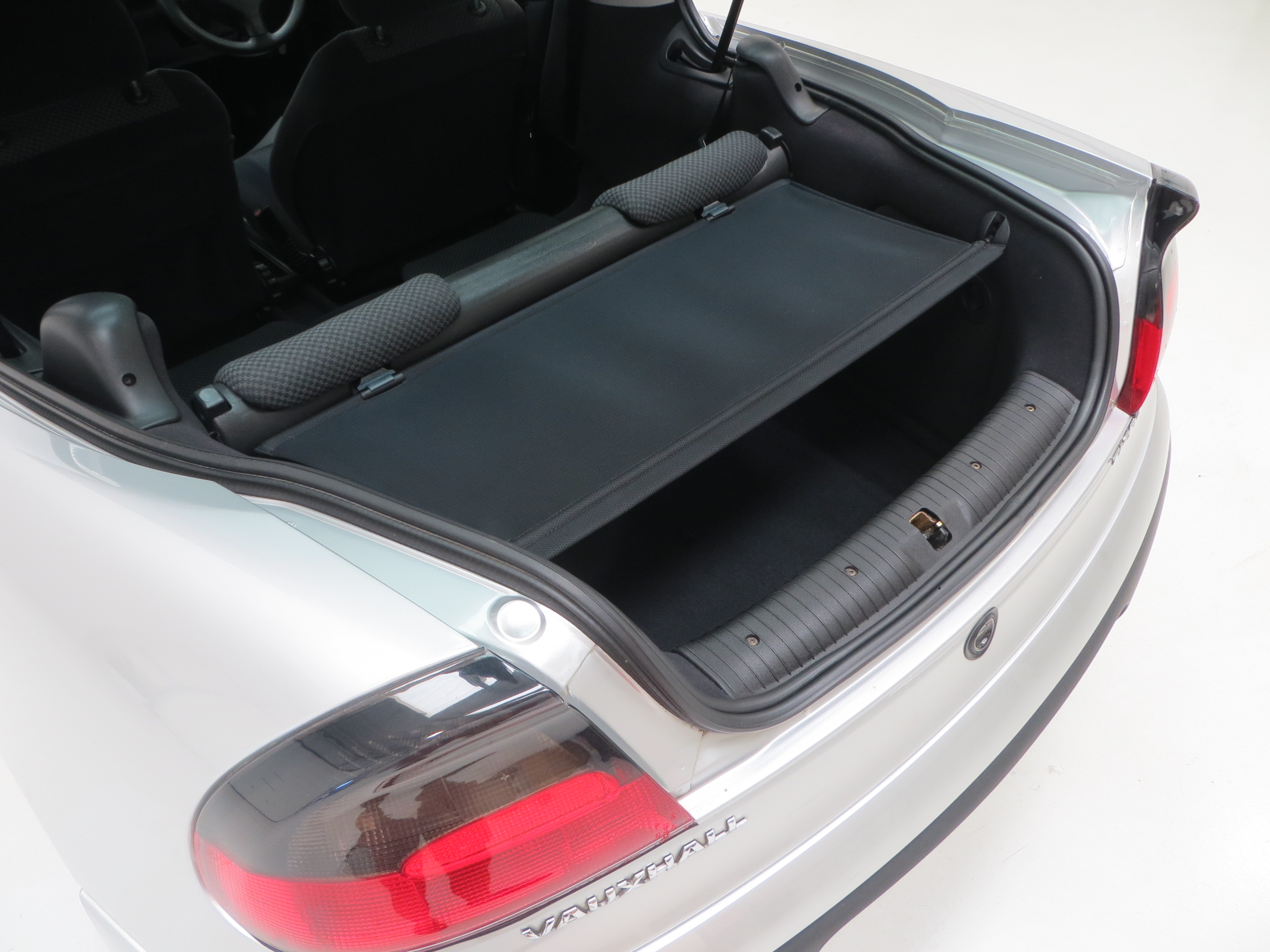 Reclining sports style front seats upholstered in Chequers cloth are unmarked and exactly as Vauxhall made in 1999! No wear or damage and a real perfectionists delight, even the Tigra seat tags remain attached. All controls, switches and dials function including the multi-function LCD display incorporating digital clock, outside air temperature, date and audio information. The correct Blaupunkt CAR 300 stereo remains in situ. The boot area is spotlessly clean and lifting the boot carpet continues the showroom fresh experience. Amazing.