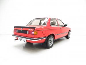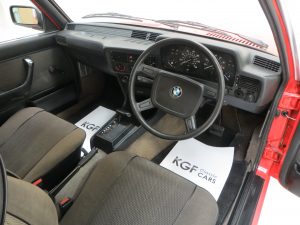 The unmistakable classic lines of the BMW E21 are typical of 1970’s and 1980’s BMW’s, particularly the brawny styling of the shark nose front end. This excellent example is finished in ever popular BMW Henna Red (Hennarot – Code 052). There is a bright shine to the paintwork and all panels are original, straight and free from damage. Whilst very presentable, minor age related markings and evidence of remedial cosmetic paintwork is visible upon close inspection, most notable being a small repair to the bonnet edge. The extensive original chrome brightwork has a glorious mirror finish and the trim sections are in outstanding condition. All glass is the factory BMW Sekurit fitment with number plate etching. Delicate items such as the twin headlamp wipers and genuine BMW sunroof deflector and mud flaps are perfectly preserved. Having been cossetted by the first owner until 2016, this garage kept example is unmolested and ready for enjoyment.