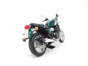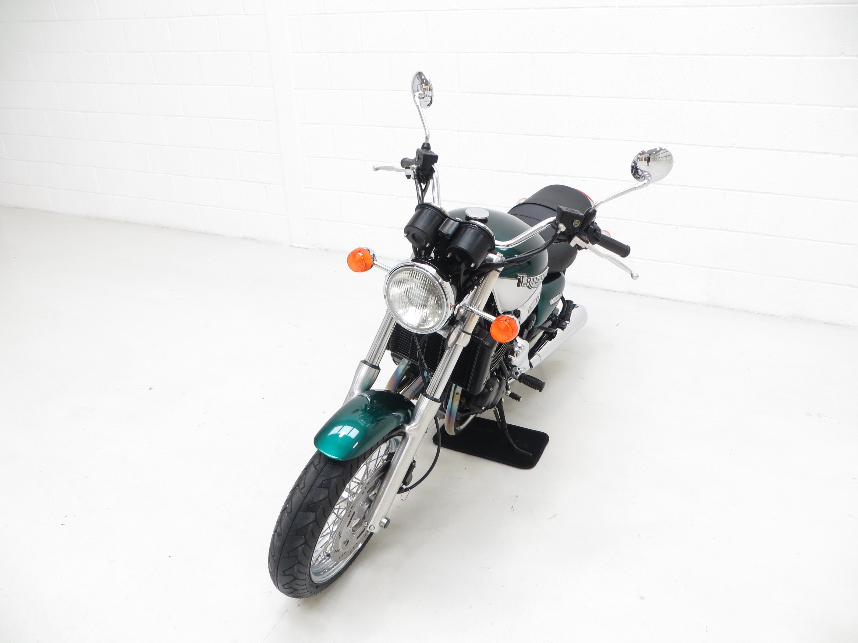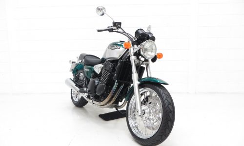 An exhilarating classic design from Triumph, this Legend TT was derived from the Thunderbird 900 as a no-frills rawer alternative. This exceptional example is finished in factory original Imperial Green, (Code 673). Often misused, the descriptive terms ‘timewarp’ and ‘virtually as new’ are entirely suitable with this exceptional one cossetting owner machine. A mere 1,436 miles covered and strict heated garage storage underneath a cover, has ensured the paintwork and chrome pieces are exceptional. A miniscule scratch to the rear mudguard is only just visible. The exposed framework displays clearly visible factory plates and VIN stamping to the stock, and the original PDI colour markings are untouched. The supplying dealer number plate remains fitted. All trims sections, lights, badges and decals are as new, as are the seats, foot pegs and handlebar grips. This beautiful machine simply gleams and certainly lives up to its namesake, Legend.