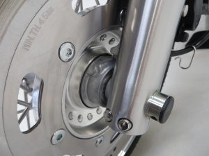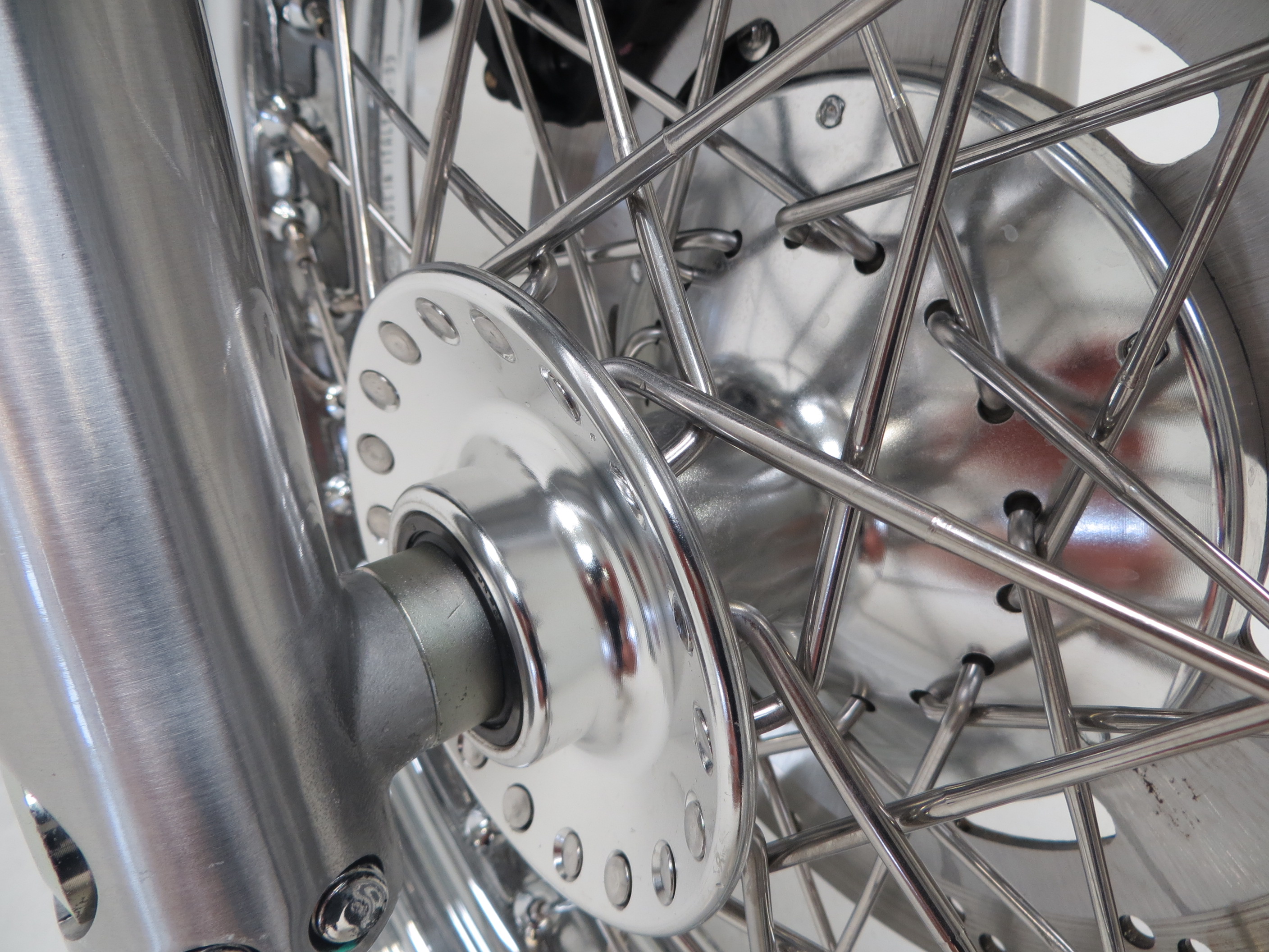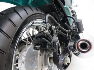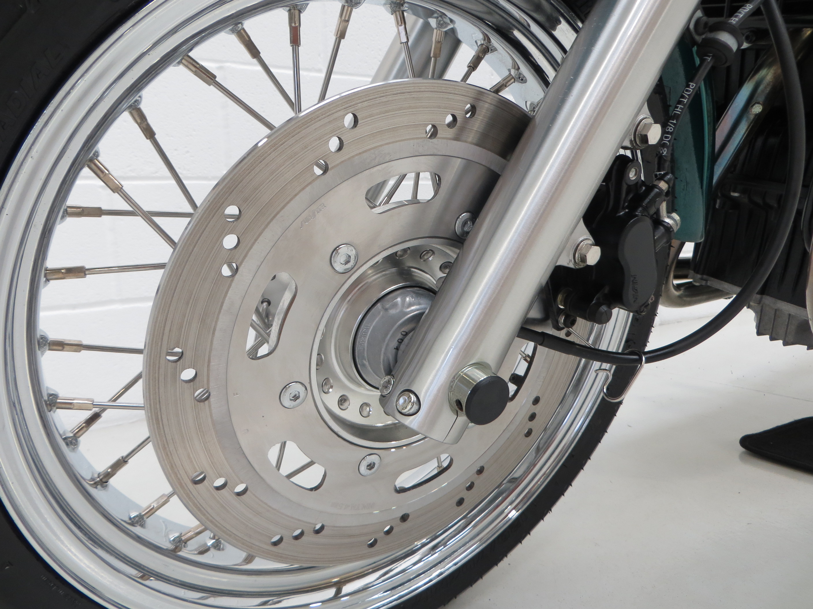 The beautiful original chrome laced wheels, 17in with 36 spokes to the front and 40 spokes to the rear, are virtually perfect with dazzling bright finish. Quality Bridgestone tyres have masses of tread remaining. The standard large disc brakes of size 320mm front and 285mm rear with two-piston callipers take care of safe stopping.