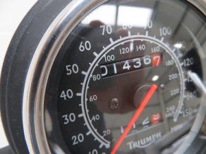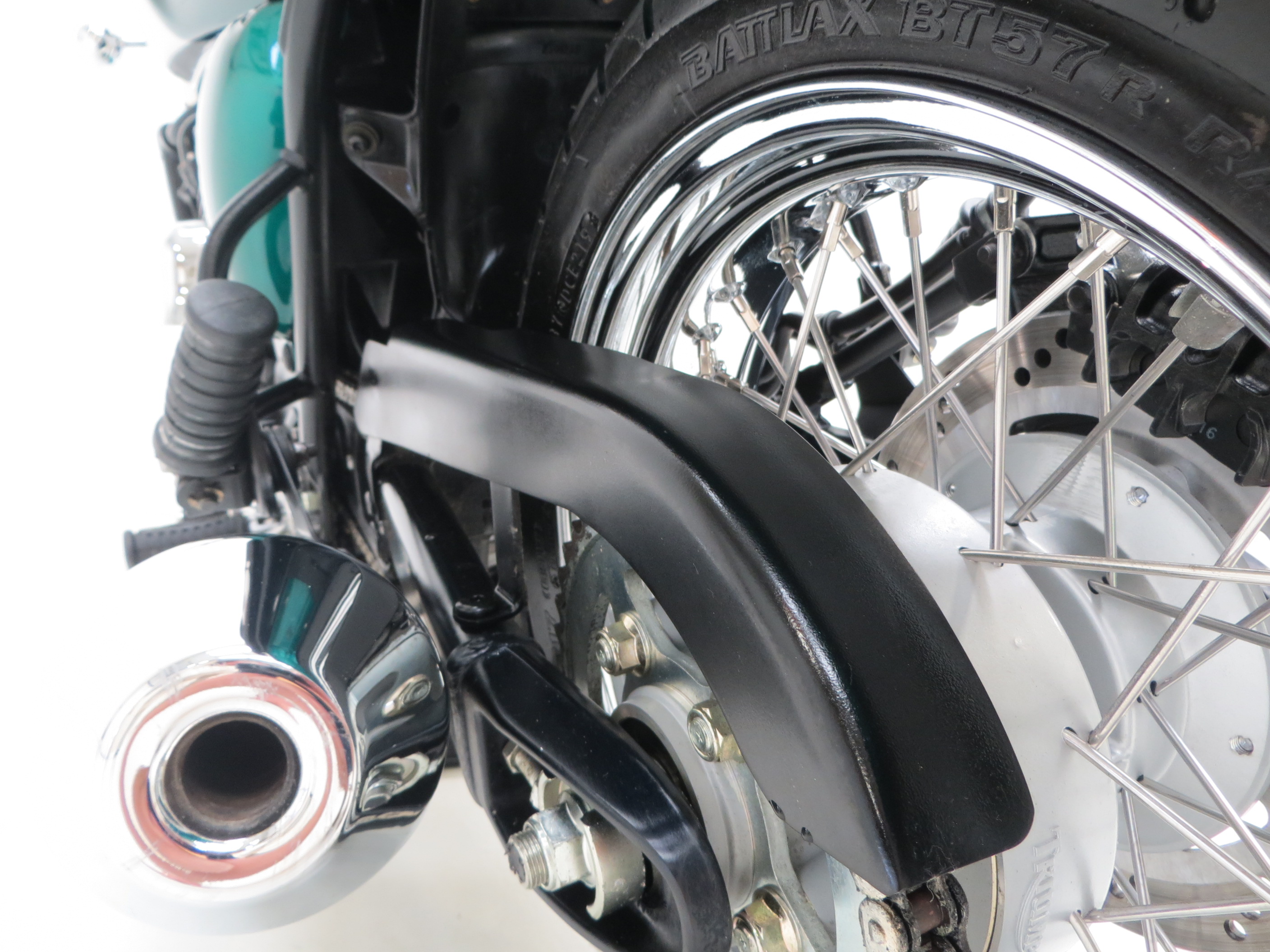 Factory powder coated in satin black, the punchy three cylinder 885cc DOHC engine is quenched through 3 x 36mm flat side CV carburettors and develops 69bhp at 8000rpm. An intoxicating growl through the beautifully ornate chromed reverse cone megaphone silencers can be enjoyed upon each rap of the throttle! As you would expect from such a low mileage and cosseted machine, the engine is a piece of ornamental beauty, proudly on display, a detailer’s paradise! Firing instantly on the electric start, the bike performs perfectly and the transmission with wet multi-plate type clutch works through each of the five gears effortlessly.