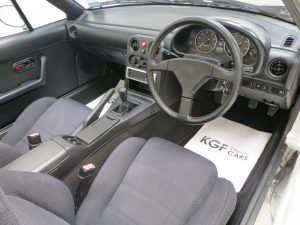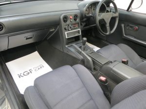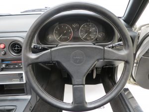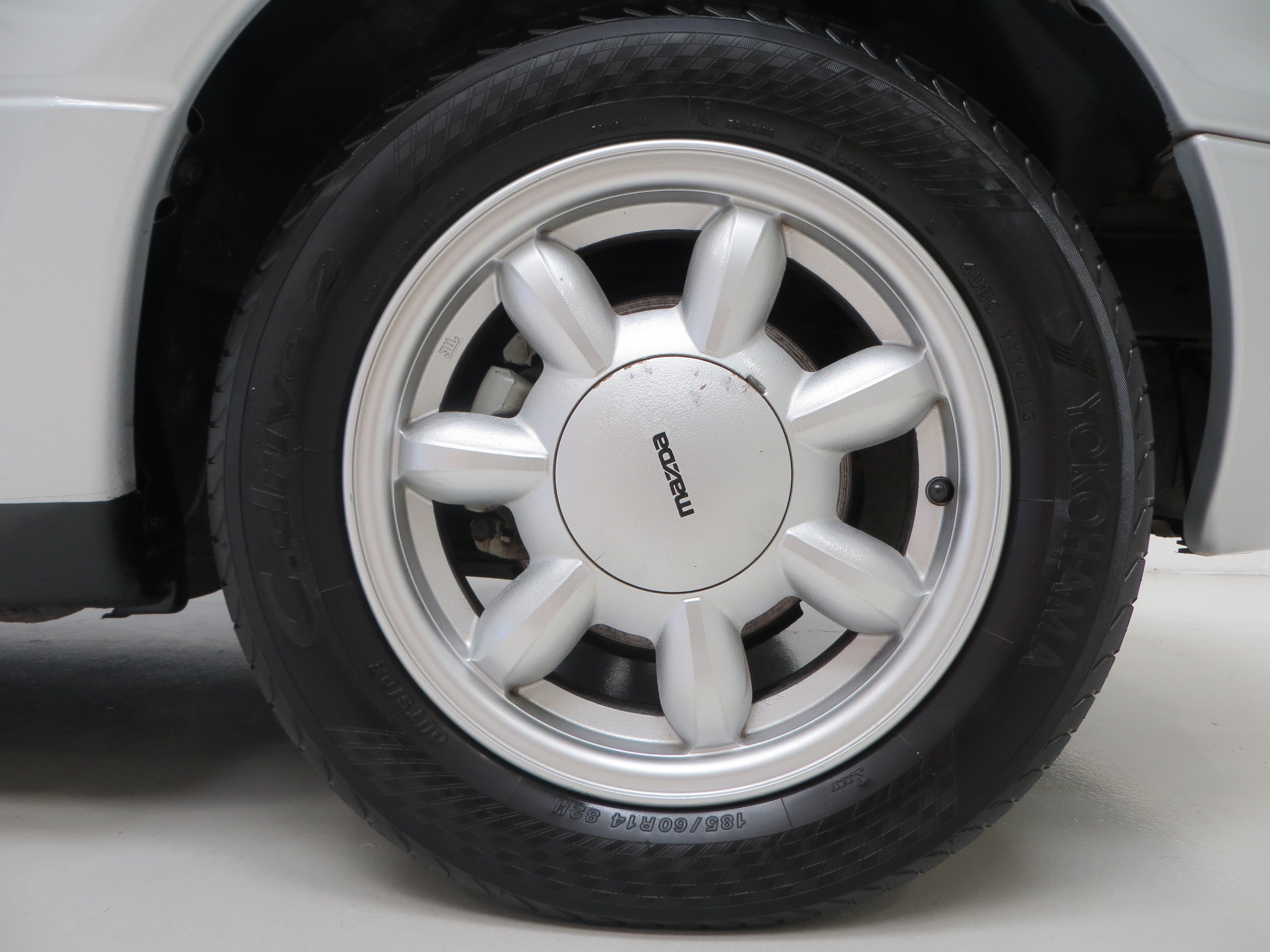 This unmodified example retains its factory fitted 14 x 5.5j alloy wheels and correct Mazda centre caps, affectionately known as the ‘Daisy’ style. The wheels are in excellent order with no kerbing damage and only faint markings. Matching Yokohama 185/60R14 tyres fitted in 2016 are virtually as new. The space saver spare tyre is the factory supplied Bridgestone which is unused and has the coloured banding still visible. Ventilated front and solid rear discs install maximum braking confidence.
