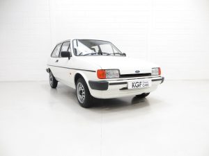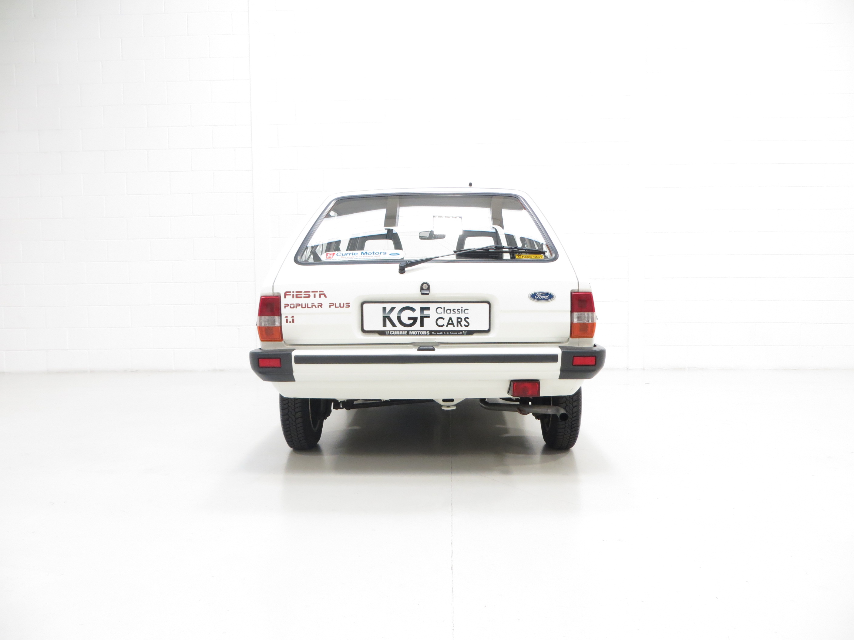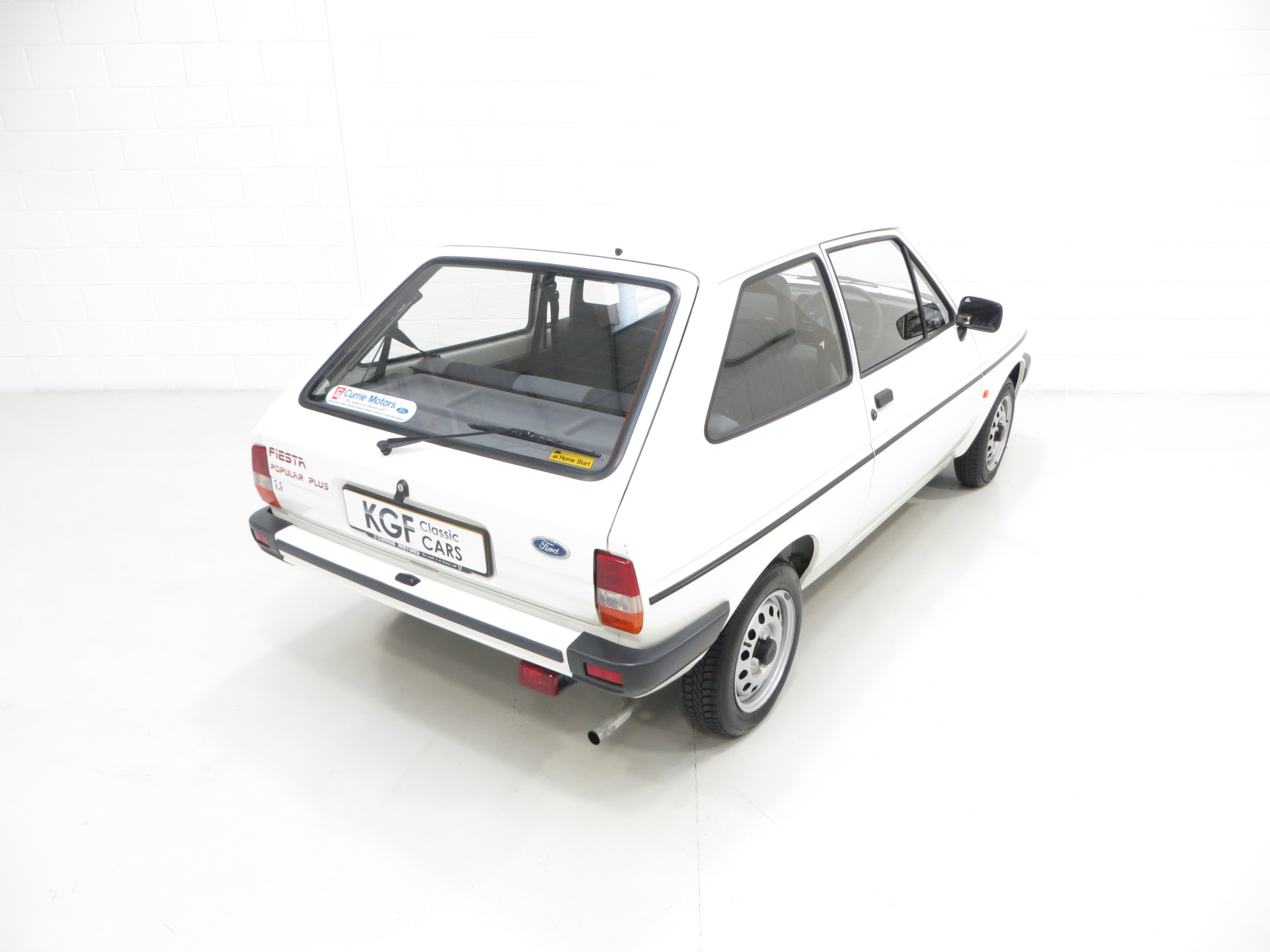 This incredible and totally original Ford Fiesta Popular Plus is quite simply a museum artefact. Always garaged and having covered just an amazing 18, 727 miles with just one private owner from new, the factory first coat of paint in Ford Diamond White, (Code B3), is beautifully preserved with a bright shine and smooth uniform finish. All panels are original with Ford stamps and factory spot welds clearly visible, features lost immediately upon the usual repainting. The perfectly preserved underside is completely free from repairs and underseal, in fact anything other than yellow factory wax. Very faint markings and undulations are visible upon close inspection but are left untreated in order to uphold the very special 100% originality. All glass is factory fit Sekurit, and all light lenses are original Ford fitment with correct Kiney headlamps. Even the supplying Ford dealer number plates and rear screen sticker remain fitted! An almost inconceivable rare survivor and worthy of the best Ford collection.