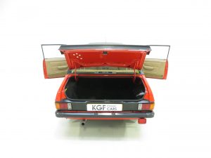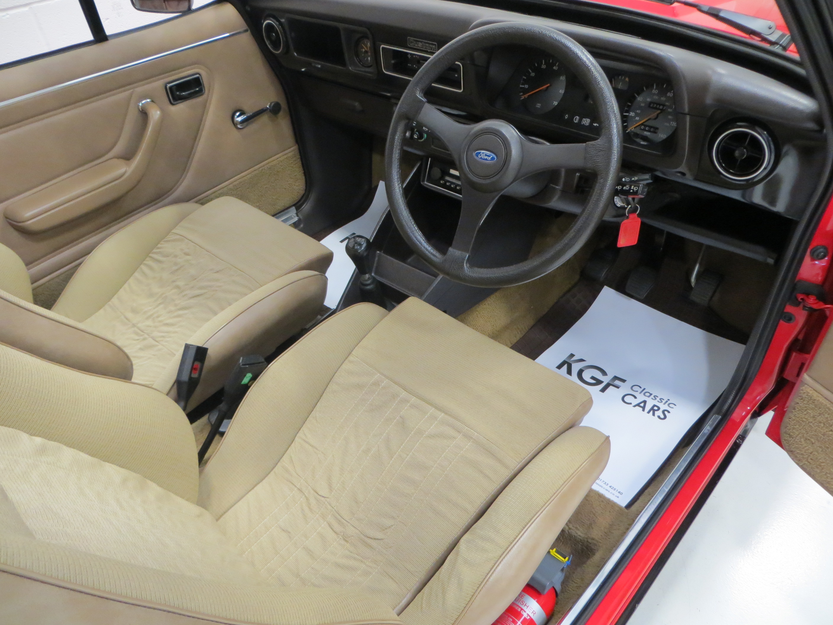 Jaw dropping and gorgeous in every respect this RS2000 finished in Venetian Red, (Code XSC-1136), will amaze perfection seeking connoisseurs hunting the virtually impossible, originality. From the date stamped front wings to the twin black coachline 16.5mm below the swage line trimmed slightly short of all the panel gaps, this car is unique. The polyurethane droop snoot is straight and perfectly colour matched housing a set of four Cibie 60/55W quartz-halogen headlamps and correct Altissimo rear light clusters. The colour coded pressed steel petrol cap along with all original decals are perfect. Genuine Ford mud flaps are fitted and all glass is correct Sekurit branded with the bronze tint. The black vinyl roof with the Tudor Riviera Webasto sunroof has been fitted from new. The Protectol rustproofing treatment is visible confirmed by the certificate and applied one day before the car was registered. This car is guaranteed to excite and reward the most discerning collector.