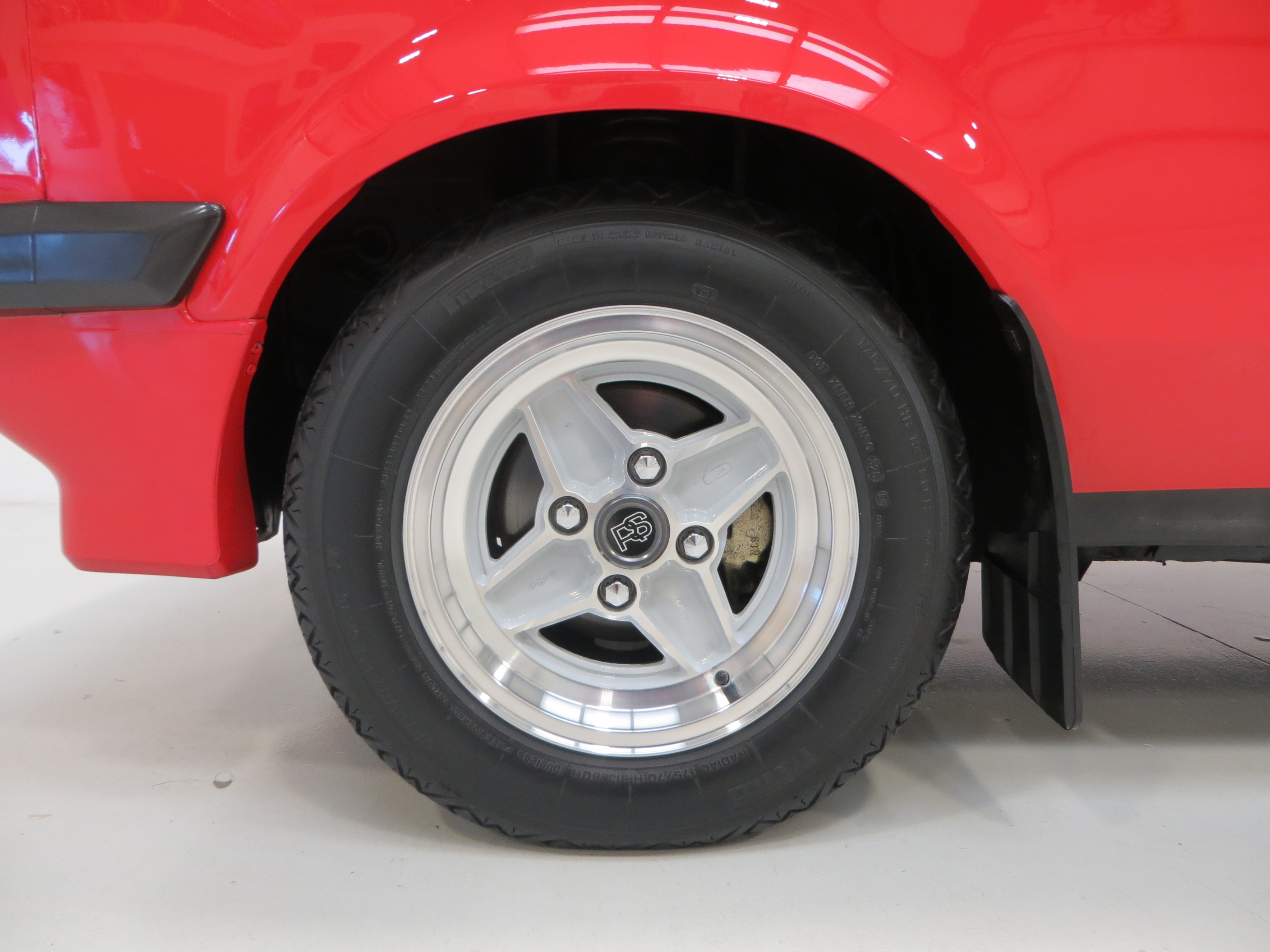 Genuine date stamped Ford/GKN cast alloys measure 6x13in and feature the polished bare rims with the Dove Grey spoke cutouts with black centre caps and silver RS motif, all immaculate. A collectable and highly prized full set of Pirelli Cinturato 175/70 HR13 tyres including the spare have excellent tread and no cracks. The correct silver/gold-coloured Girling M16 callipers grip solid 247.5mm solid front discs and self-adjusting rear drums halt the car well.