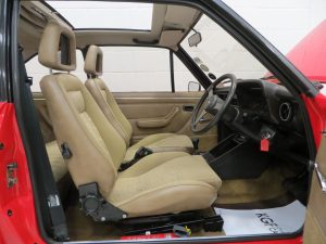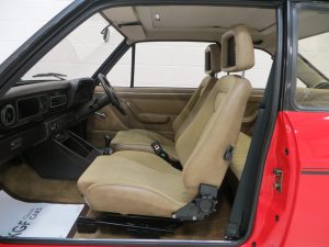 A matching numbers 1993cc SOHC engine has perfect presentation and remains factory standard both visually and mechanically. The free-flowing cast-iron exhaust manifold with the legendary RS logo is present along with the small heat shield that protects the Ford logo black siliconised spark plug leads. Service items are clearly labelled Motorcraft. The RS2000 Saarlouis type build plate listing the cars individual specification and the VIN plate commencing GCAT are untouched. The chassis number is repeated and factory hand-stamped on the heavy-duty spot-welded offside suspension top left in primer grey paint. Performance figures of 108.2mph top speed and 0-60 in just 8.5 seconds are more than respectable, even for modern standards. The Type E gearbox was replaced by a Type 9 five-speed item by the first owner offering relaxed touring and crisp gear changes.