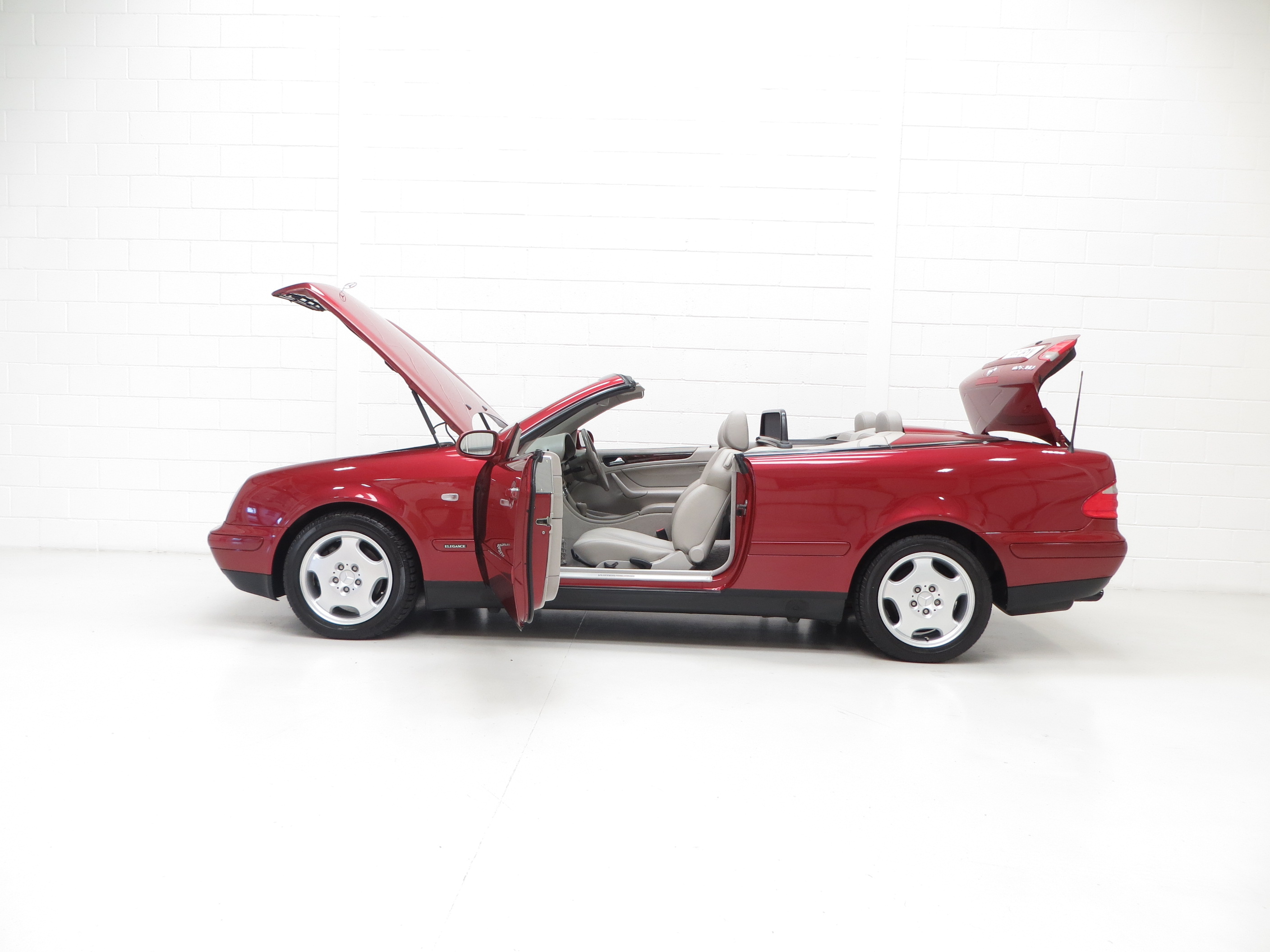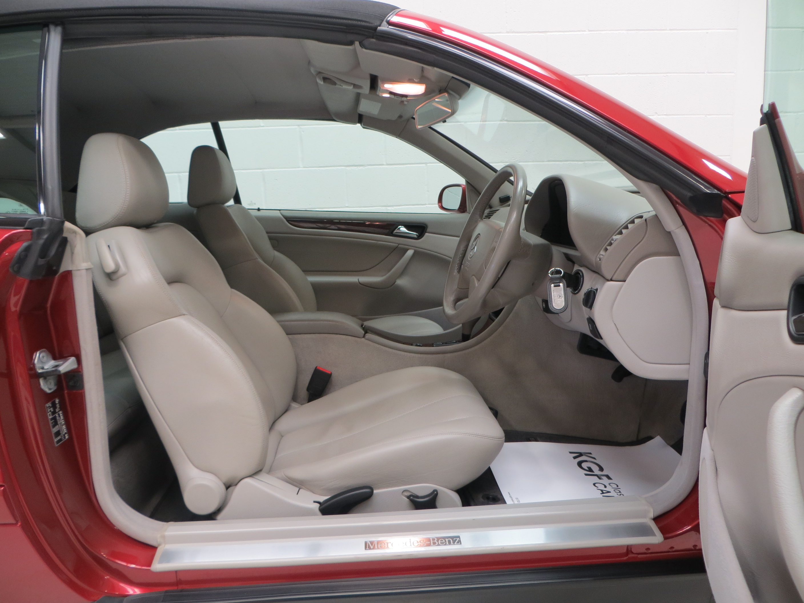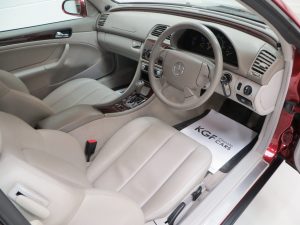 This well-appointed and desirable CLK320 Elegance is finished in glorious Titanite Red Metallic, (Code 548). The stunning paintwork simply gleams with a deep gloss shine and impeccable finish to really enhance the graceful lines of this genuine four seat open tourer. Only the tiniest blemishes can be seen upon close inspection namely very light stone chips to the front, utterly insignificant. The beautifully made trim sections, glass lights and badges are pristine. The hood trimmed in Black with Orion Grey headlining is in exceptional order with no damage, and the electric operation is flawless. The heated glass rear screen still has the supplying Mercedes Benz dealer sticker fitted. Inside the roof is 20mm thick fibre fleece padding for optimum heat and sound insulation. An exterior showcasing enthusiast ownership and minimal usage to truly set this example well above the normal offerings. Typical Mercedes Benz indulgence.