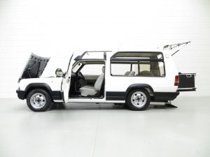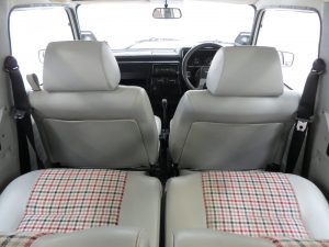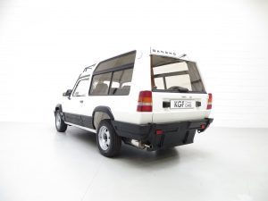 Moulded bumpers, body side protection, front crash bar, laminated windscreen, tinted glass, two speed wipers, locking petrol cap, tailgate wash/wipe, heated rear window, sliding rear windows, halogen headlamps, auxiliary driving lamps, roof rack, cigar lighter, split tailgate, inertia reel seatbelts, Veglia clock. Dealer fit options; Additional revolving search lamps.