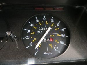 The rugged, practical and hugely comfortable interior space is completely original. The large reclining front seats and matching rear bench in grey vinyl with check cloth centre panels are immaculate and completely free from wear, commensurate with such a low mileage example. The durable and washable rubber floor coverings are completely intact and the clean headlining is in excellent order with only three nicks to the fabric. The delightfully sparse yet functional dashboard and fascia are pristine and completely original even down to the working factory radio and electric clock! The gauges display healthy readings with no warning lights and all controls and functions operate seamlessly. A tremendously well preserved interior, exactly as Talbot Matra intended.