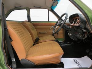 Fabric upholstery finished in Light Tan, (Code K1) matches the real wood panelling of the fascia, instrument binnacle and doors, all in remarkable condition. Minor wear to the driver bolster does not detract from the impressive originality of this range-topping luxury Escort. Deep-cut wall-to-wall pile carpeting is clean and unworn and the black cardboard kick panels are in excellent condition. All gauges function, the optional push button radio has power and even the two-speed heater fan works on both settings! The padded black dash top is immaculate and houses a round Kienzle clock. A small clue to the fun that lies ahead is an ultra rare Ford three spoke steering wheel with the “crossed racing flags” centre cap, itself a prized jewel. The boot floor is untouched and even has the factory brush painted ‘A’ meaning the car was painted in acrylic. A true wolf in sheep’s clothing.