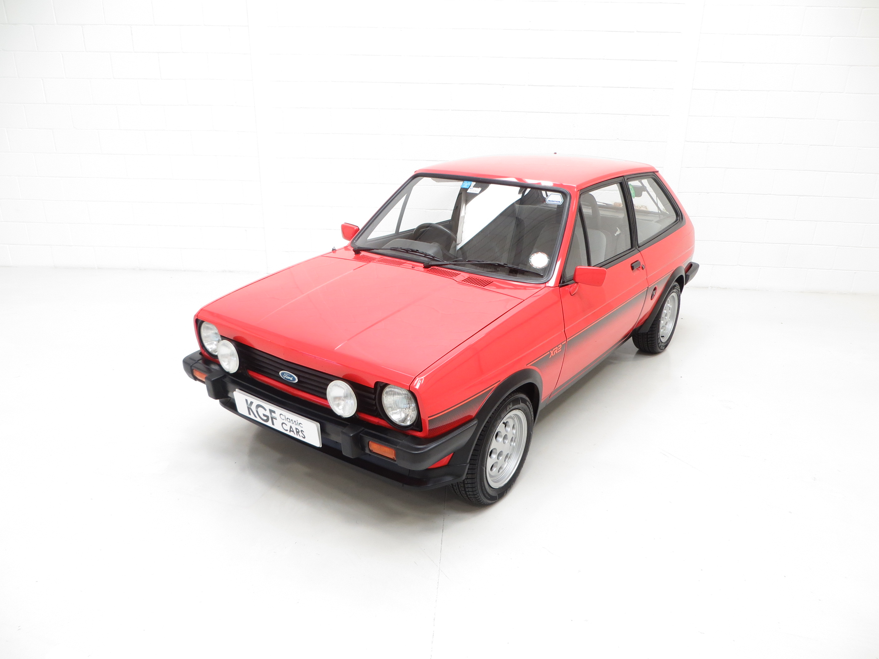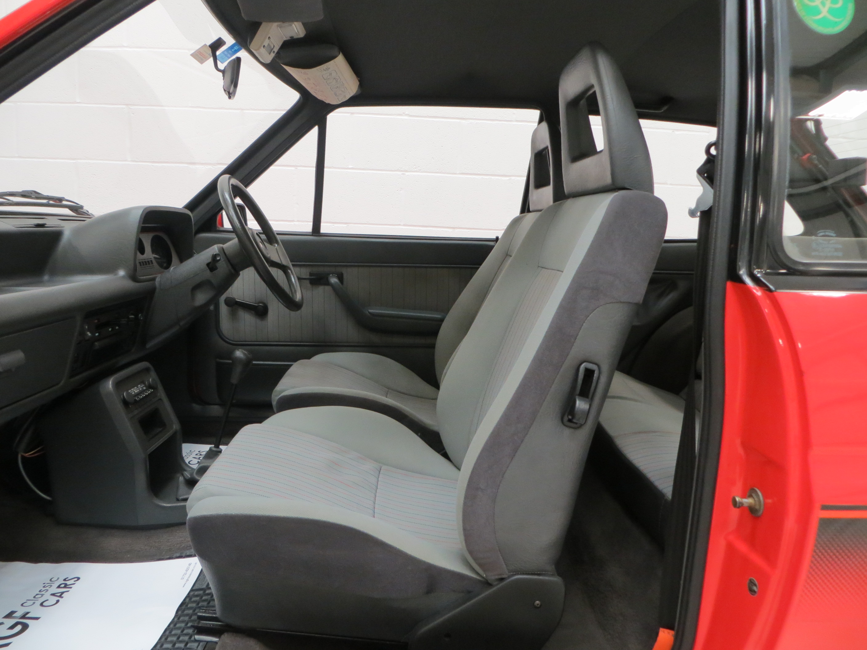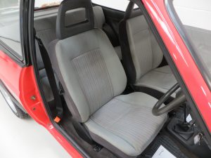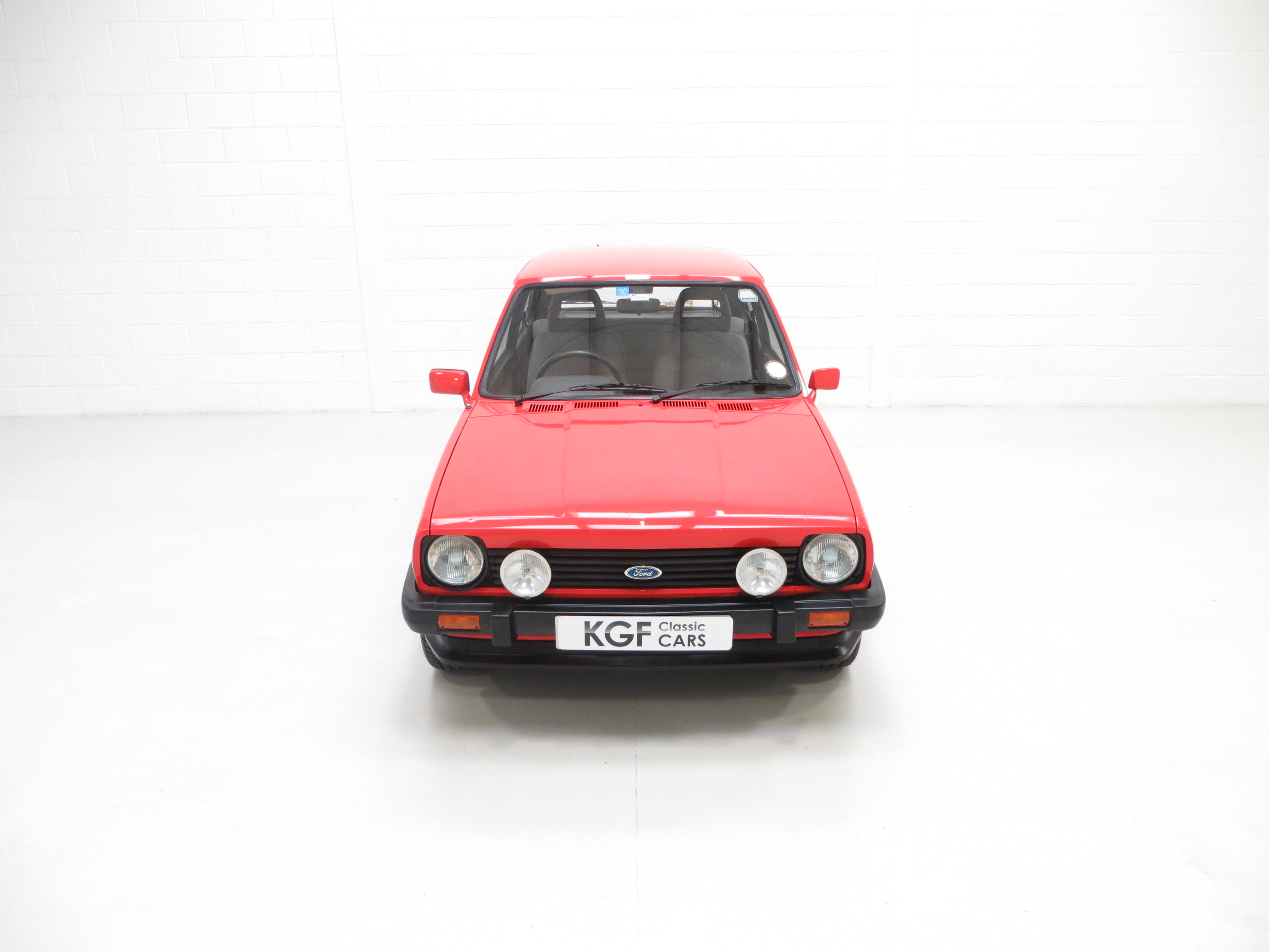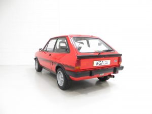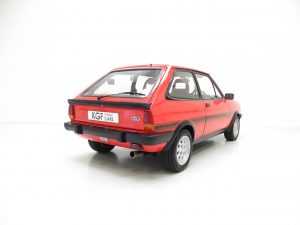 This unrepeatable sporting Fiesta XR2 boasts truly amazing credentials and is finished in striking Sunburst Red, (Code P1). The factory paintwork is bright, uniform and displays a fantastic unmolested finish, impossible to recreate and lost on first paint. All factory fitted panels are straight with linear gaps. There are various light markings such as touched in stone chips to the bonnet and tiny dings left strictly untouched so as to uphold originality. The conscientious owner, upon ordering the car in 1983, paid an extra £109 for Ziebart rust proofing treatment, from which the original Ziebart hole plugs are visible along with the rear window sticker. The door edges have been protected by plastic strips still attached. All other decals are original Ford fitment and have remained in exceptional preserved condition, as have all further trim sections and badges. The correct Ford Hella rear lenses and spot lamps, and the Lucus H4 headlamps remain fitted, along with original supplying Ford dealer number plates, rear screen sticker and tax disc holder. An iconic sporting Ford left exactly as intended, truly special.