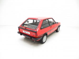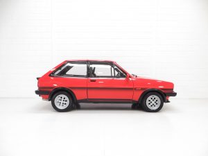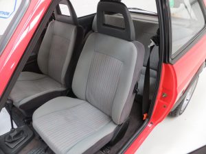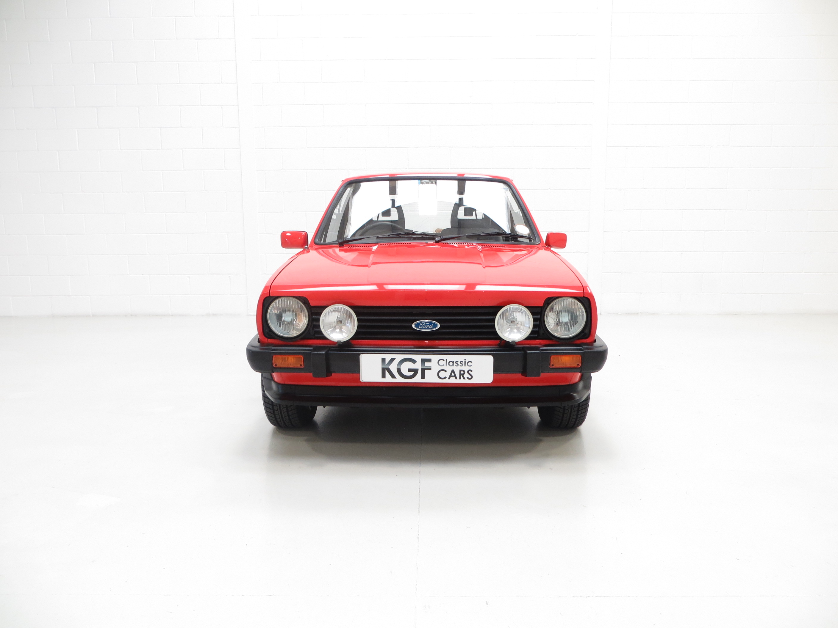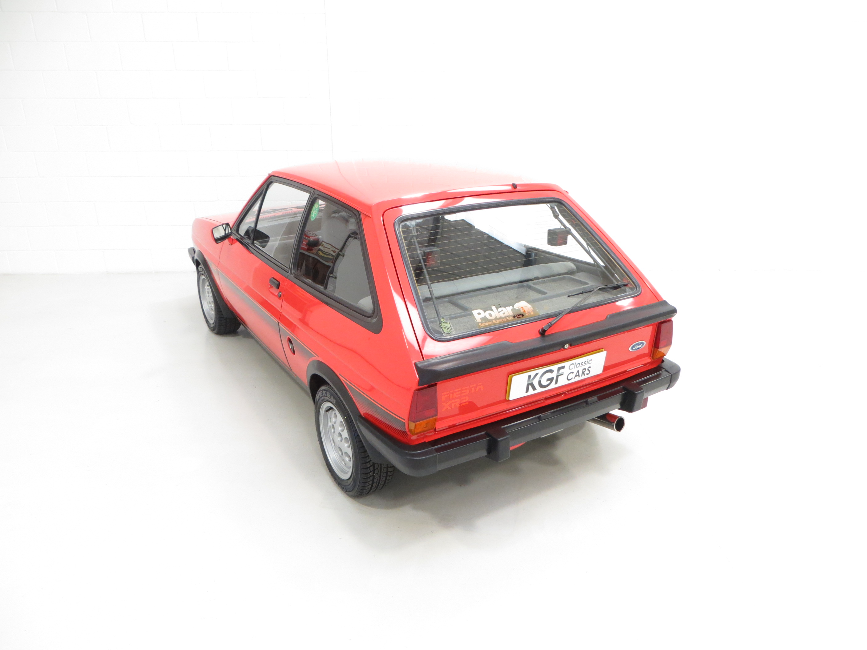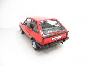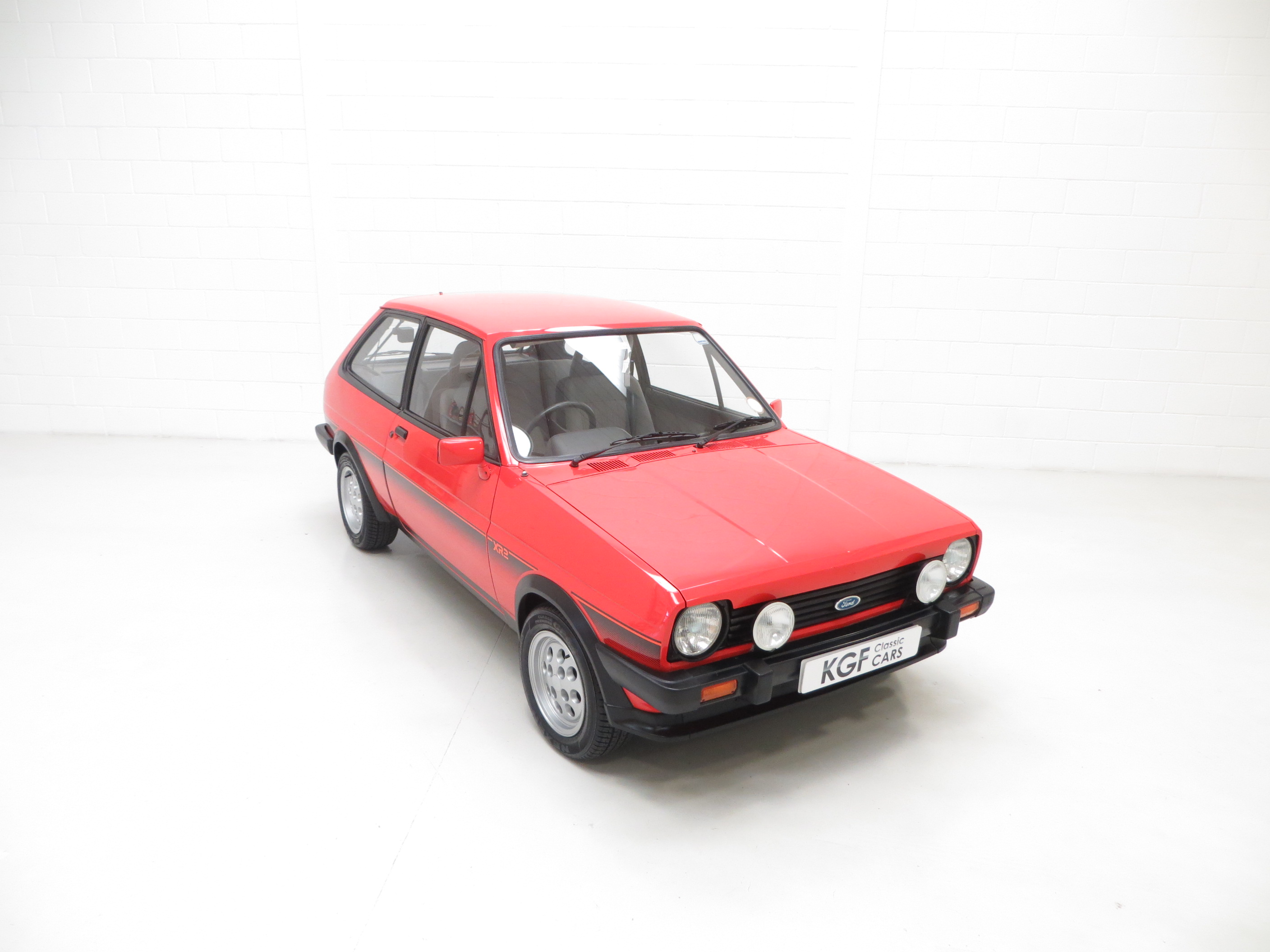 This unrepeatable sporting Fiesta XR2 boasts truly amazing credentials and is finished in striking Sunburst Red, (Code P1). The factory paintwork is bright, uniform and displays a fantastic unmolested finish, impossible to recreate and lost on first paint. All factory fitted panels are straight with linear gaps. There are various light markings such as touched in stone chips to the bonnet and tiny dings left strictly untouched so as to uphold originality. The conscientious owner, upon ordering the car in 1983, paid an extra £109 for Ziebart rust proofing treatment, from which the original Ziebart hole plugs are visible along with the rear window sticker. The door edges have been protected by plastic strips still attached. All other decals are original Ford fitment and have remained in exceptional preserved condition, as have all further trim sections and badges. The correct Ford Hella rear lenses and spot lamps, and the Lucus H4 headlamps remain fitted, along with original supplying Ford dealer number plates, rear screen sticker and tax disc holder. An iconic sporting Ford left exactly as intended, truly special.
