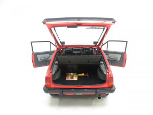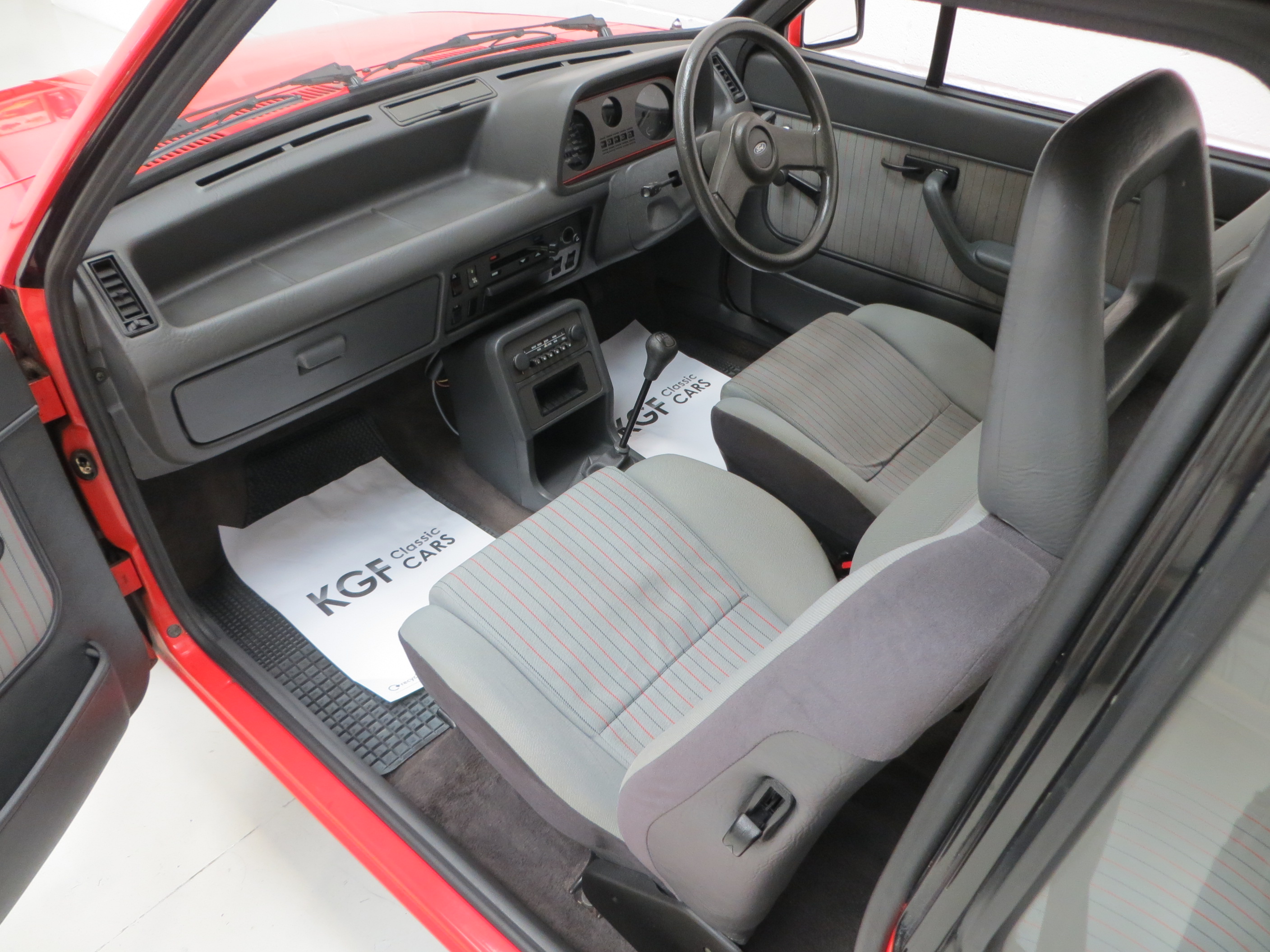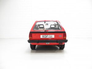 The interior in this remarkable example remains in beautiful untouched condition, even down to the working Ford P21 push button stereo and original Ford rubber floor mats. The ‘Storm’ and Crushed Velour interior in Shark Grey, (Code KW), is immaculate. The Shark Grey loop pile carpet is spotless as are the Grey Mylar sidewall and rear quarter finishers. The red laser line around the instrument binnacle is vibrant and the soft finish dashboard is perfect. The unworn steering wheel and gear knob have prominent veins. The devoted owner even kept the sunvisor hung cold and hot starting instructions still attached! All switchgear is functional and the original trimmed parcel shelf is straight and complete with the correct rubber hangers. Paranoid of being shunted in the rear by another car, the owner installed high level brake lights in 1990 and these are easily removed if desired. A delightfully period unspoilt interior, reminiscent of the 1980’s hot hatch phenomenon.