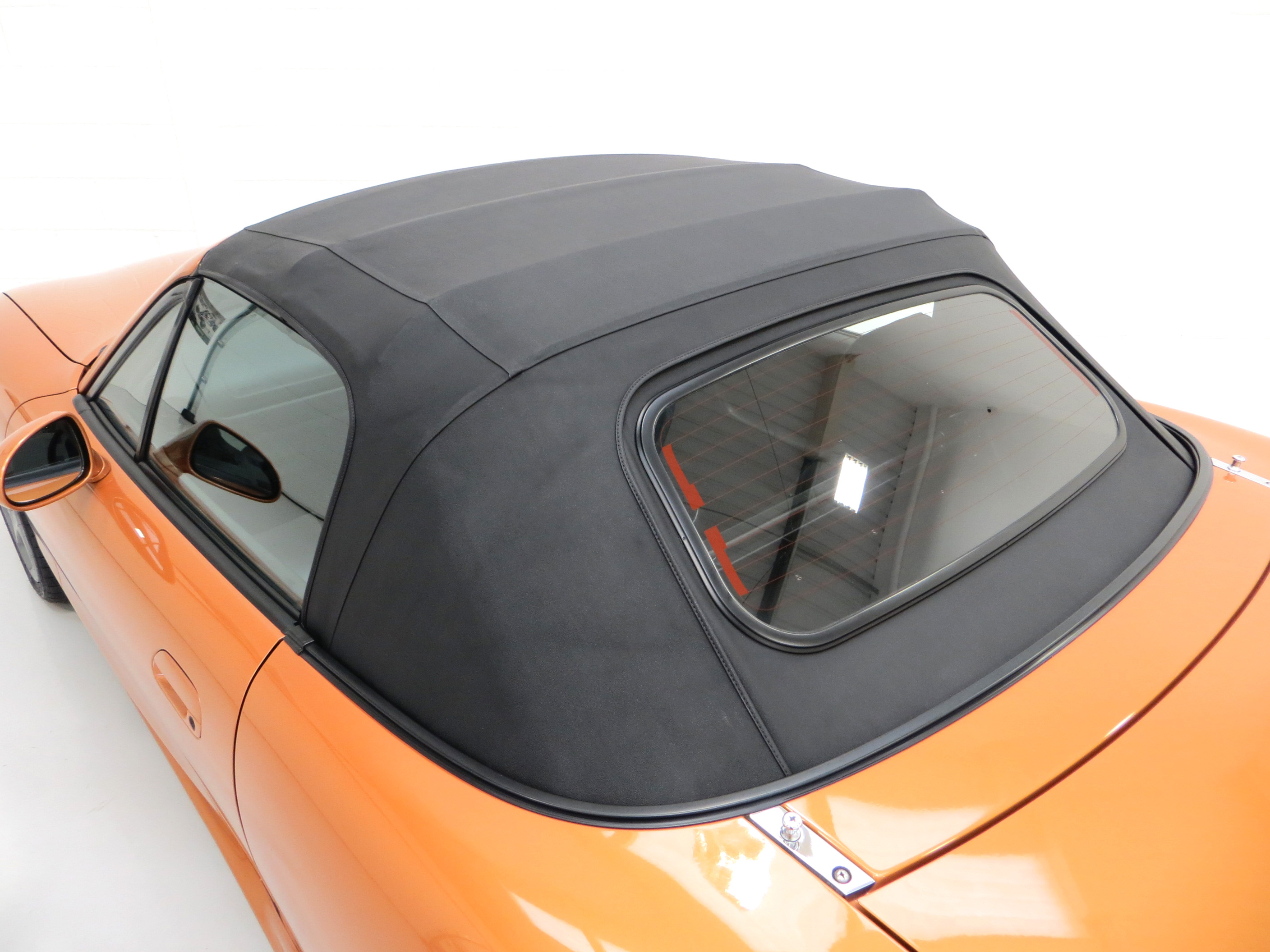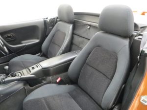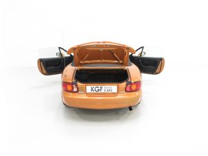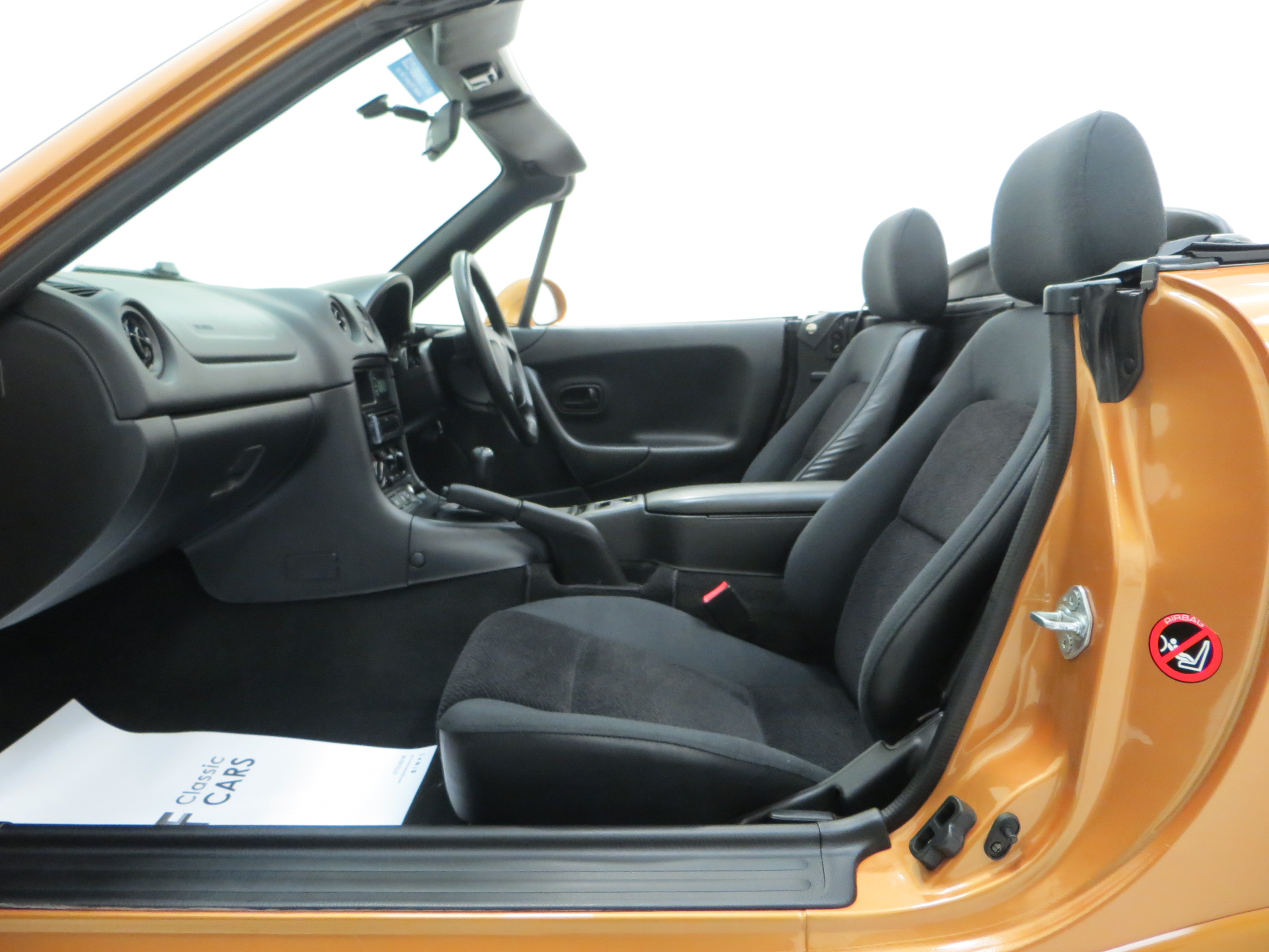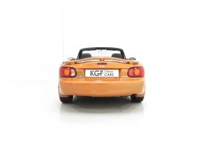 This truly exceptional Mazda MX-5 is finished in factory original Evolution Orange Mica/Metallic, (Code 18K), a cost option when ordered from new and the signature colour for the Mk2 upon its launch (sometimes also referred to as Racing Bronze). Having covered a remarkably low 19,571 miles from new, this garaged and cherished example is positively incomparable to most offerings. The stunning paintwork boasts a near impeccable finish will delight even the most meticulous scrutineer. A tiny touched in scratch to the bonnet edge and some miniscule dings to the driver’s door are barely even worthy of mention and all trim sections and bumpers are immaculate. The underside reflects the very minimal use and the wheel arch lips display the correct factory spot welds. The black canvas hood is in perfect order with a tight fit and the much-improved original glass rear screen is heated. Factory labels remain within the door shuts to further uphold the originality. The epitome of a modern classic sports car, preserved to the highest order.