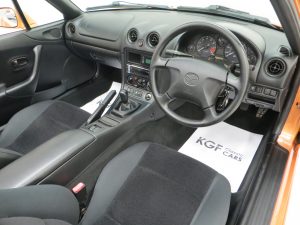 This amazing example was registered new by Mazda Main Dealers, Robinsons Garage Ltd of Leicester, on the 17th September 1999. The first owner, Mrs Nicola Heatherley, owned the car for over 20 years until in 2020 she advertised the car for sale. Mr Michael Chawner, a Mazda MX-5 Owners Club member and avid enthusiast contacted her and promptly bought the car. With his vast knowledge of these iconic cars, he knew when he had found a good one! In January 2021 Mr Chawner saw a low mileage Mazda Mk1 MX-5 1.8iS being advertised here at KGF Classic Cars and knew straight away it was the exact model and colour he had coveted for years and so had to have it. The difficult decision to part with this Mk2 example was sweetened by the arrival of his Mk1 which became his tenth MX-5!