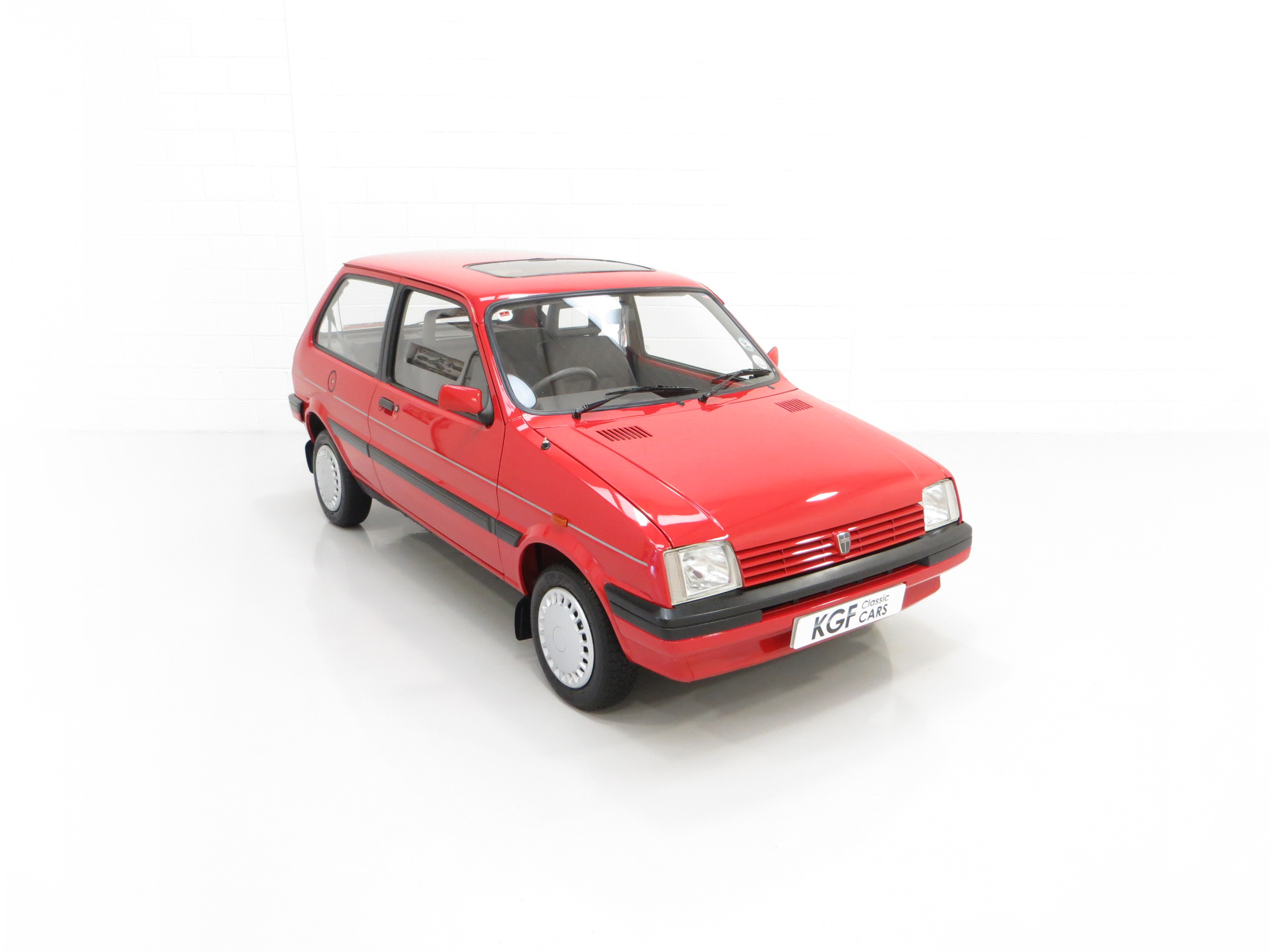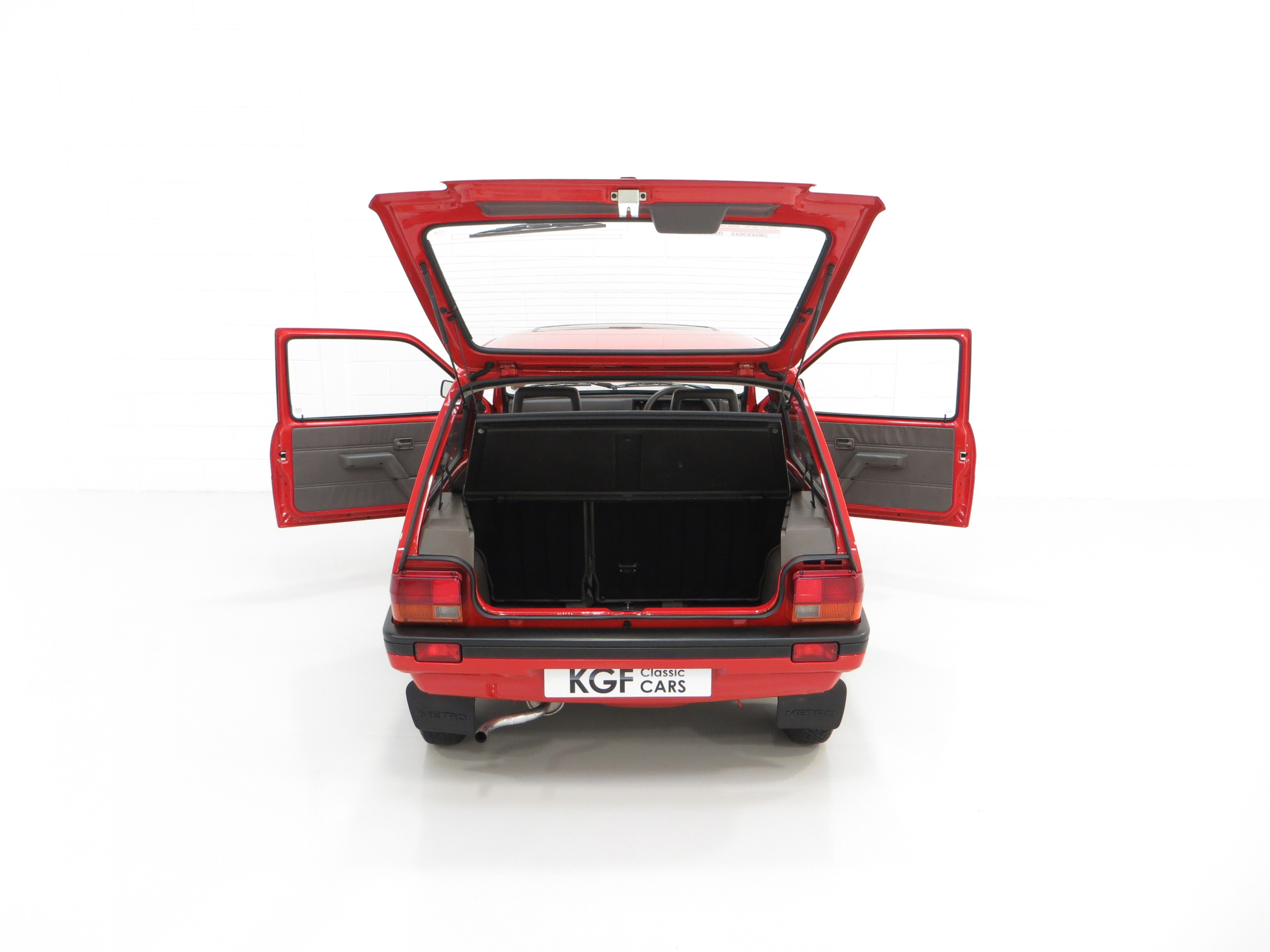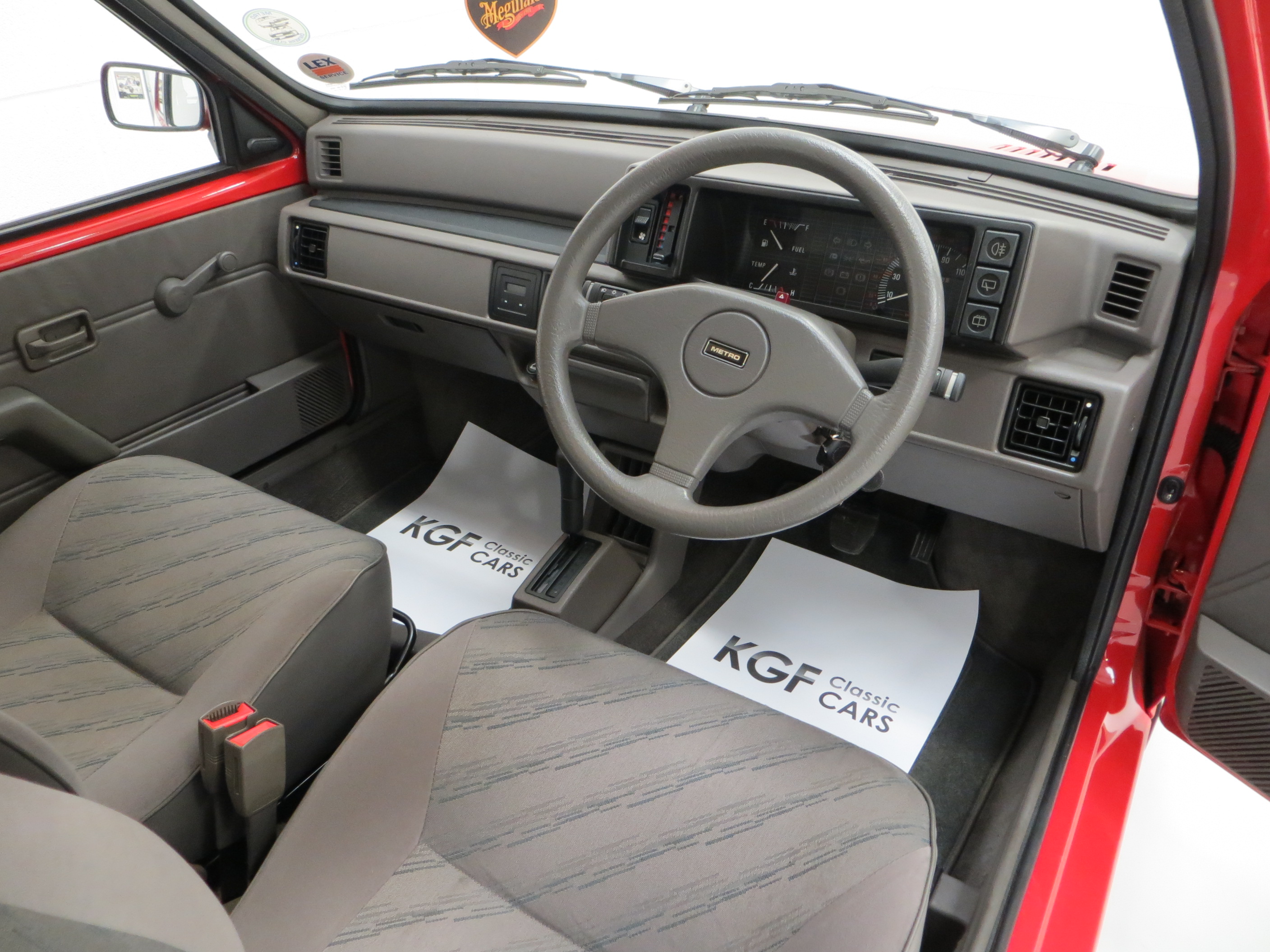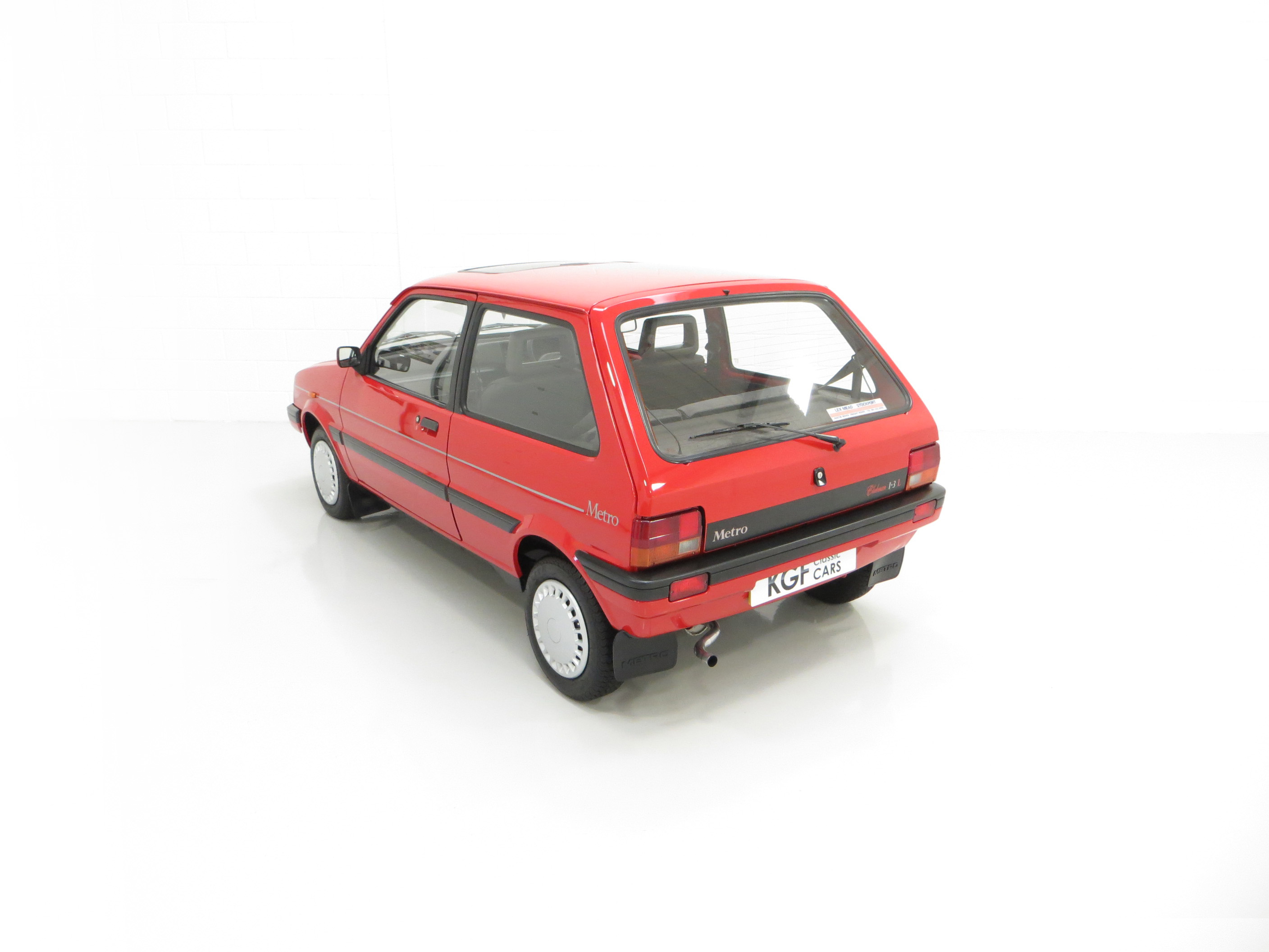 The ultimate show Metro, this 1989 Flame Red Metro needs no introduction having graced the winner’s podium at countless national shows and concours judging events. Finished in original Rover Flame Red, (Code COF), this example has been owned by renowned car enthusiast and highly talented detailer, Tom Morley, for the last 11 years and gained countless first place trophies in this time. Years’ worth of painstaking detailing has achieved simply breath-taking results and for a car wearing largely factory paint except the front wings, it is simply incredible. Only very close scrutiny will reveal light touched in markings, utterly insignificant and barely worthy of mention. The underside is very clean and features such as the polished suspension spheres with clear part number are remarkable! Originality such as factory spot welds to the rear arches, factory fitted decals, supplying dealer fit number plates, tax disc holder and Rover Service sticker are wonderful to see! The front and rear light clusters and rear fog lamps are factory fitment with the Austin logo to the lenses. This is a very special Metro.