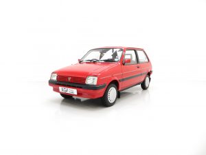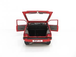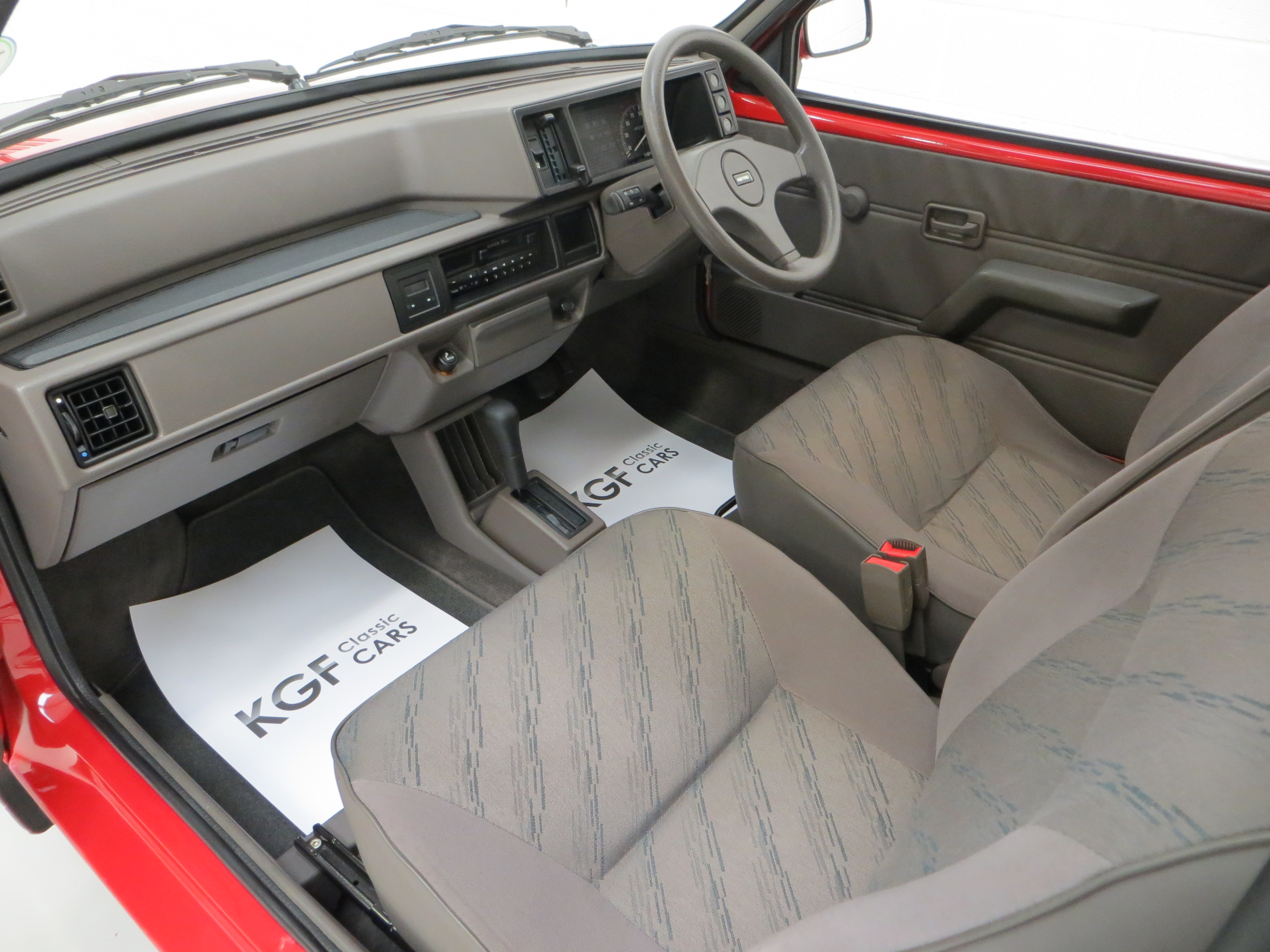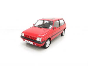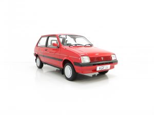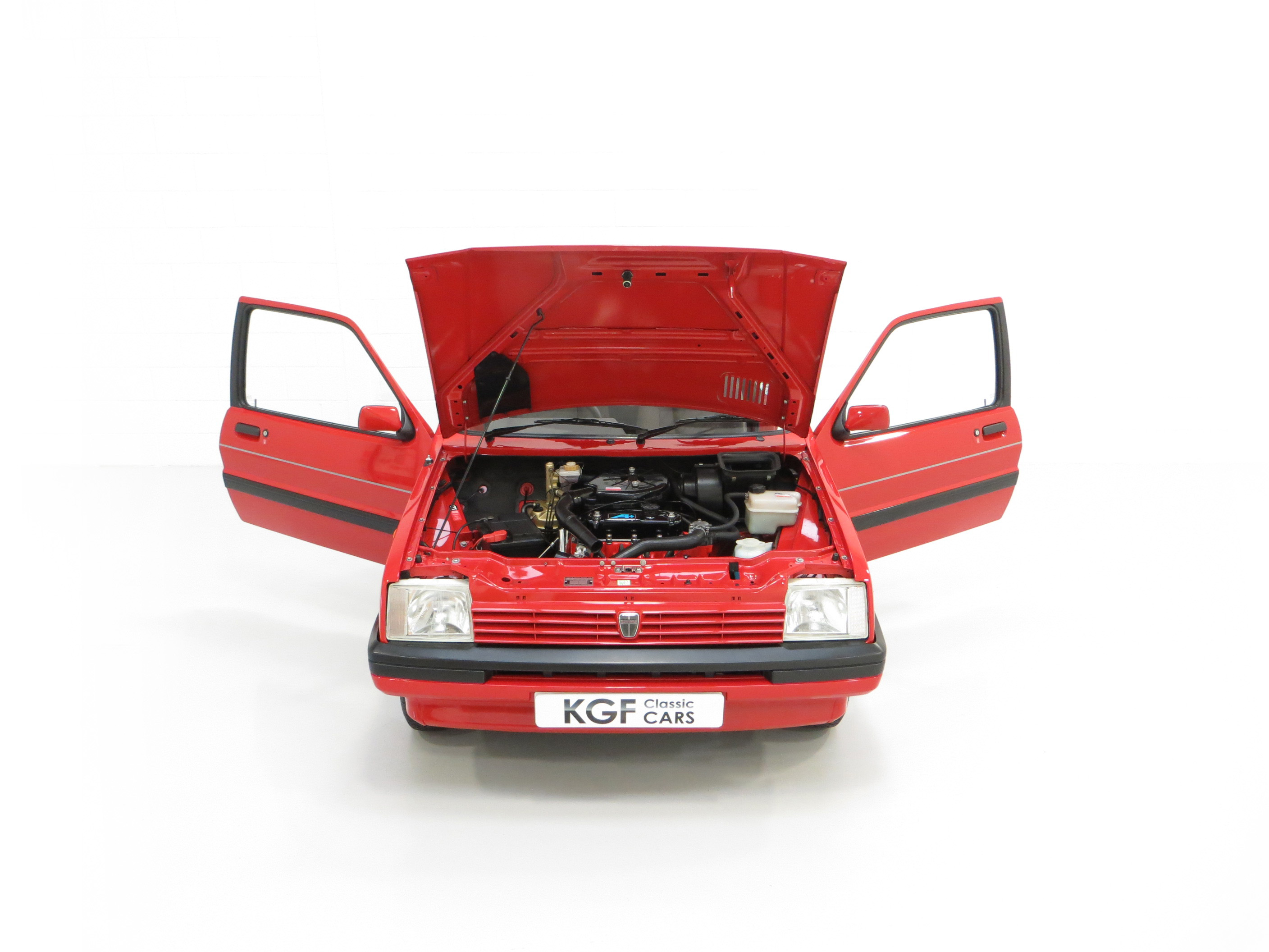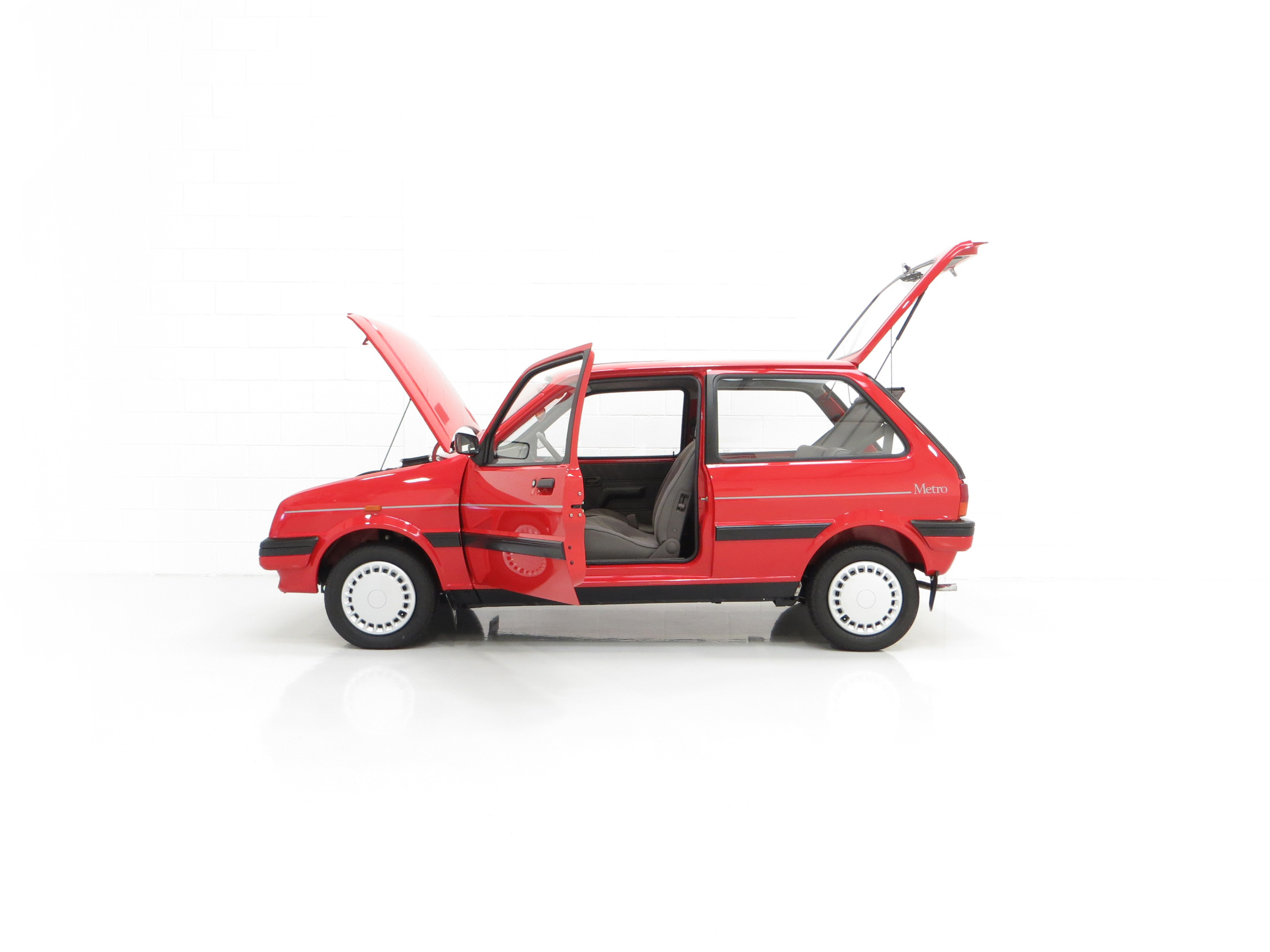 The ultimate show Metro, this 1989 Flame Red Metro needs no introduction having graced the winner’s podium at countless national shows and concours judging events. Finished in original Rover Flame Red, (Code COF), this example has been owned by renowned car enthusiast and highly talented detailer, Tom Morley, for the last 11 years and gained countless first place trophies in this time. Years’ worth of painstaking detailing has achieved simply breath-taking results and for a car wearing largely factory paint except the front wings, it is simply incredible. Only very close scrutiny will reveal light touched in markings, utterly insignificant and barely worthy of mention. The underside is very clean and features such as the polished suspension spheres with clear part number are remarkable! Originality such as factory spot welds to the rear arches, factory fitted decals, supplying dealer fit number plates, tax disc holder and Rover Service sticker are wonderful to see! The front and rear light clusters and rear fog lamps are factory fitment with the Austin logo to the lenses. This is a very special Metro.