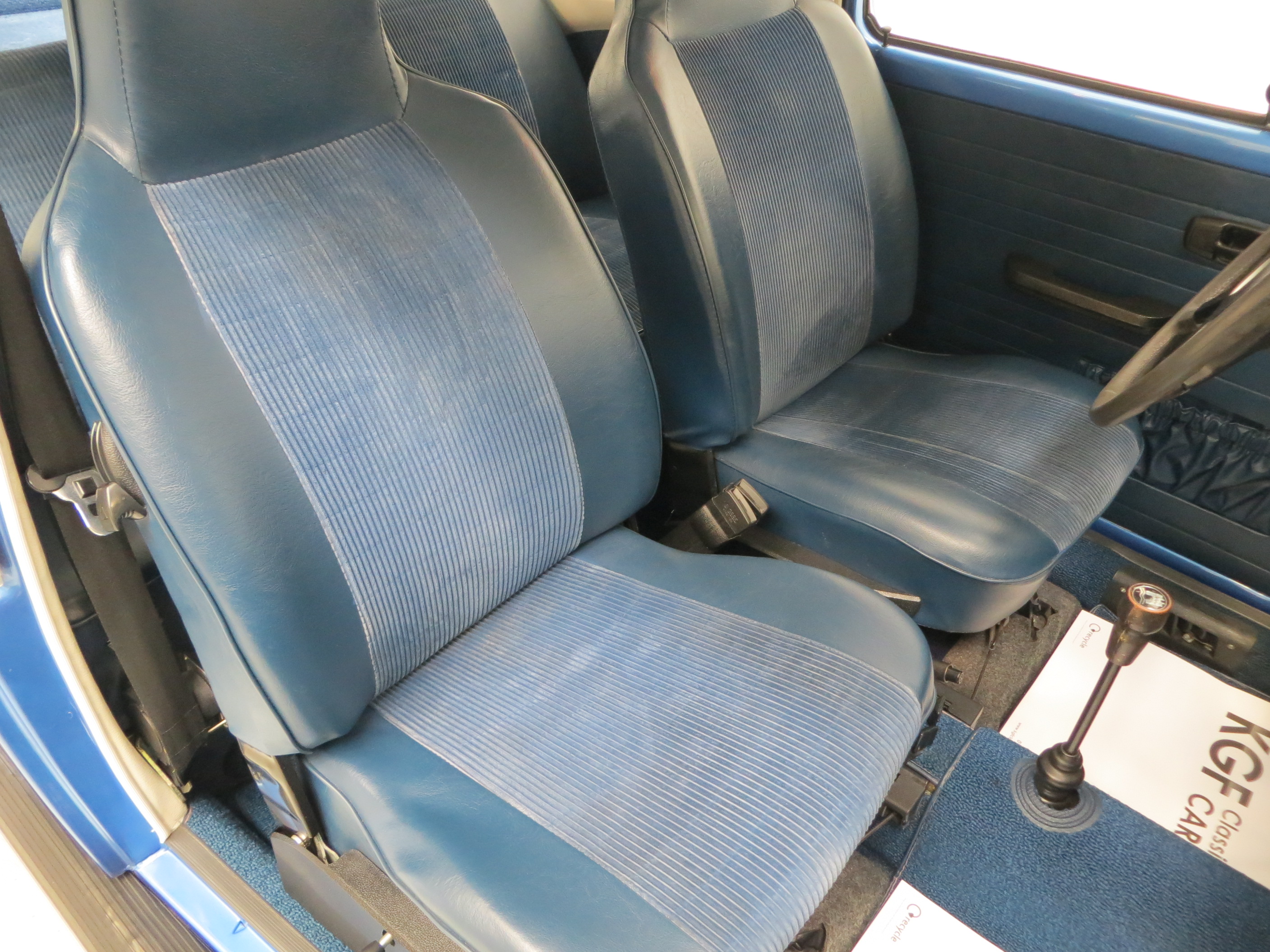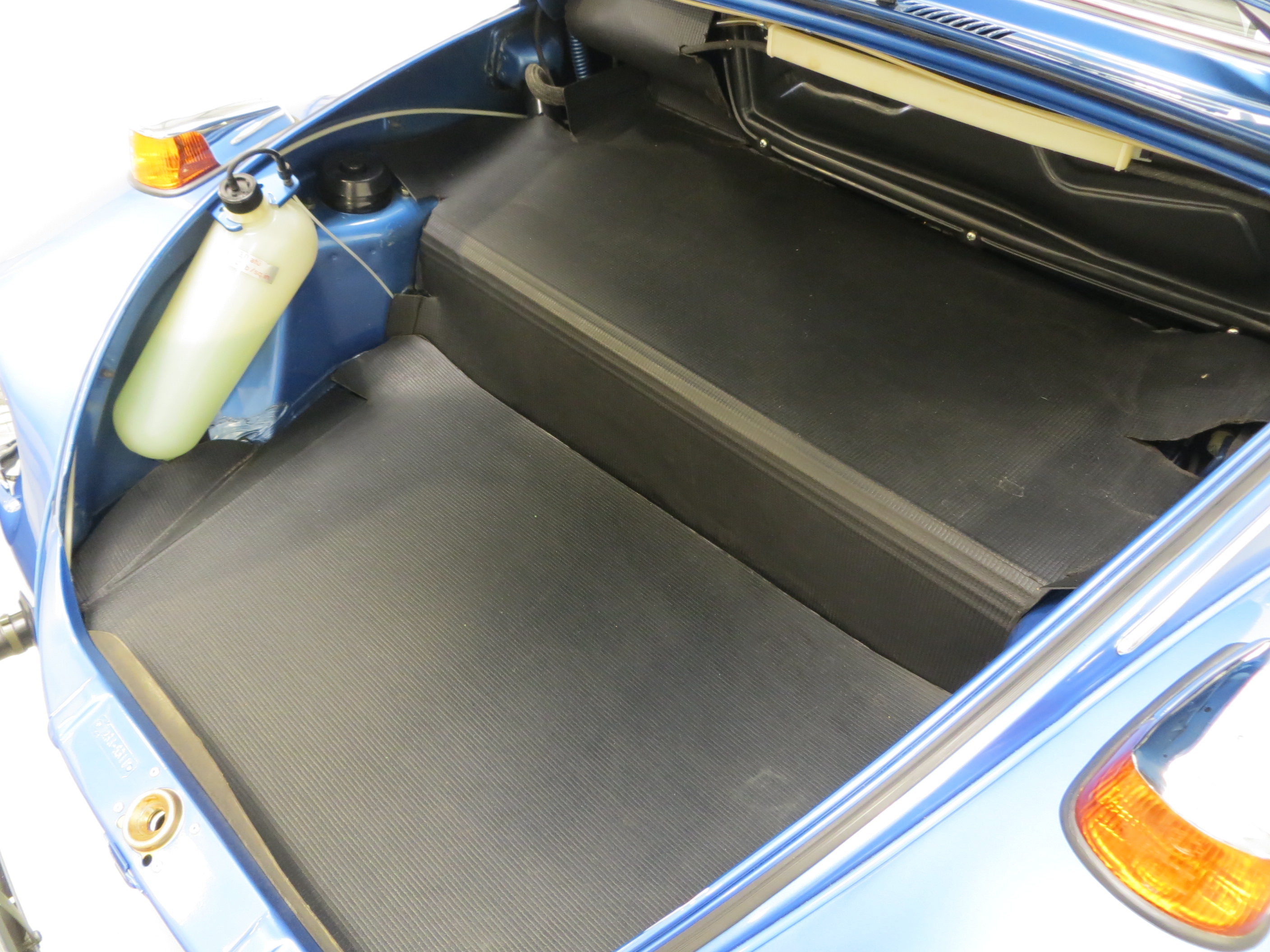 The rich interior of this very rare Beetle offers unique blue special leather grained seating with plush corduroy insets. Matching thick, colour-coordinated carpeting and a rosewood dash are further luxury distinguishing features along with a leather grained steering wheel. The famous VW smell is still there. Opening the lockable glove box even reveals the VW pack of fuses as supplied when new and no radio has been fitted so the blanking plate is still in situ. The instruction sticker on the steering wheel is still intact. The driver’s seat base has a repair during its time in a Volkswagen Main Dealer. The under bonnet cardboard liner is simply remarkable. Time warp is a term used freely, but completely justified with this collectable unique vehicle