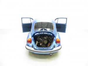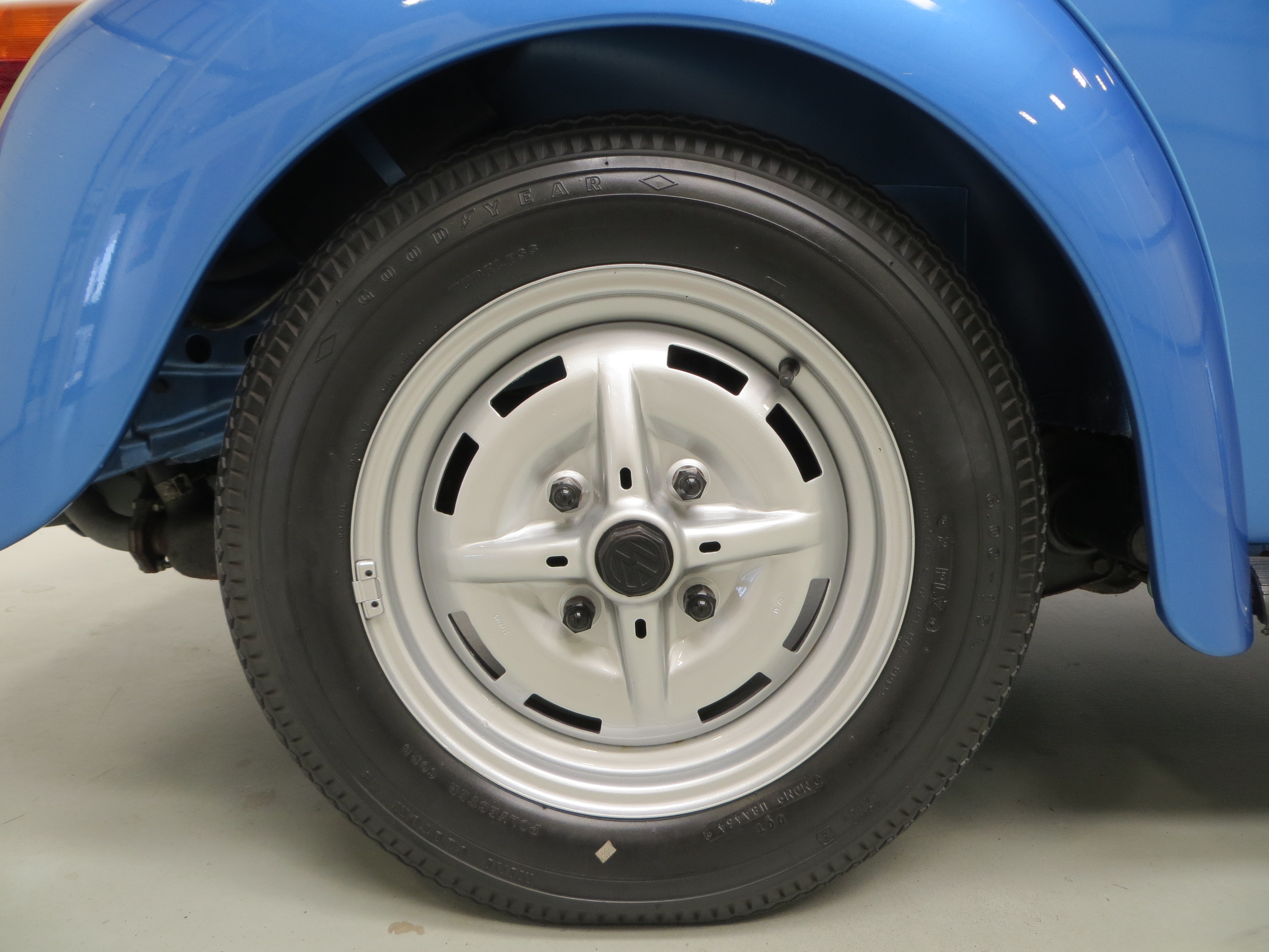 Rubber strips on bumpers, chrome door mirror, handles and waist line, ‘La Grande Bug’ rear badge, sunroof, running boards, silver lined horn pad with Wolfsburg crest, leather gear knob with Wolfsburg crest, heated rear window, hazard lights, dash illumination adjustment, interior light, padded dash, padded sun visors with passenger mirror, four seatbelts, rear ashtray, interior light, door open buzzer, twin door pockets computer analysis plug.