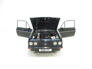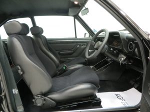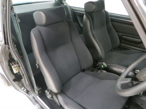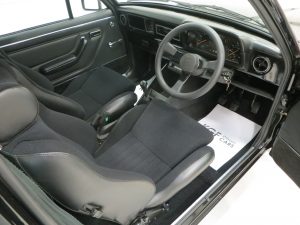 Polyurethane front end incorporating four Cibie quartz halogen headlamps, front air dam, rubberised tail spoiler, twin bodyside coachline, RS2000 decals, black door mirrors, laminated windscreen, hazard warning flashers, heated rear window, separate fuel, water temperature and oil pressure gauges, padded sun visors, two-speed heater, aeroflow ventilation with eye ball vents. RS Custom features; centre console, glovebox, quartz clock, remote control driver’s door mirror, bronze tinted glass, full trimmed door cards, vanity mirror, Ronal alloy road wheels. Dealership options; Ziebart rust protection treatment, rear seat belts.