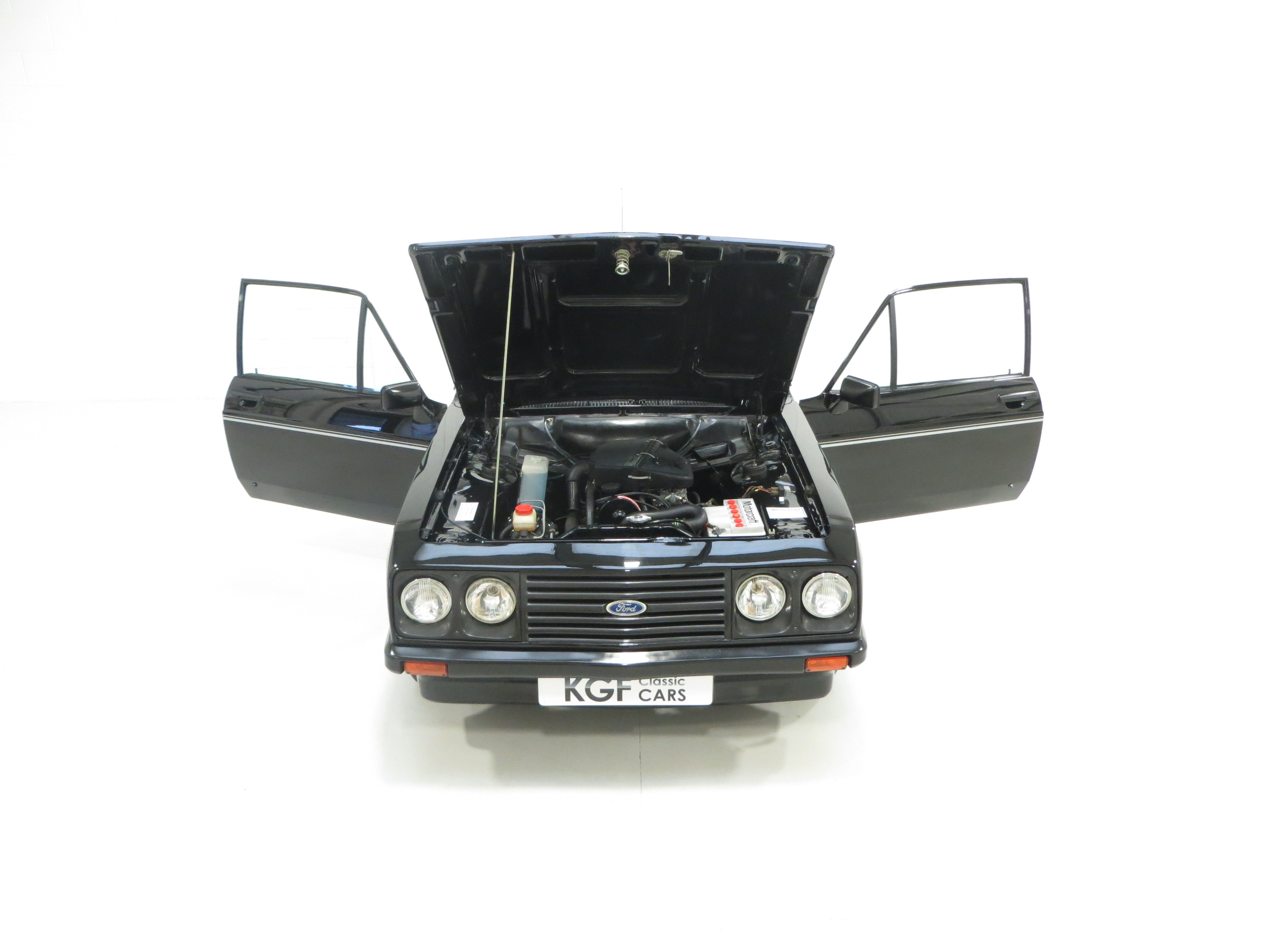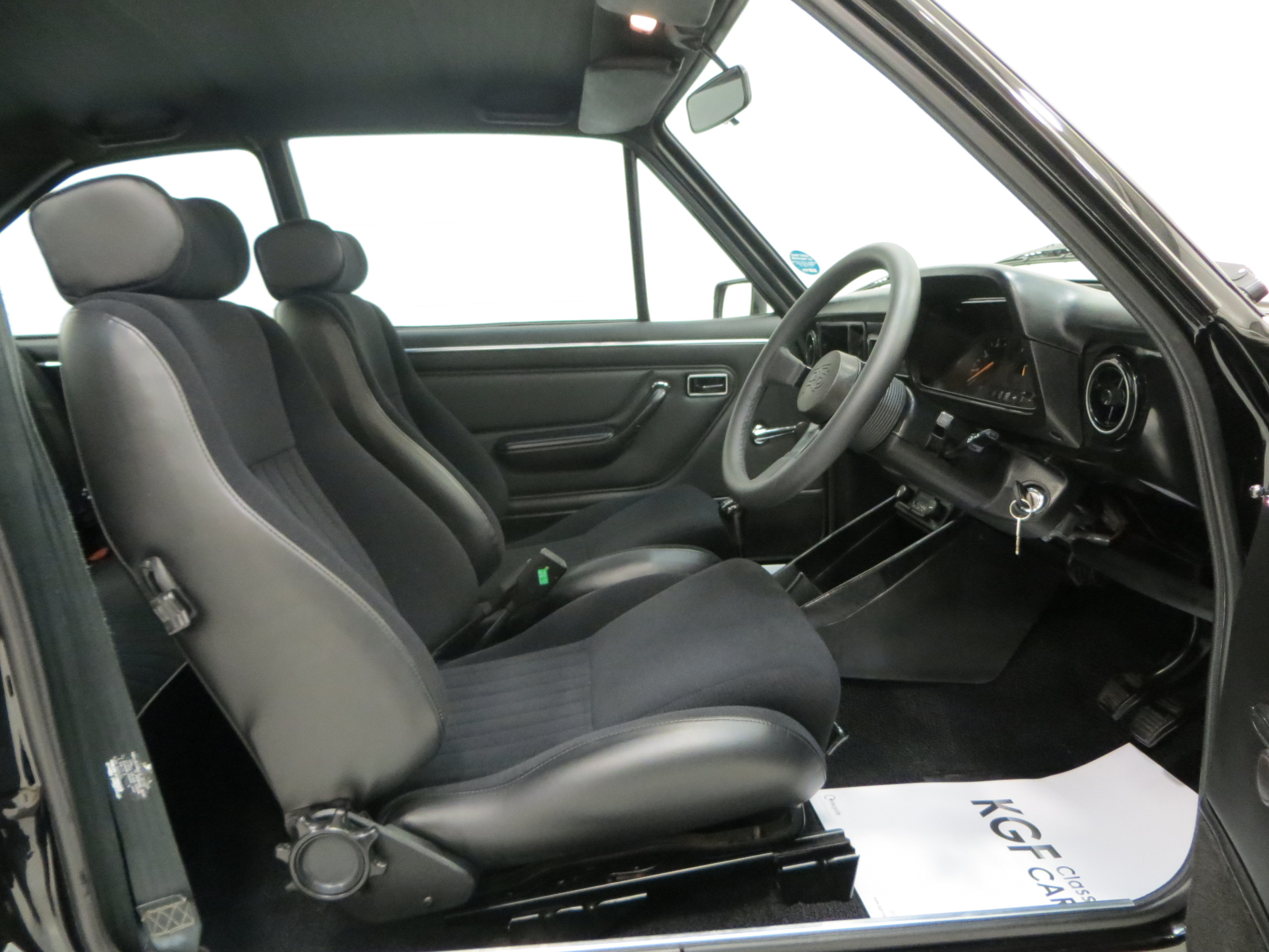 This excellent RS2000 finished in glorious Ford Black, (Code A), boasts a marvellous deep shine and uniform finish. This example has avoided the common extreme modification trend and remains as Ford intended. Only very minor paintwork imperfections are notable under scrutiny but certainly do not spoil the appeal. Worthy of mention are discreet and neatly fitted deadlocks to the lower doors and a light ding to the boot lid edge below the spoiler. Having been Ziebart protected from new, the structural integrity has been upheld and the Ziebart plug stops remain visible within the door shuts. Panel fit is excellent and the shut lines uniform. All trim sections, RS decals and badges remain intact and are in good order. A very usable and attractive RS2000, one for the avid blue oval enthusiast wanting to exploit maximum enjoyment from classic Ford ownership.
