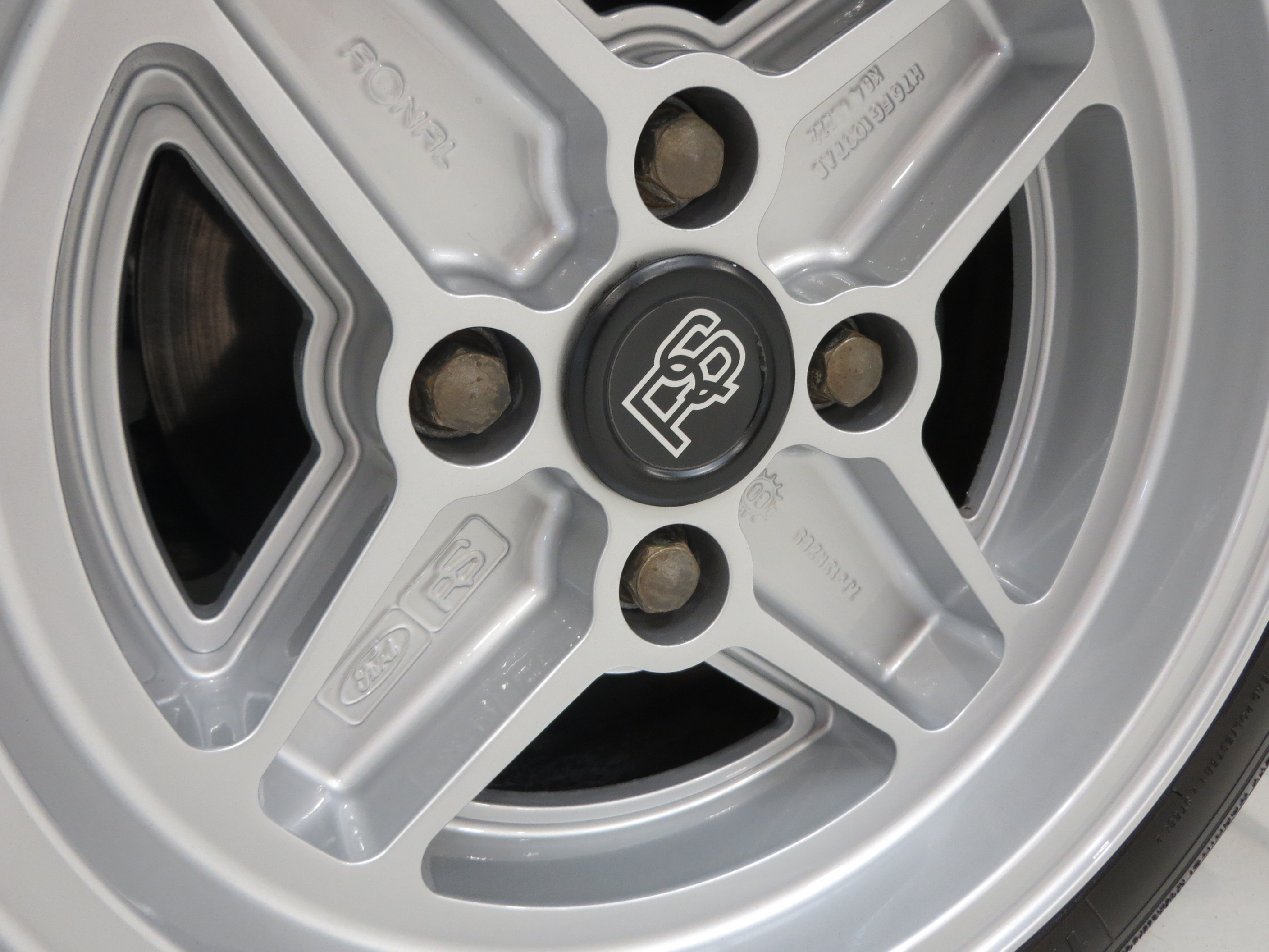 Genuine Ford RS Ronal alloy road wheels have been refurbished to exceptional standard with five matching quality Yokohama A539 175/60 R13 tyres showing plenty of tread. The spare alloy wheel is housed in the boot area with factory build stickers displayed. Vacuum servo assisted front disc brakes with rear drums brakes offer fair braking but fall short of modern standards.