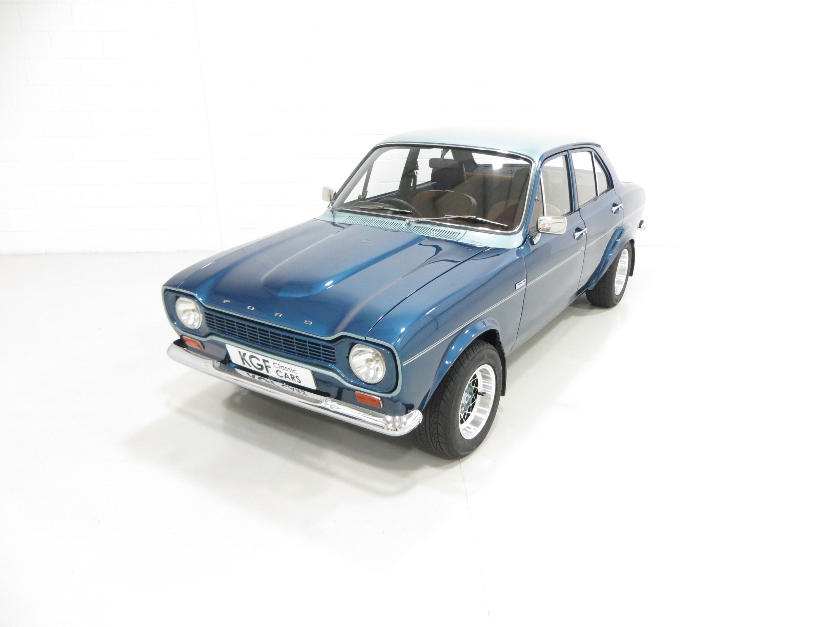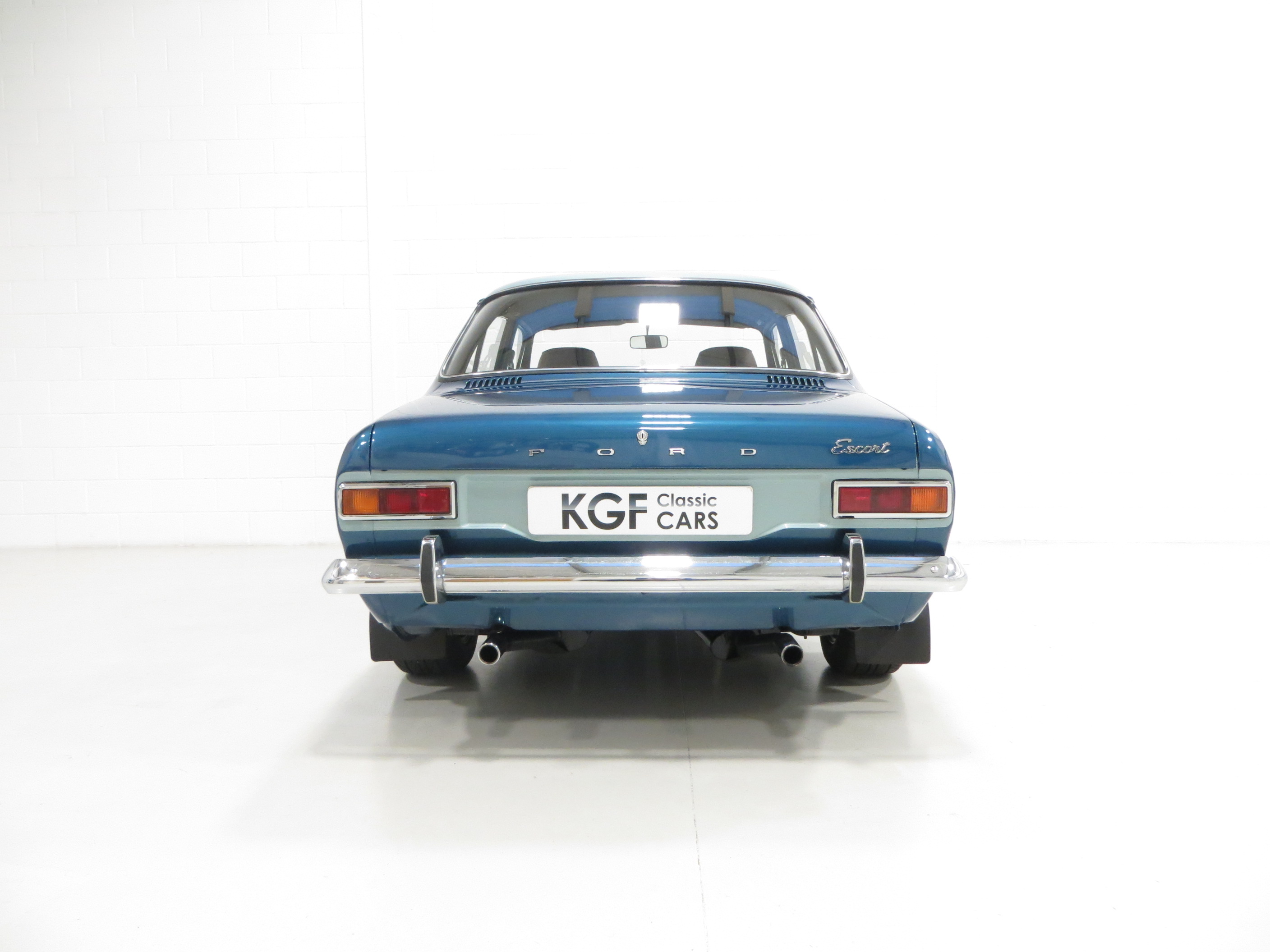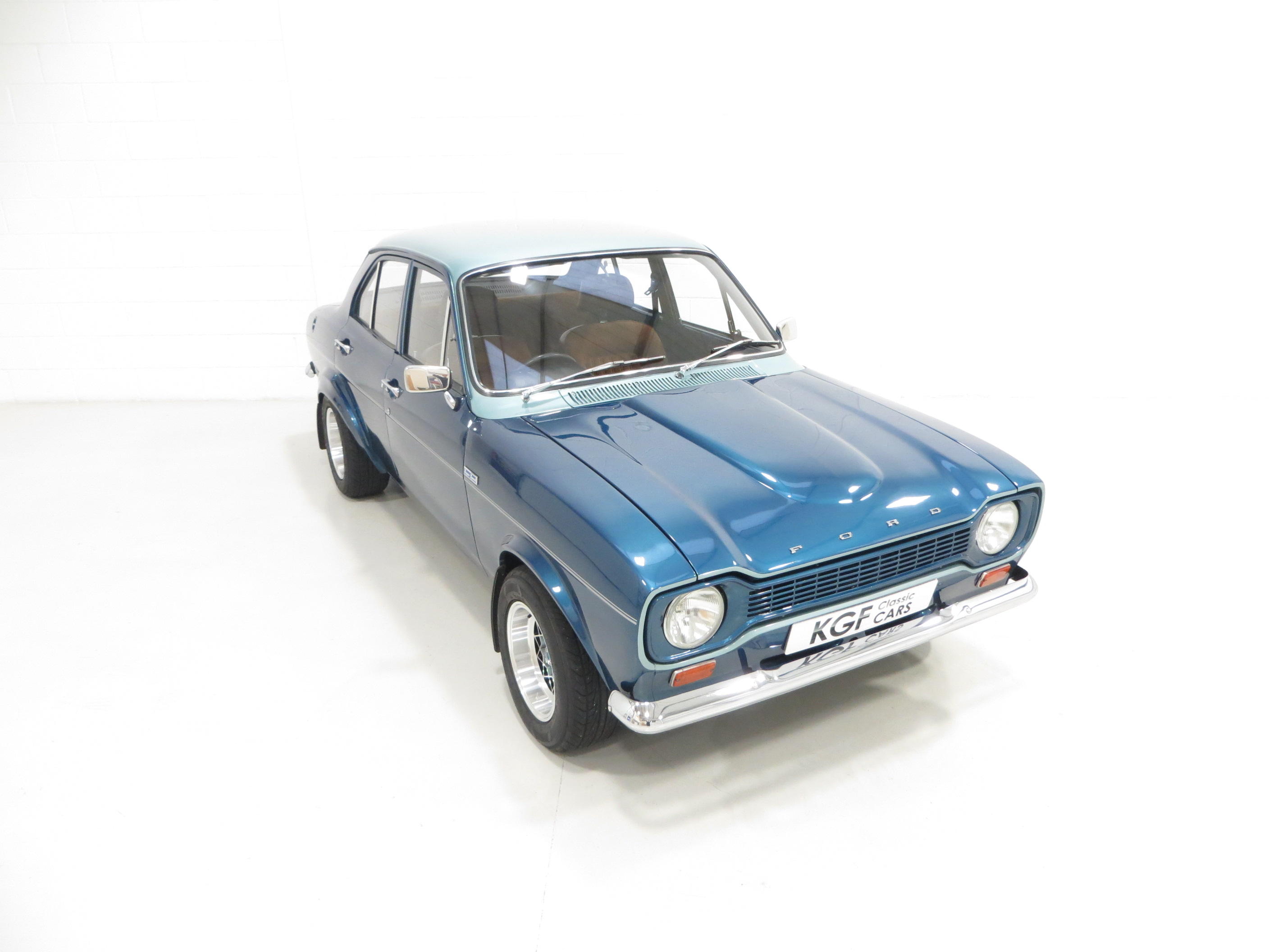 This pristine Mk1 Ford Escort is impeccably detailed and looks stunning finished in lustrous two-tone Blue metallic. Ford Mexico front wings, steel flared rear wheel arches, power bonnet bulge and beautiful twin exit exhaust pipes hint to the power beneath. The underside is spotlessly clean and in body colour allowing exhibitionists to show this amazing example. Linear panel gaps and perfect alignment indicates the professional craftsmanship invested in this car The impeccable paint finish is truly outstanding and would stand up to even the most extreme scrutiny with a wonderful glossy sheen. All the chrome, glass, and rubbers are perfect. Fabulous.