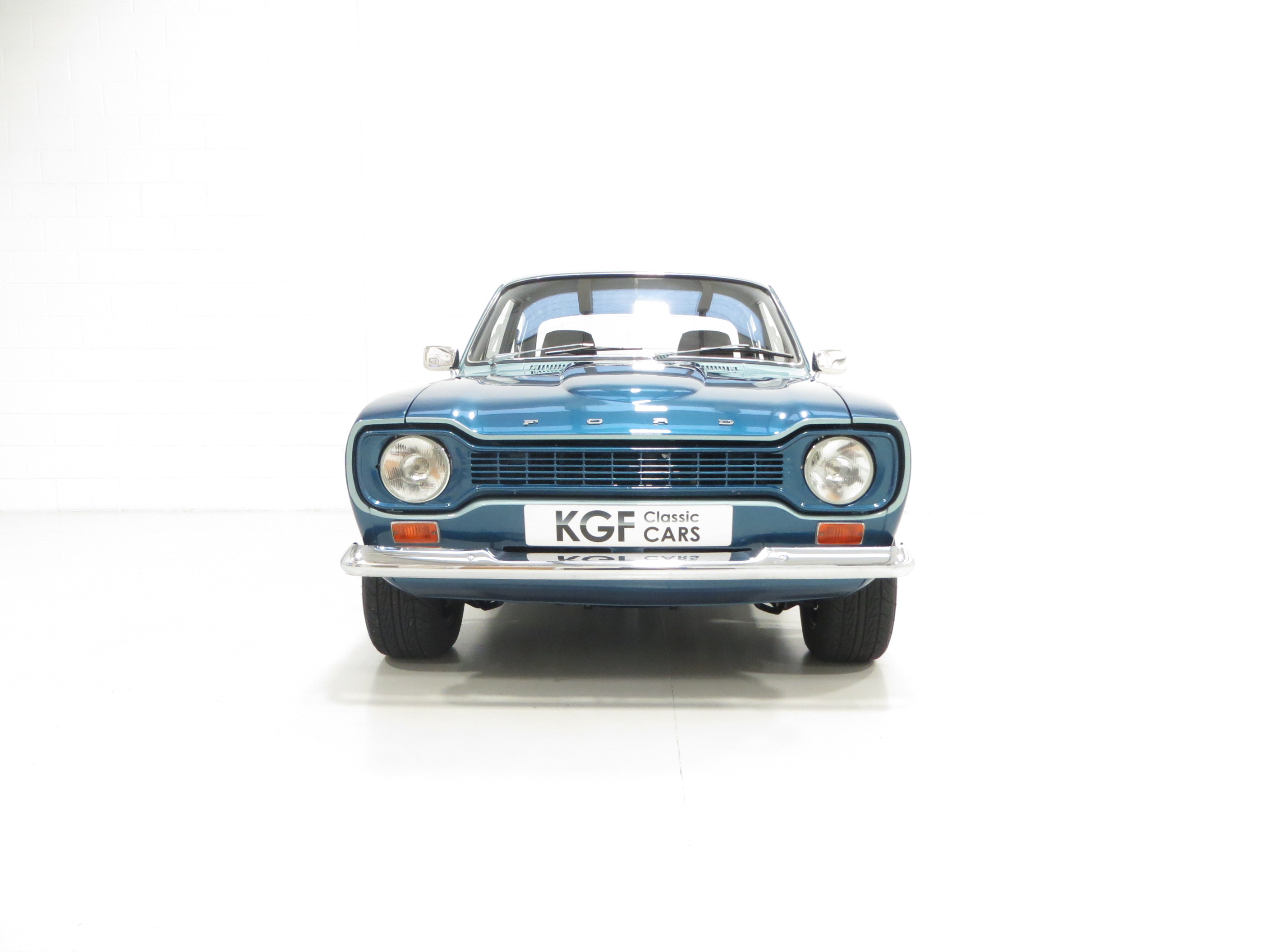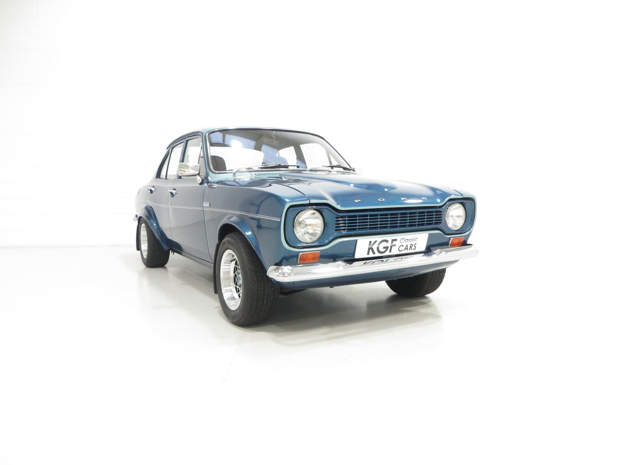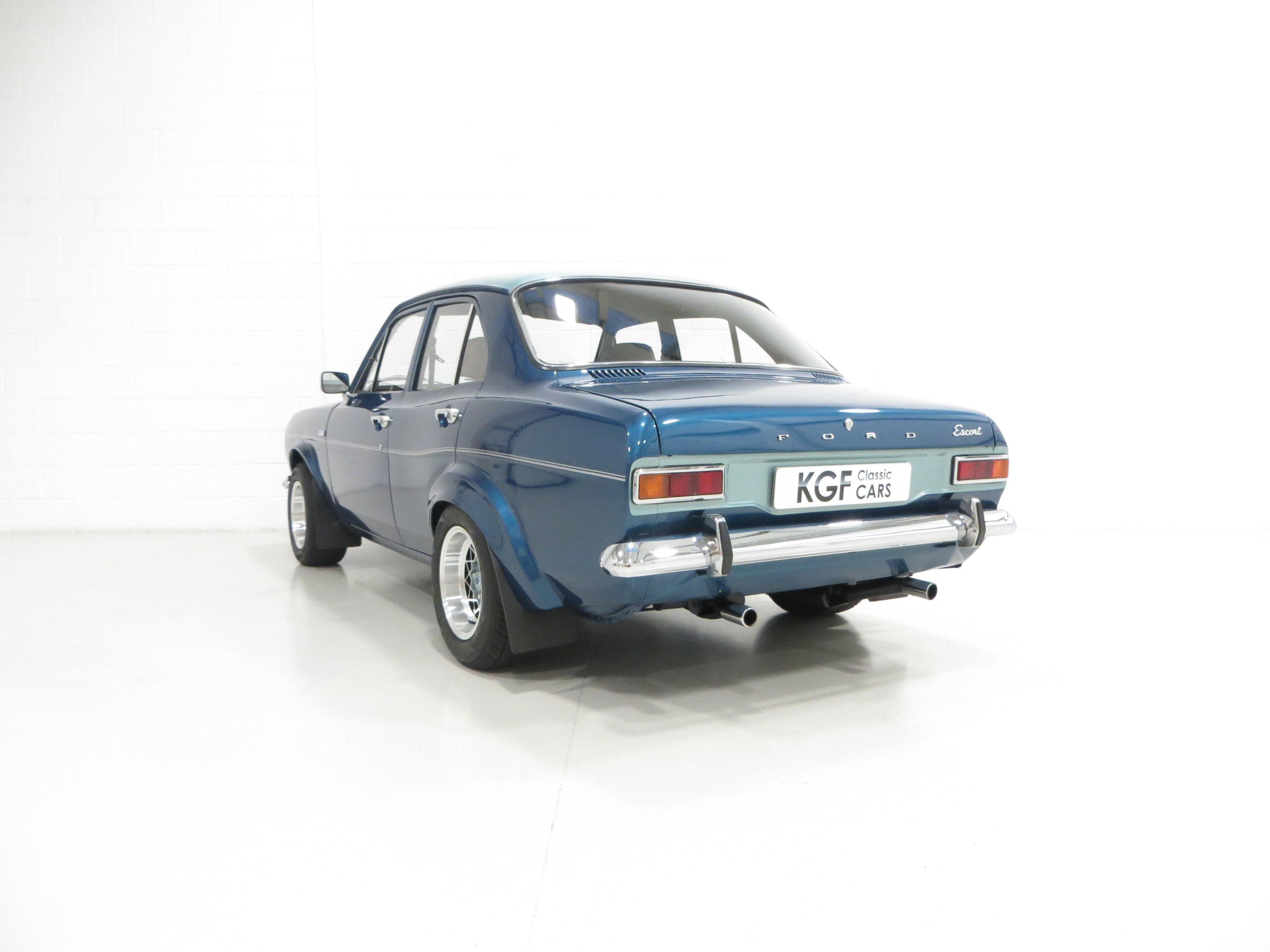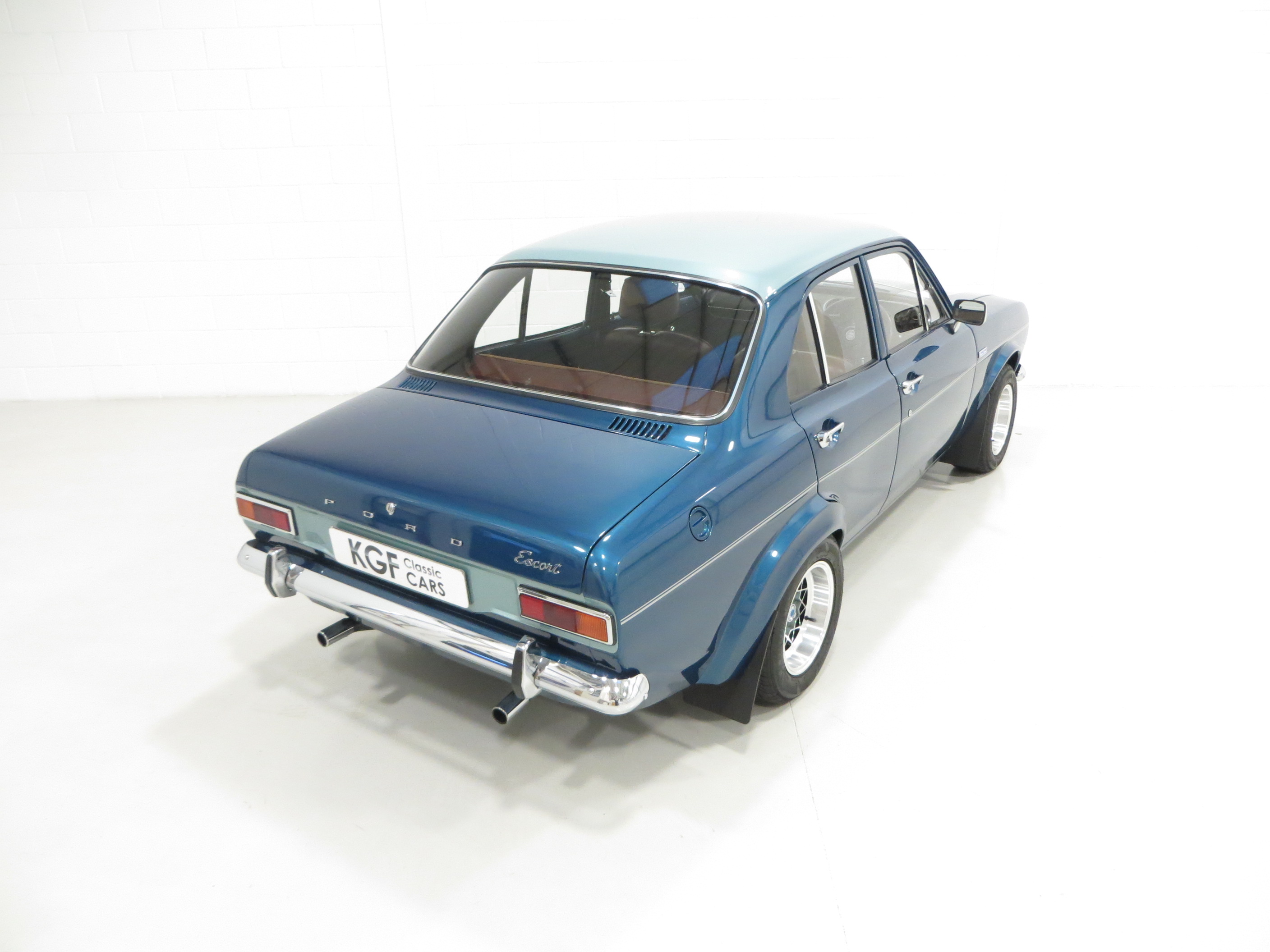 This pristine Mk1 Ford Escort is impeccably detailed and looks stunning finished in lustrous two-tone Blue metallic. Ford Mexico front wings, steel flared rear wheel arches, power bonnet bulge and beautiful twin exit exhaust pipes hint to the power beneath. The underside is spotlessly clean and in body colour allowing exhibitionists to show this amazing example. Linear panel gaps and perfect alignment indicates the professional craftsmanship invested in this car The impeccable paint finish is truly outstanding and would stand up to even the most extreme scrutiny with a wonderful glossy sheen. All the chrome, glass, and rubbers are perfect. Fabulous.