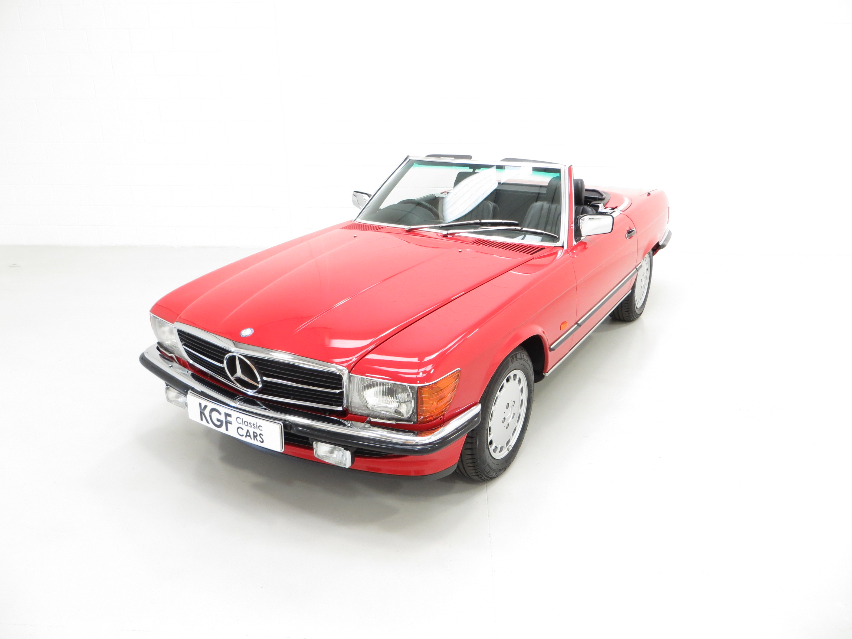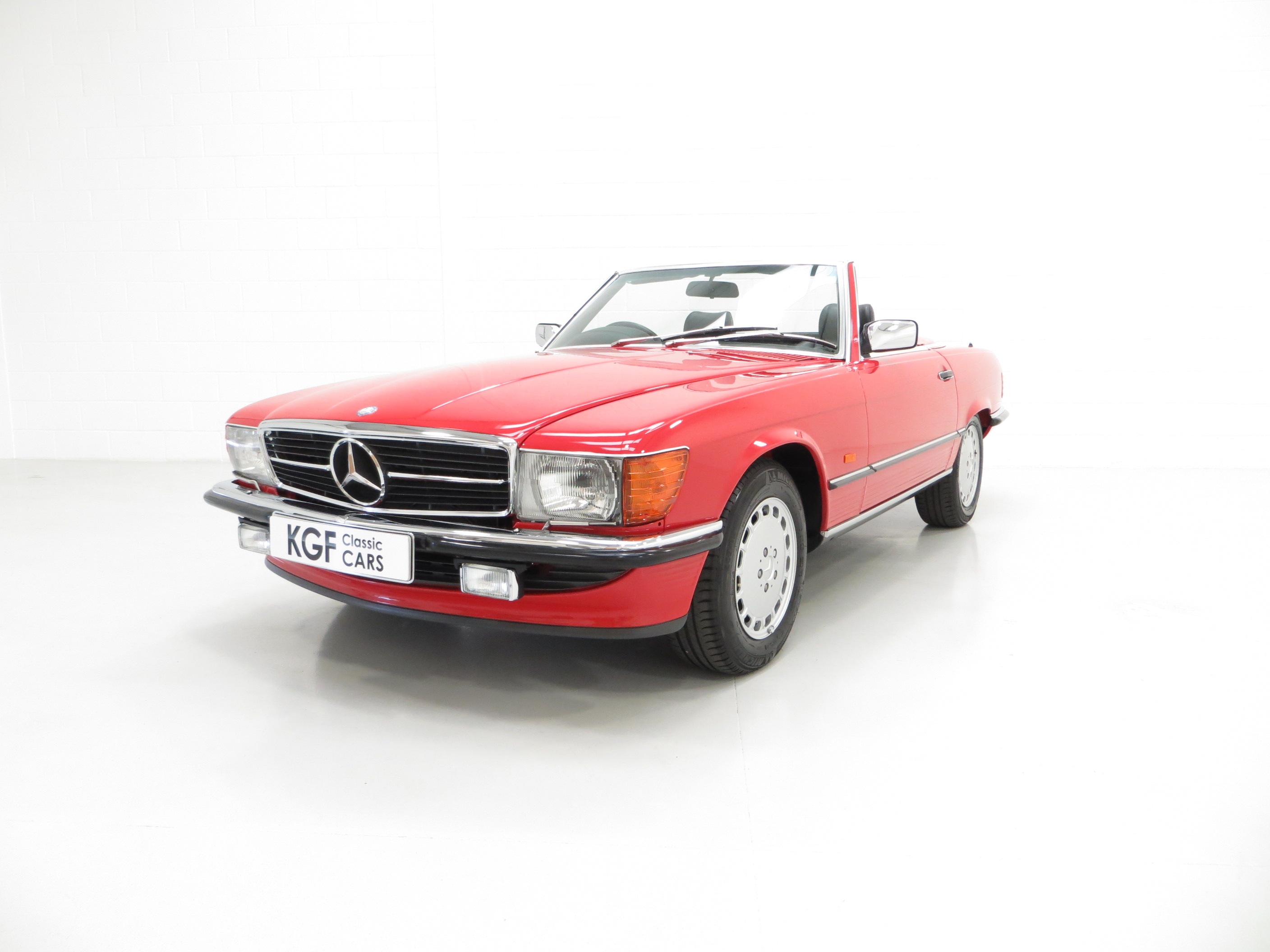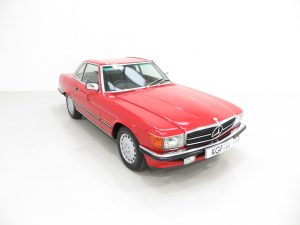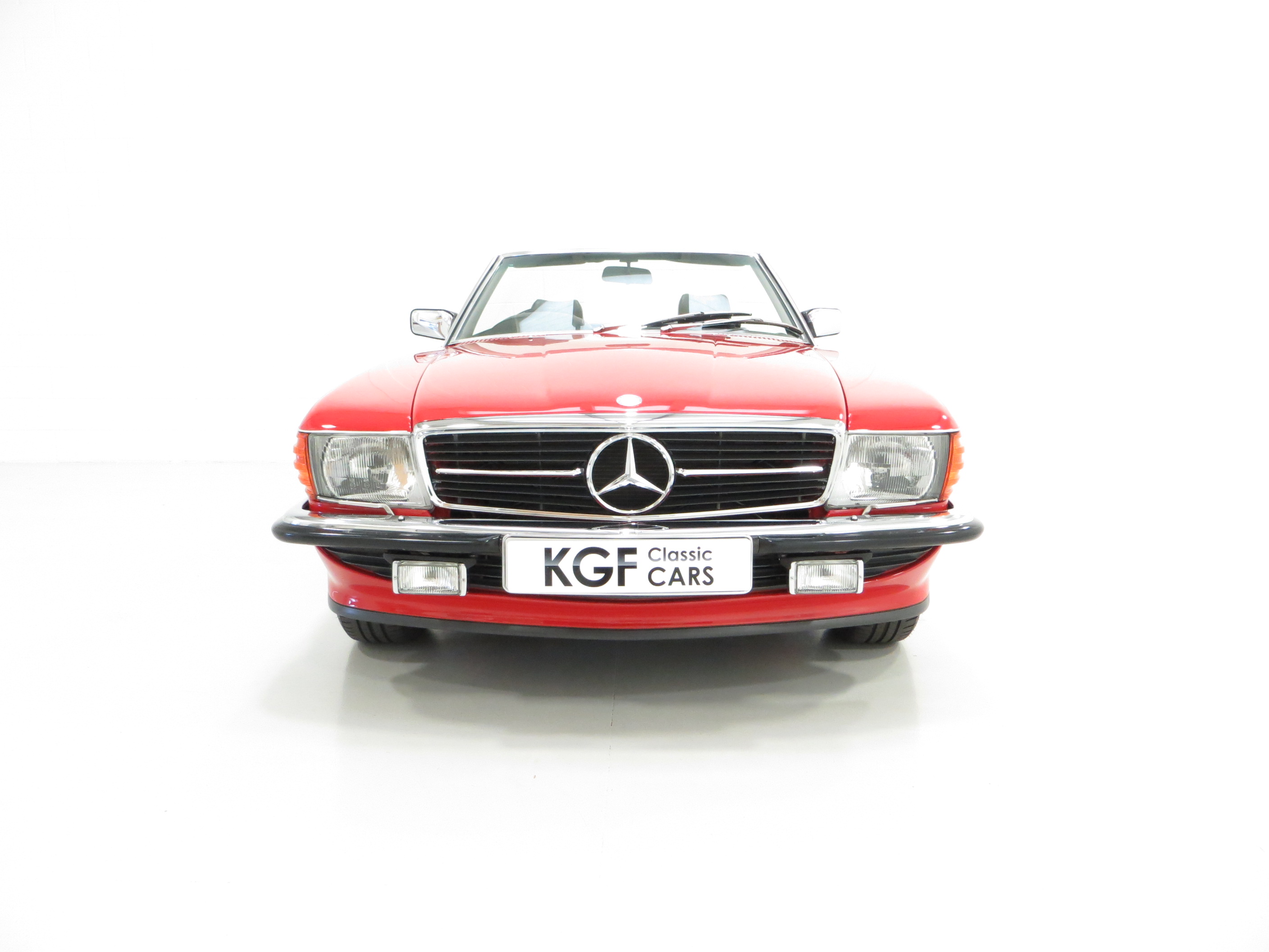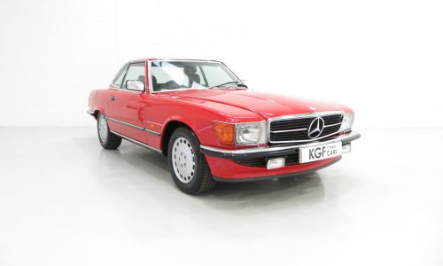This exceptional 420SL is one of the final facelift cars introduced in 1986 and was first registered on 11th June 1986 by Mercedes Main Dealer, Bradshaw Webb of Chelsea. The history file is quite simply breath-taking with the original service book containing 28 stamped entries along with the full book pack in the plastic wallet as well as all dealership literature and both genuine Mercedes roof prongs neatly stored in the pouch holder.