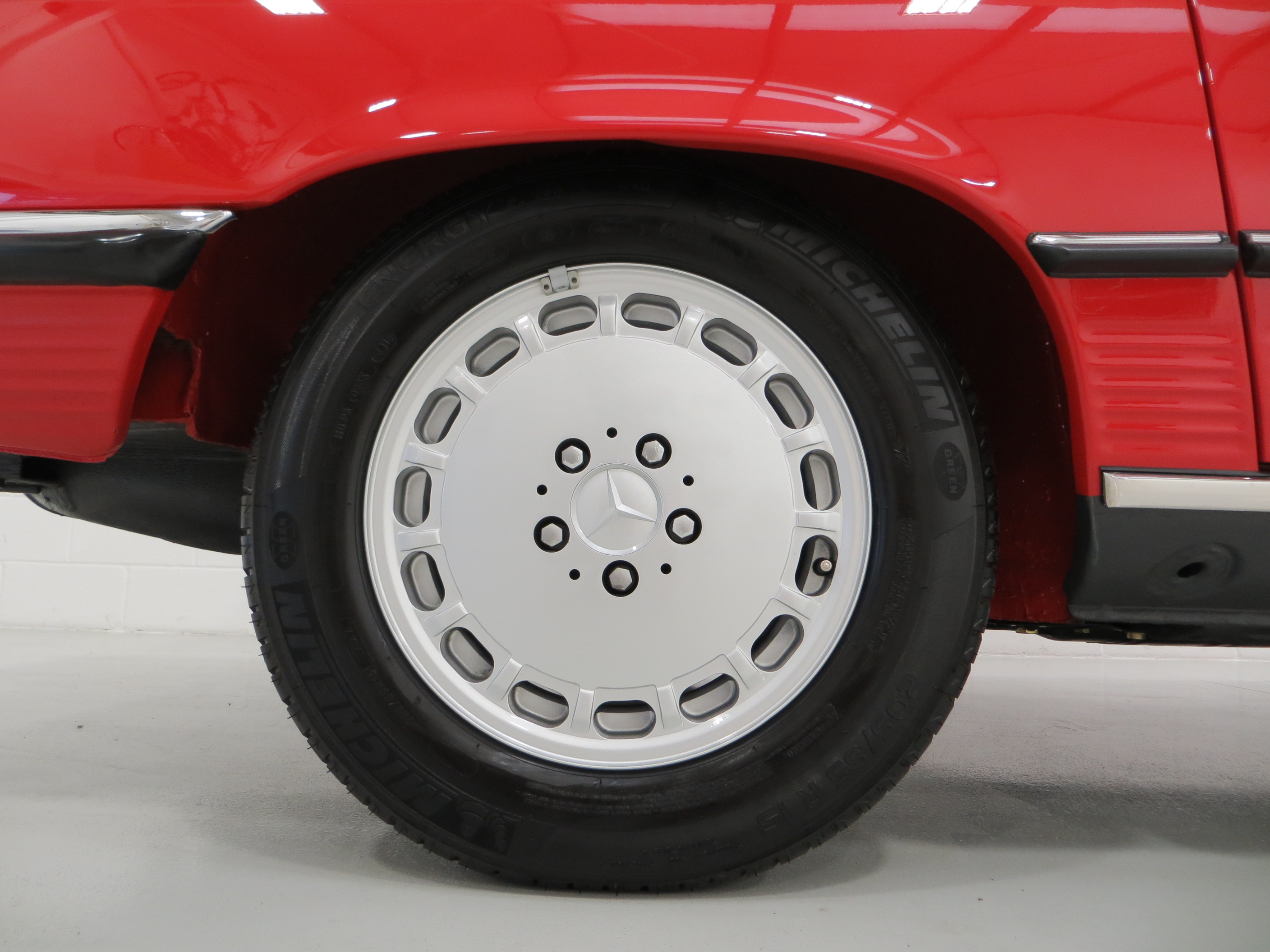 The stylish 15-hole light alloy wheels, as fitted to later models, are immaculate and five quality matching branded Michelin 205/65 R15 tyres have masses of tread, the spare wheel still having changing guide tag attached! The wheel weights are fitted externally as per factory. Another feature of this later model 420SL is the Anti-lock Braking System fitted as standard.