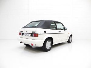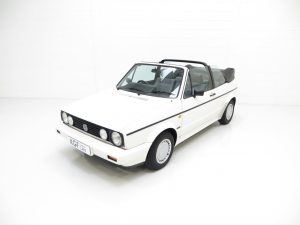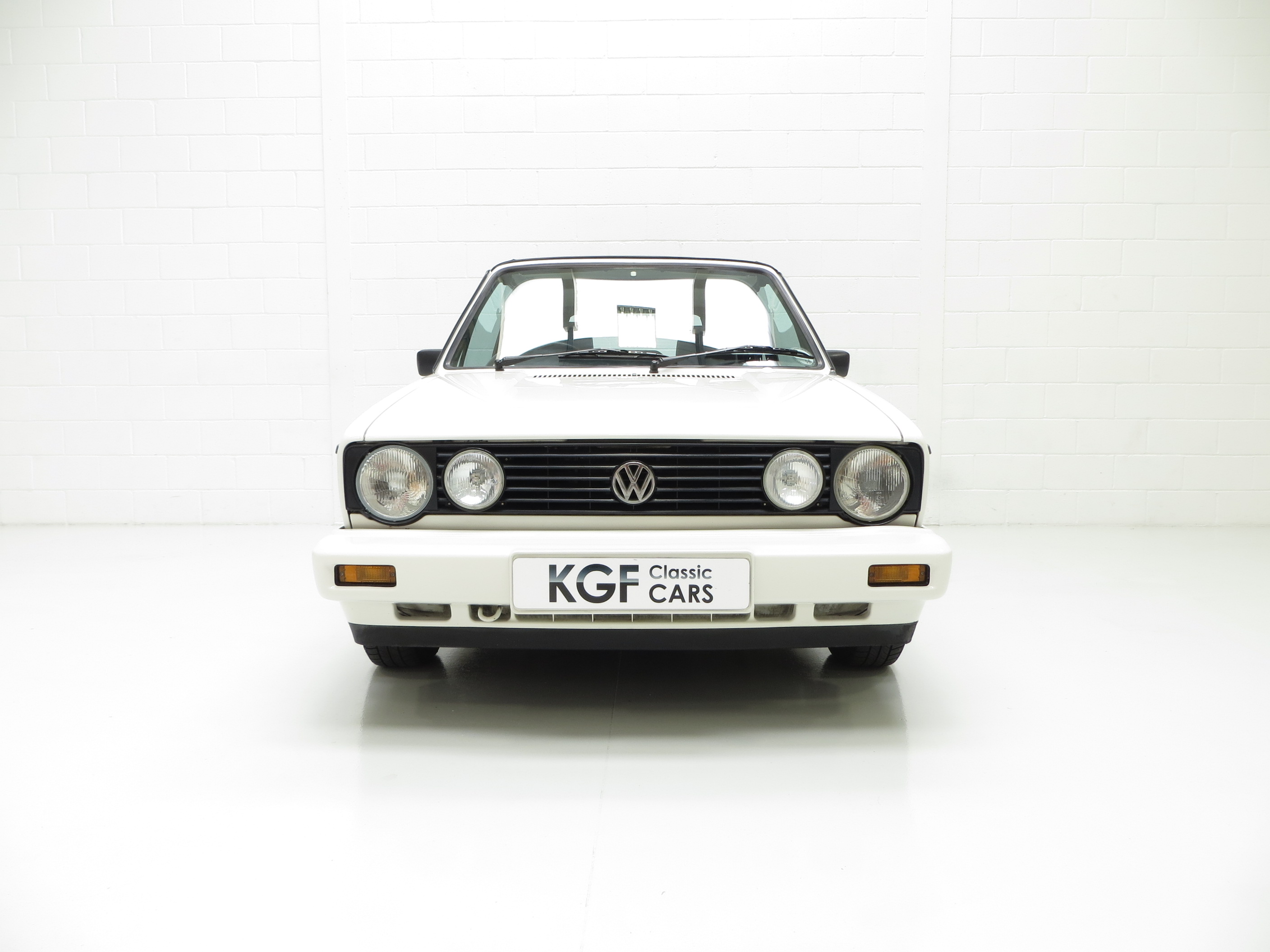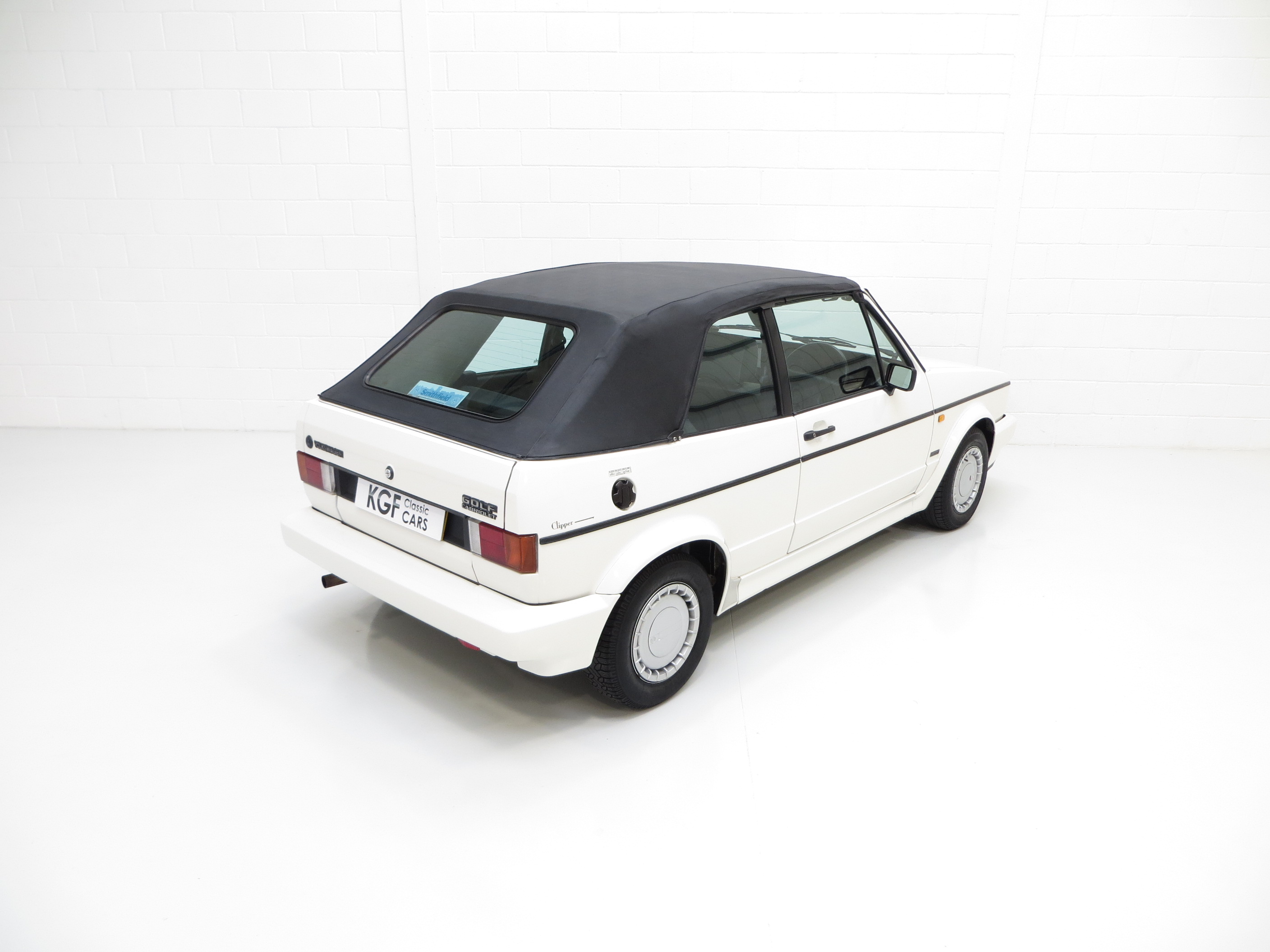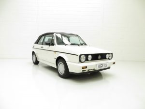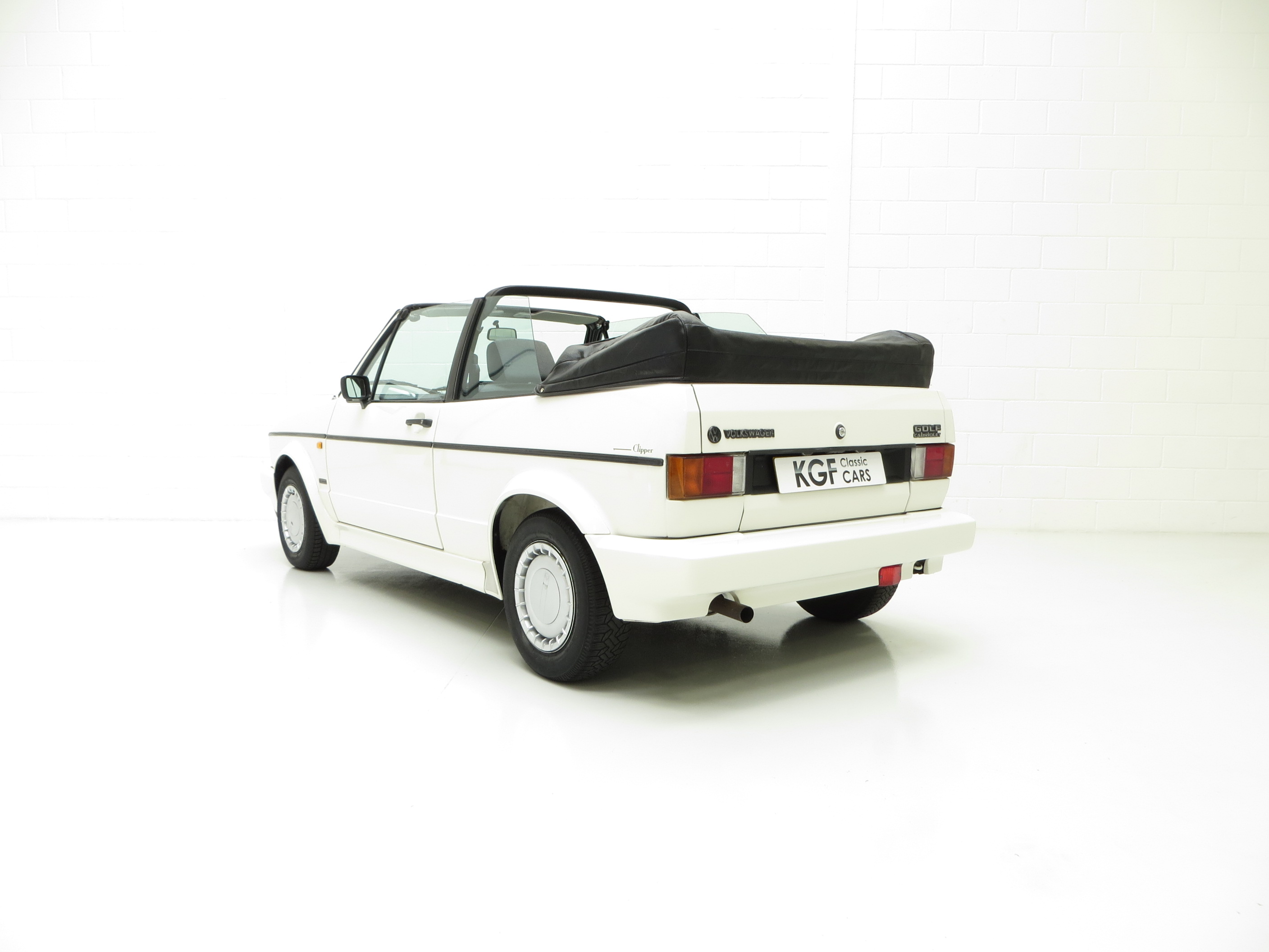 This stunning Golf Clipper Convertible has been cherished from new by just one keeper and the exterior presents itself accordingly with such a low mileage and loved example. Finished in original factory Alpine White (code P1), the paintwork maintains a bright uniform shine. Only a tiny singular paint blemish each on the nearside rear panel and nearside front arch extension are visible to only the most determined of inspectors. The convertible hood is finished in contrasting black (code V1) remains damage, rip and crease free. It effortlessly operates electrically and folds away neatly under the rear tonneau. Alongside the dealer number plates, rear screen sticker and tax disc holder, even the original option code sticker and factory inspection stamp remain in the boot area! The bumpers, rubber side mouldings and all other body trim sections are excellent and scuff free and all factory ‘Clipper’ decals are exactly as Volkswagen intended. Unmolested and beautifully preserved, one for the true enthusiast.
