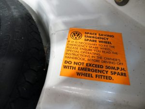This Golf Clipper Convertible is fitted with the original steel wheels and two piece wheel covers. They are all shod with quality branded 175/70 R13 tyres with excellent tread remaining and the original space saver spare wheel is unused with tyre nobbles still intact! The diagonally split braking system incorporating front discs and self-adjusting rear drums delivers prompt and assured stopping power.