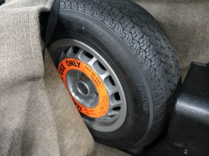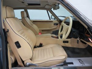 Immediately apparent as a true Jaguar thanks to lavish piped and stitched Connolly hide which was supplied exclusively for the Jaguar Sport is still sumptuous and matches the unique Momo of Milan sports steering wheel. Finished throughout in Magnolia with immaculate walnut veneer the detail can be seen with unique sport features such as the XJR-S embossed headrests. The stainless steel treadplates have minor markings and all the controls, switches and gauges function perfectly. The Jaguar DAC5574 cassette player has power but no sound. An unused jack and wheel brace are found in the carpeting bag along with the toolkit in the hard plastic case. The screwdriver is missing. An immensely rewarding interior and fit to grace the once fastest road going Jaguar.