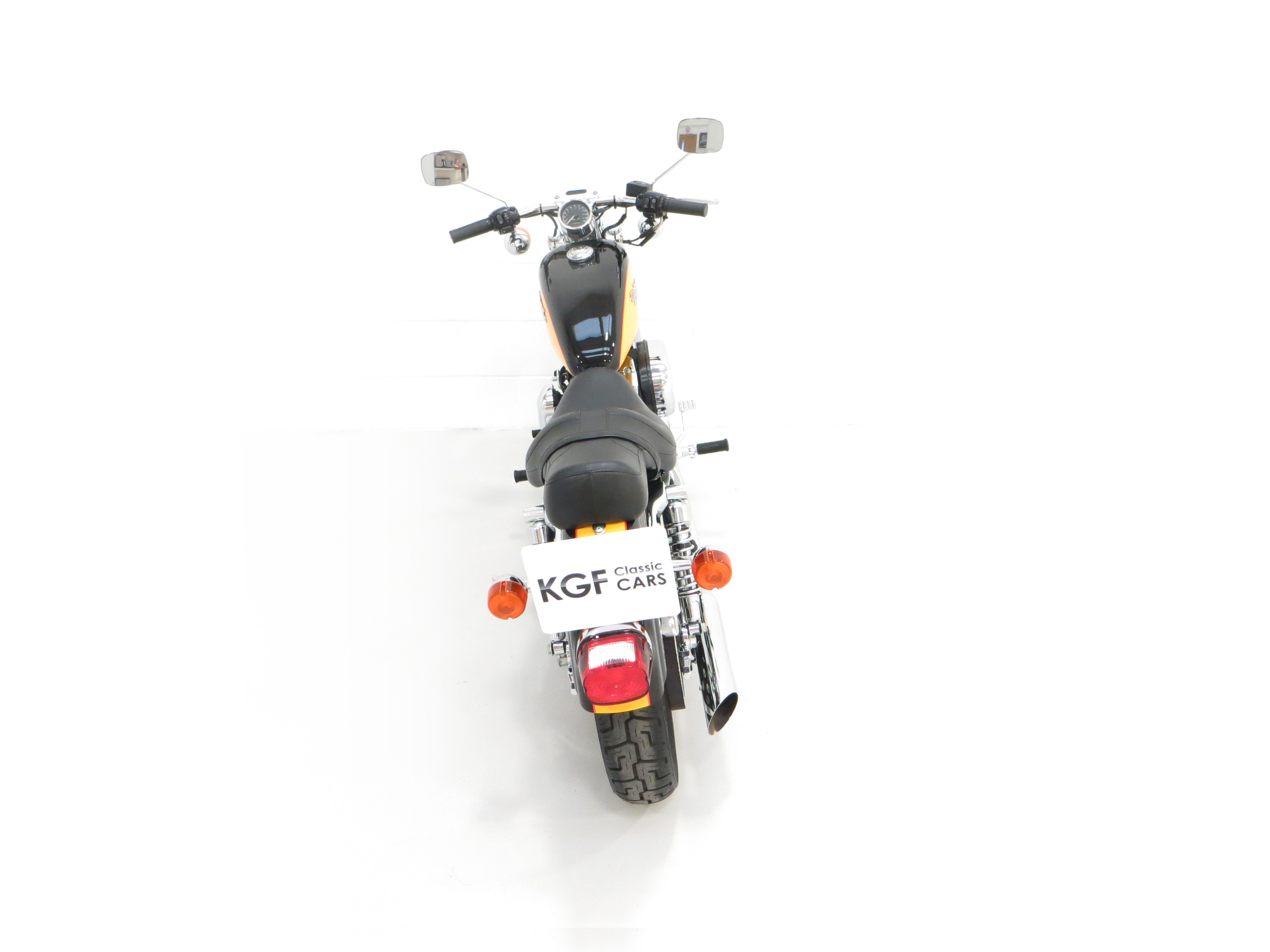 The Harley Davidson Sportster is a line of motorcycles continuously produced by the iconic manufacturer since 1957. This XL 1200C Sportster 1200 Custom has covered an astonishingly low 316 miles from new with just one owner and is as close to a new machine as you are ever likely to find! The factory original 2-Tone Vivid Black and Chrome Yellow paintwork looks simply stunning against the lashings of mirror finish chrome. The one and only owner specified a plethora of Harley Davidson genuine Sportster accessories and Screamin’ Eagle Sportster accessories from the huge catalogue of additions available. These machines really are a dream to those wishing to personalise their pride and joy! Commensurate with the hyper-low mileage is the condition of this machine with meticulous scrutiny revealing unspoilt perfection throughout. The exposed ‘naked’ construction offers clearly visible factory labels, engine stamping and VIN stamping to the stock. Ride the legend with this as new Sportster.