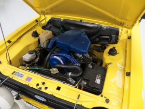 Visually identical from the same era and part of the ‘Pinto’ family, a 2.1cc OHC with 4-branch exhaust manifold performs faultlessly and is a recognised period improvement to the 1593cc unit. Completely rebuilt to a high standard from RJD Propower this engine produces 119bhp allowing comfortable modern day use. A Weber 38 DGMS carburettor with manual choke is fitted and a full specification sheet is provided. A top speed of 108mph and 0-60mph in 8.5 seconds can be expected. Again, for real enjoyable use, a Type-9 5-speed Ford gearbox is fitted.