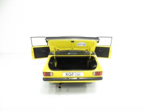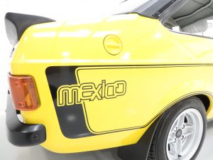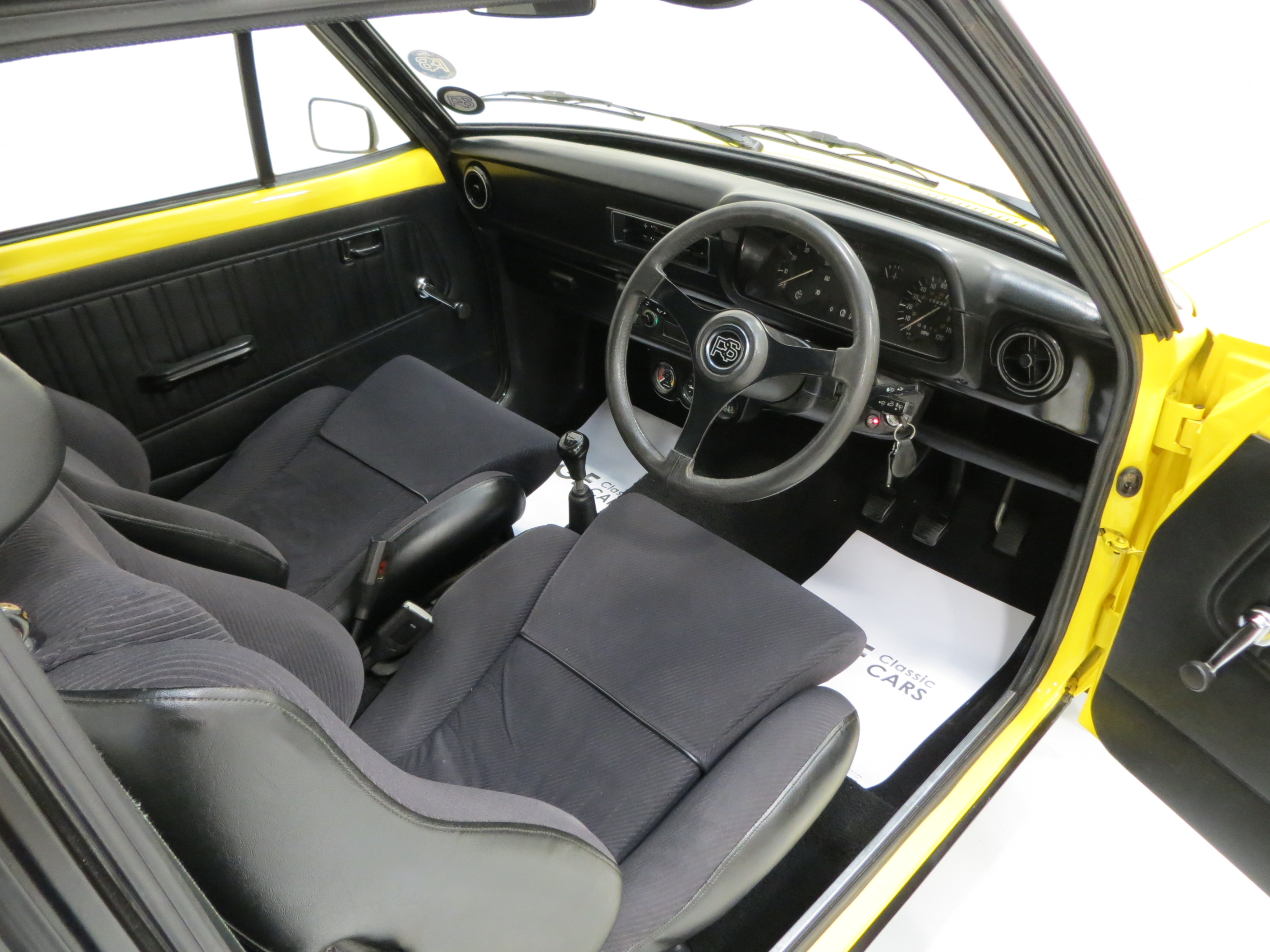 The exterior of this RS Mexico is stunning in every respect. Finished in optional Signal Yellow it has a deep, gloss shine which is amazing and an absolute pleasure to polish. The distinctive squared-up nose styling and front air dam has no stone chips and informs knowledgeable onlookers to the scarcity of this model only built between January 1976 and July 1978. All the trim is perfect, window rubbers are black and all decals are correct and present. The original glass is window plate etched and the supplying dealer rear window sticker is attached. The optional vinyl roof costing £46.75 in 1978 is clean but very slight lift to a few areas can just be seen. The engine bay is spotless and Cadulac treatment was applied when new along with the underbody having waxoyl. Utterly gorgeous and a real show stopper.