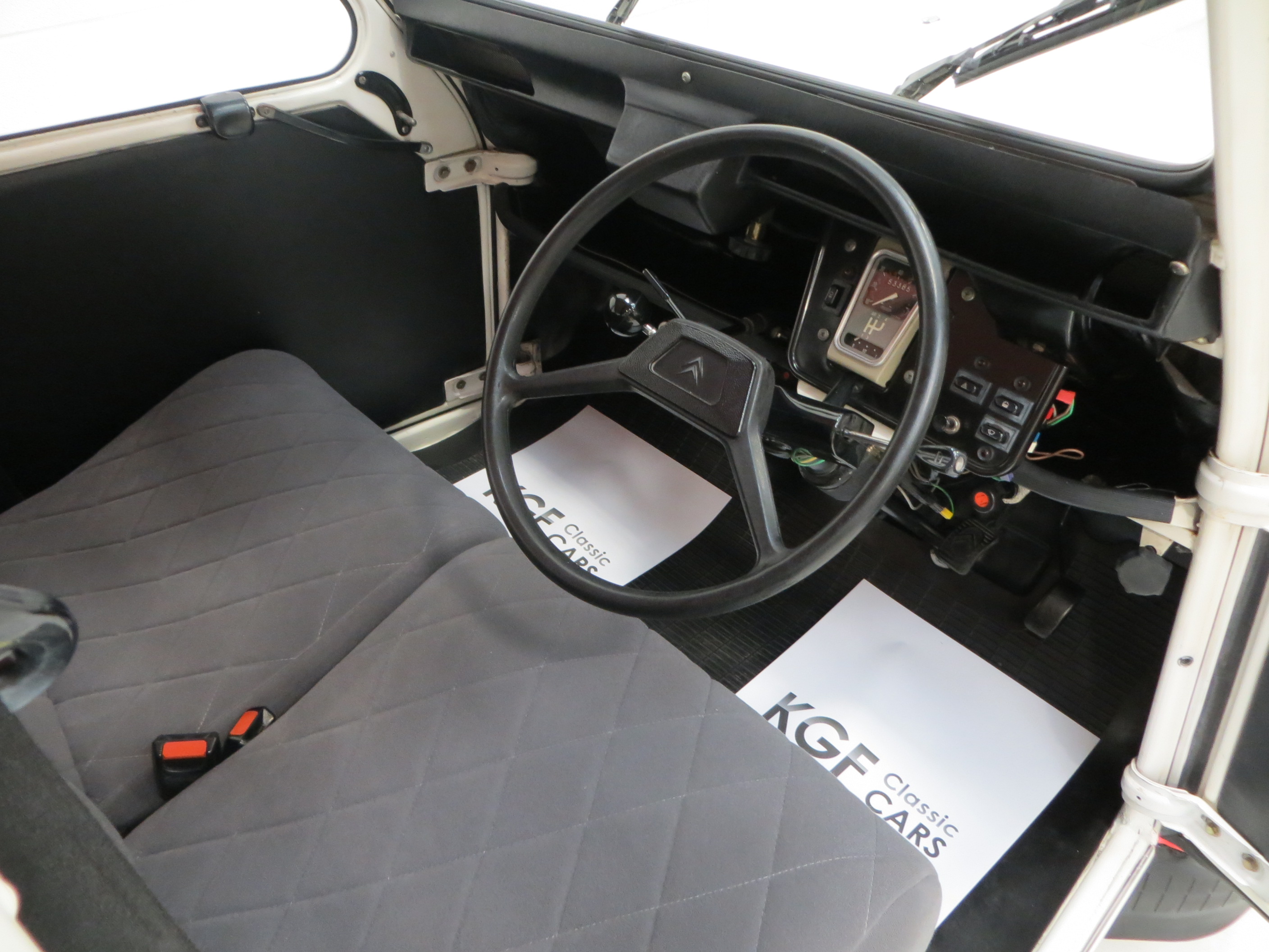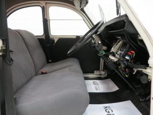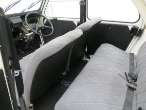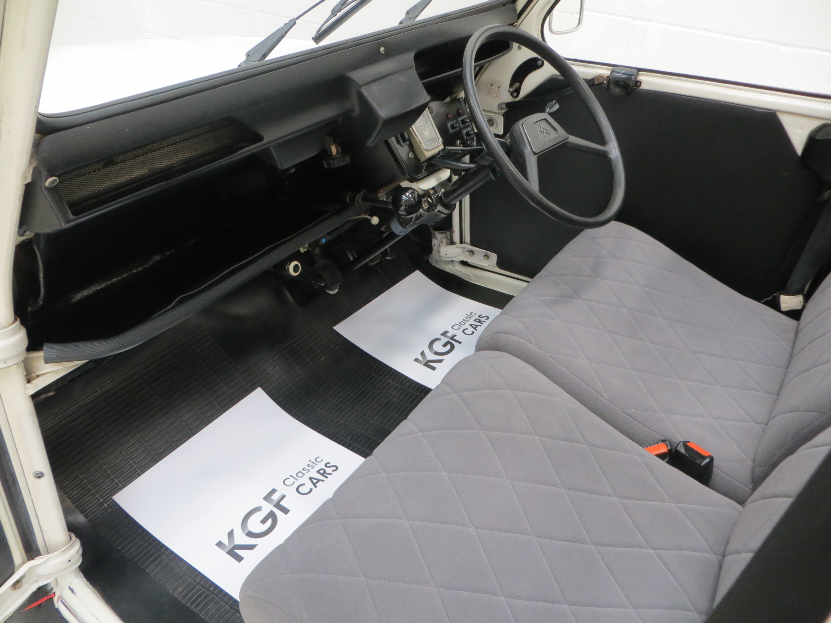 The interior of this Dolly is in remarkable condition. The correct grey diamond shape seat coverings are brand new replacement items, an expensive set specialist sourced and professionally fitted and in stark contrast to cheap copy covers. The switches, gauges and warning lights are all fully operational and are a delight to use, transporting the driver back to simpler motoring times! The floor is absolutely solid and still protected by the original Citroen rubber over-mats. Factory stickers still remain such as the tyre pressure limits on the door edge. The boot floor is very clean and the rust prone seam edges are excellent. The spare wheel and jack are still present. An idiosyncratic delight!