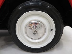 The original painted steel wheels with bright spotless chrome hub-caps are immaculate support the correct and expensive Michelin Radial X 125R15 tyres with ample tread. The spotless spare wheel is present with the same Michelin tyre. The vehicle stops quickly and in a straight line with the inboard disc brakes giving a precise and positive feel.