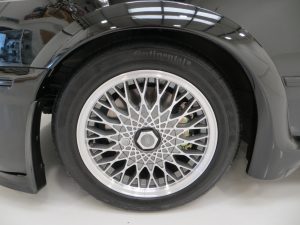 Correct and undamaged factory fitted 15 X 7 inch aluminium alloy (ATS) wheels are shod in Continental 205/50 R15 tyres with ample tread and the spare is the original Dunlop SP Sport D40 205/50 VR15 tyre. Four wheel disc brakes with ABS and a hydraulic booster stop the car with confidence.