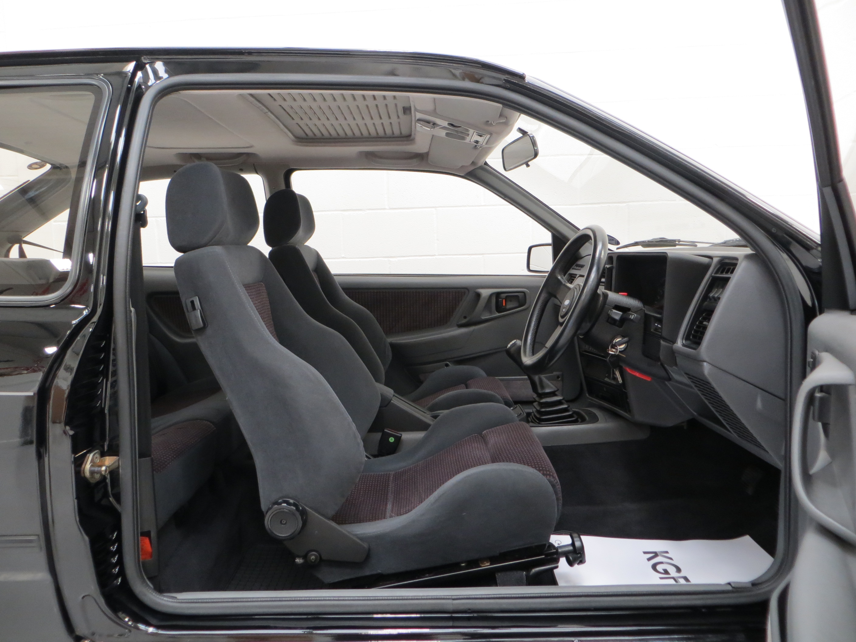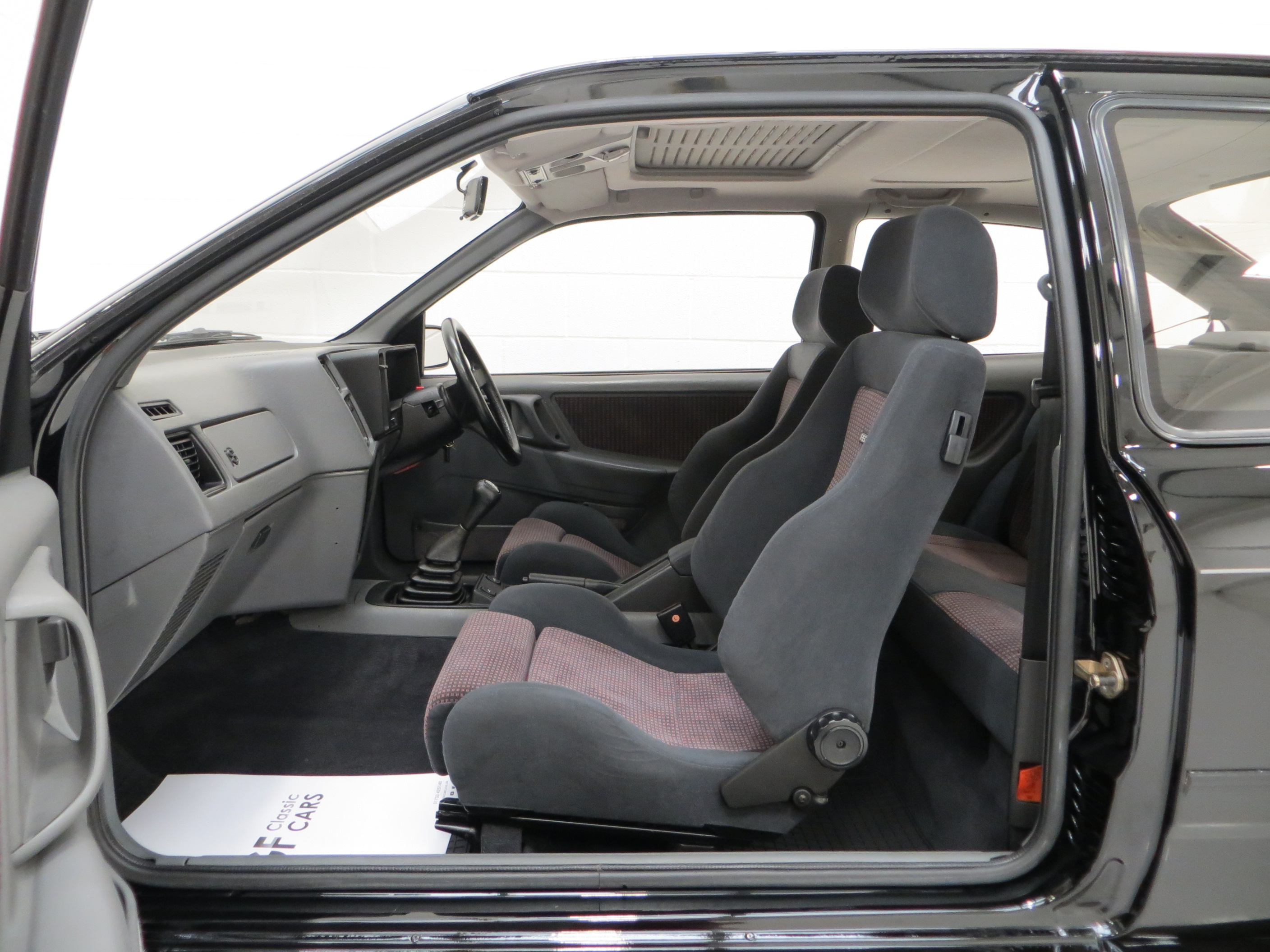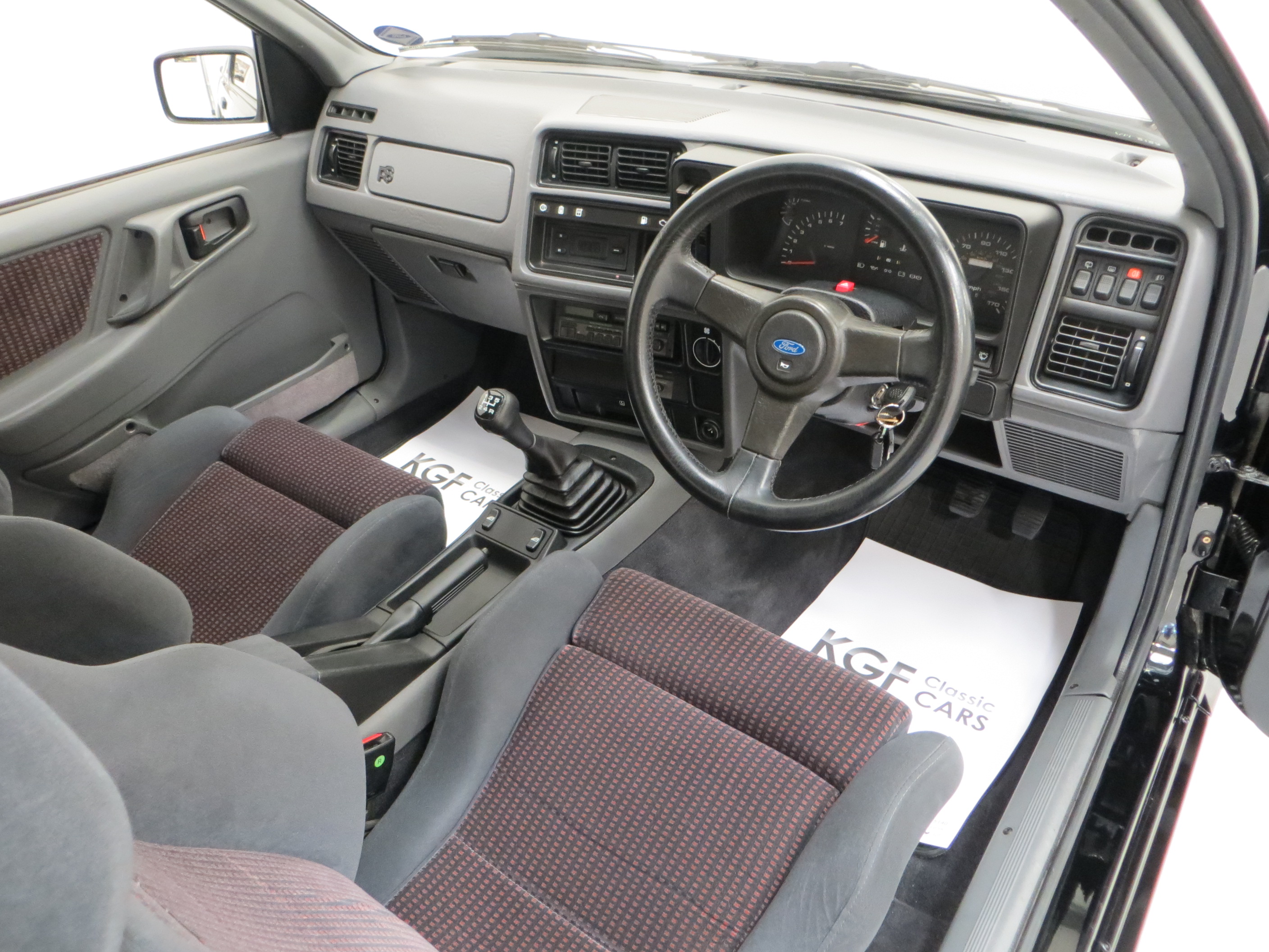 Finished in Ford Roma Grey, (Code S2), the Recaro seats and carpeted door trim are in remarkable condition with no wear or discolouration and completely commensurate with a low mileage pampered example. The driver’s seat bolster still has a soft velvet feel with perfect shape and the carpets are spotless protected by Ford rubber mats. All dials and gauges operate perfectly and show healthy readings and the dashboard is immaculate having suffered no cracks or discolouration. Two small filled holes are visible in the passenger foot-well trim due to a phone cradle having been fitted. The phone kit is listed on the original Ford purchase invoice. The boot area is factory fresh with floor stickers present and the original Ford boot struts no longer hold the tailgate. A fantastic 1980’s interior.