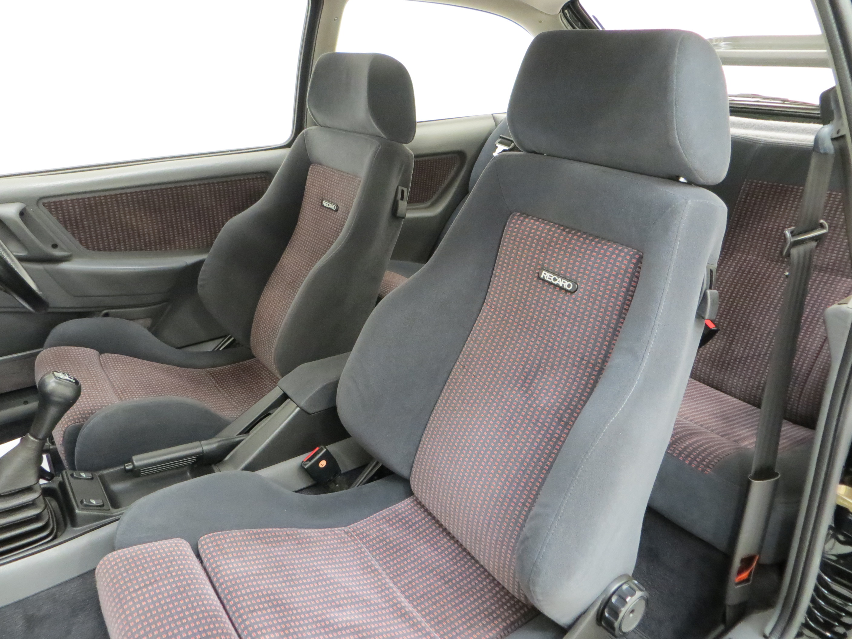 Bodyside mouldings, integral front air dam, colour coded door mirrors, electrically adjustable and heated door mirrors, colour coded lockable fuel filler cap, bonnet cooling vents, halogen headlamps, colour coded bumpers, single plane rear wing spoiler with trailing edge fence, lower tailgate mounted spoiler, tinted glass all round, tailgate wash/wipe, laminated windscreen, central locking, extended centre console, cigar lighter, quartz digital clock, fascia light dimmer, leather gearknob, leather three spoke sports steering wheel, 3-speed heater fan , cassette storage, electronic sound system (model ECU2) with power amplifier, electric aerial, Recaro Sports front seats, tilt and slide sunroof, tachometer with turbo boost gauge, trip recorder, ABS with failure warning light, electric front windows.