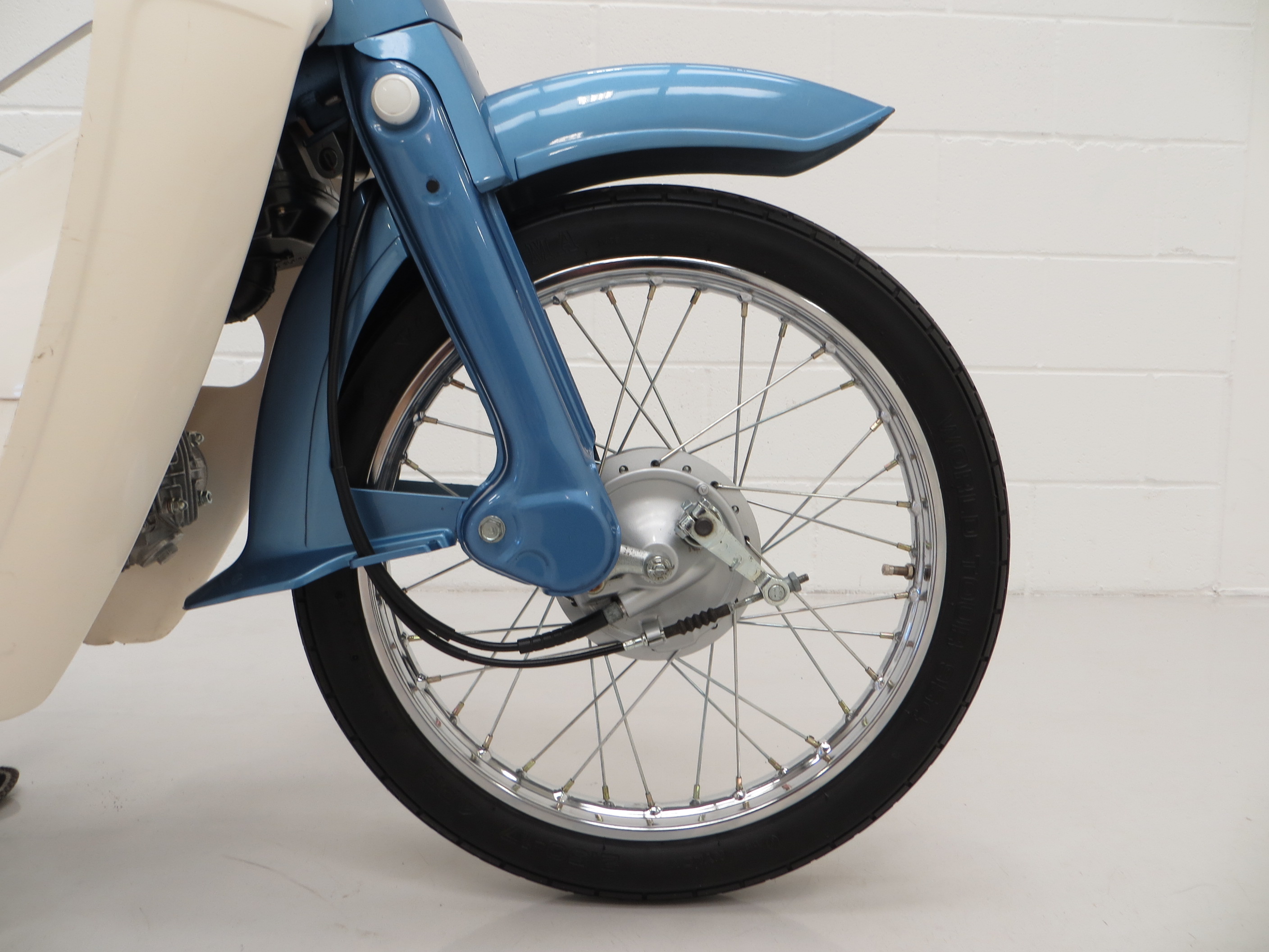 Steel rim/wire spoke wheels are pristine and display correct outer rim stampings and are shod in Yokohama 2.50-17 tyres. The tyres have excellent tread and should be retained but being original fitment, if regular use is intended should be changed. Leading/trailing drum brakes stop the bike quickly and safely.