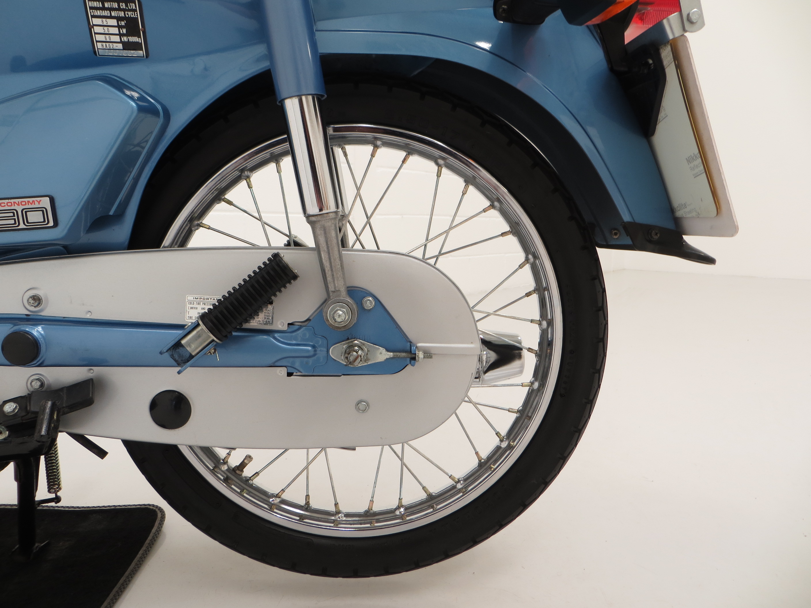 The air cooled 4-stroke 90cc engine develops 7.5bhp at 7500rpm enough to keep up with modern city traffic and perfect for the daily commute. The 3-speed rotary system transmission with automatic clutch is easy to use and in perfect working order. Surprisingly nippy and a lot of fun!