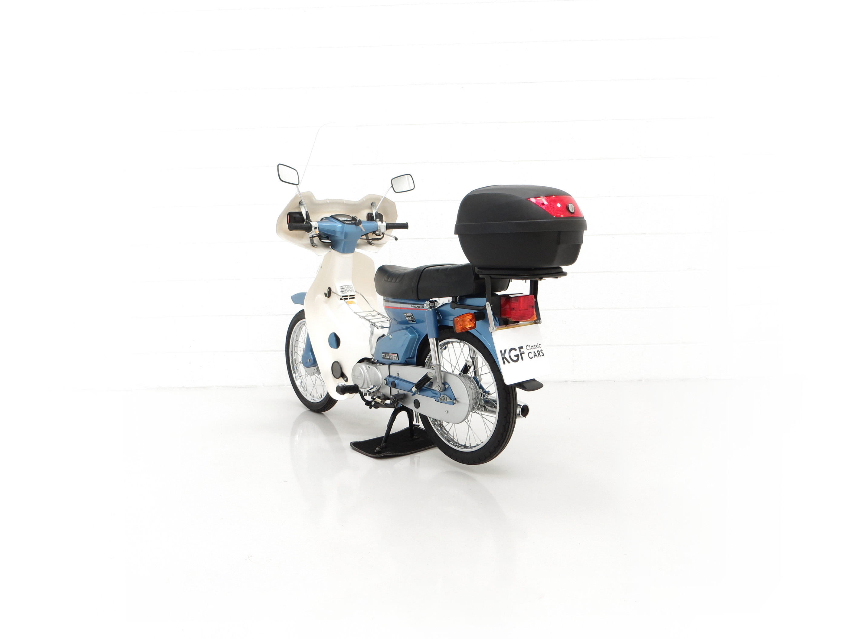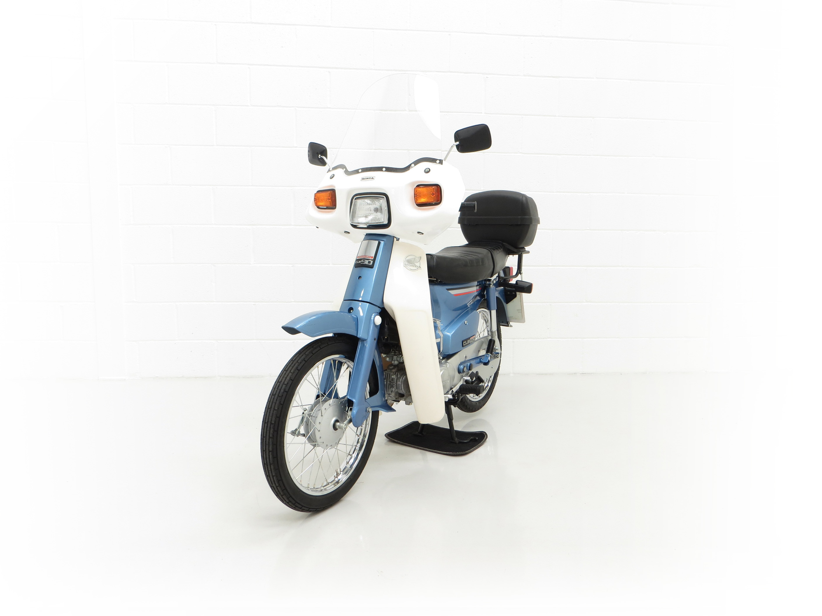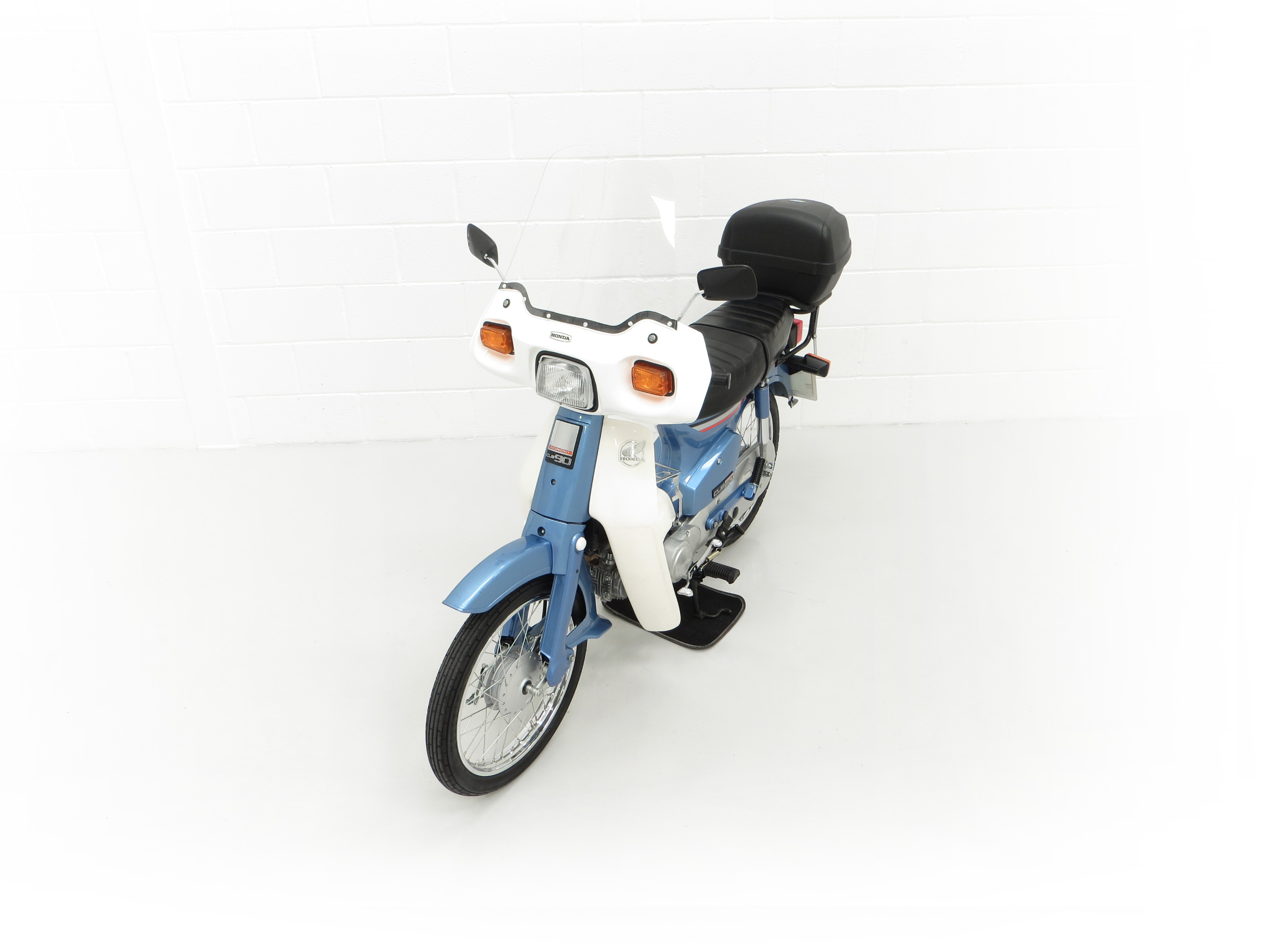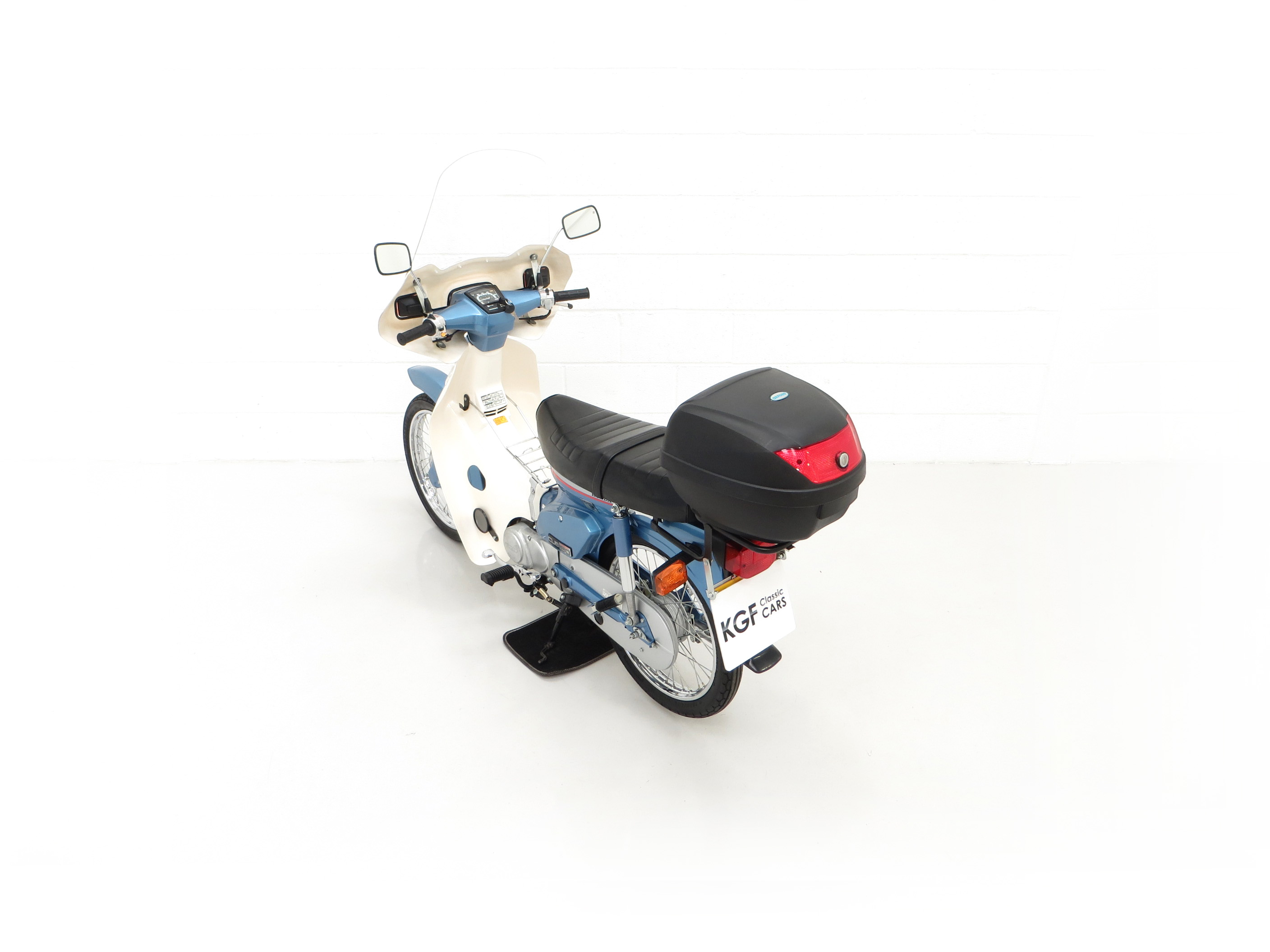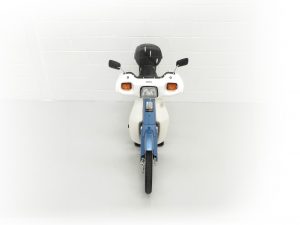 This wonderful 1991 C90-G is finished in iconic Shuttle Blue Metallic, (Code PB121), with Cortina White leg protector faring. Having covered just 193 miles from new, this collector’s example has never been restored and still boasts first paint credentials, virtually unheard of. Markings to the front mudguard and a scratch to the lower faring are entirely forgivable and do not spoil the appearance. All metal is in remarkable shape having never been welded or repaired with the original exhaust only having microscopic pitting and the engine casing slight tarnishing. Stanley indicator lenses remain fitted and the polyethylene leg guard/cowling has no cracks. Factory decals below the seat and original stickers and warning labels will further delight originality seekers, as will the factory badges. The comfortable dual seat black seat covering is also factory fitment with no rips or tears and the toolkit is present in the side locker. All switchgear, lights and instruments are fully functional. This unspoilt C90 is deliciously retro and a fitting tribute to this Honda icon.