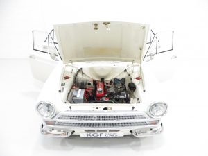 Registered new on 6th December 1966 as a humble mid-range 1500 De Luxe, this example led an unassuming yet cherished existence throughout its first four decades. It wasn’t until 2006 when despite being a relatively sound useable example, Mr Stephen Greenwood thankfully saved the car from a ludicrous plan to scrap it! Therein began an incredible quest to build the ultimate Mk1 Cortina with a twist. A colossal history box file contains literally hundreds of receipts and invoices evidencing thousands of pounds worth of parts from renowned specialist suppliers, as well as many restoration photographs and previous MOT certificates. The no expense spared mentality was clearly infectious and the overall build cost grew to an eye watering amount! In 2011 Mr Barry Payne a friend of Mr Greenwood purchased the Cortina knowing what a fantastic opportunity it represented. Mr Payne a very well known character on the classic Ford scene has owned countless classic blue oval marques and the Cortina sat nicely alongside his existing collection. His fastidious nature and cherished ownership means the car remains presented in impeccable order, a real credit to them both.