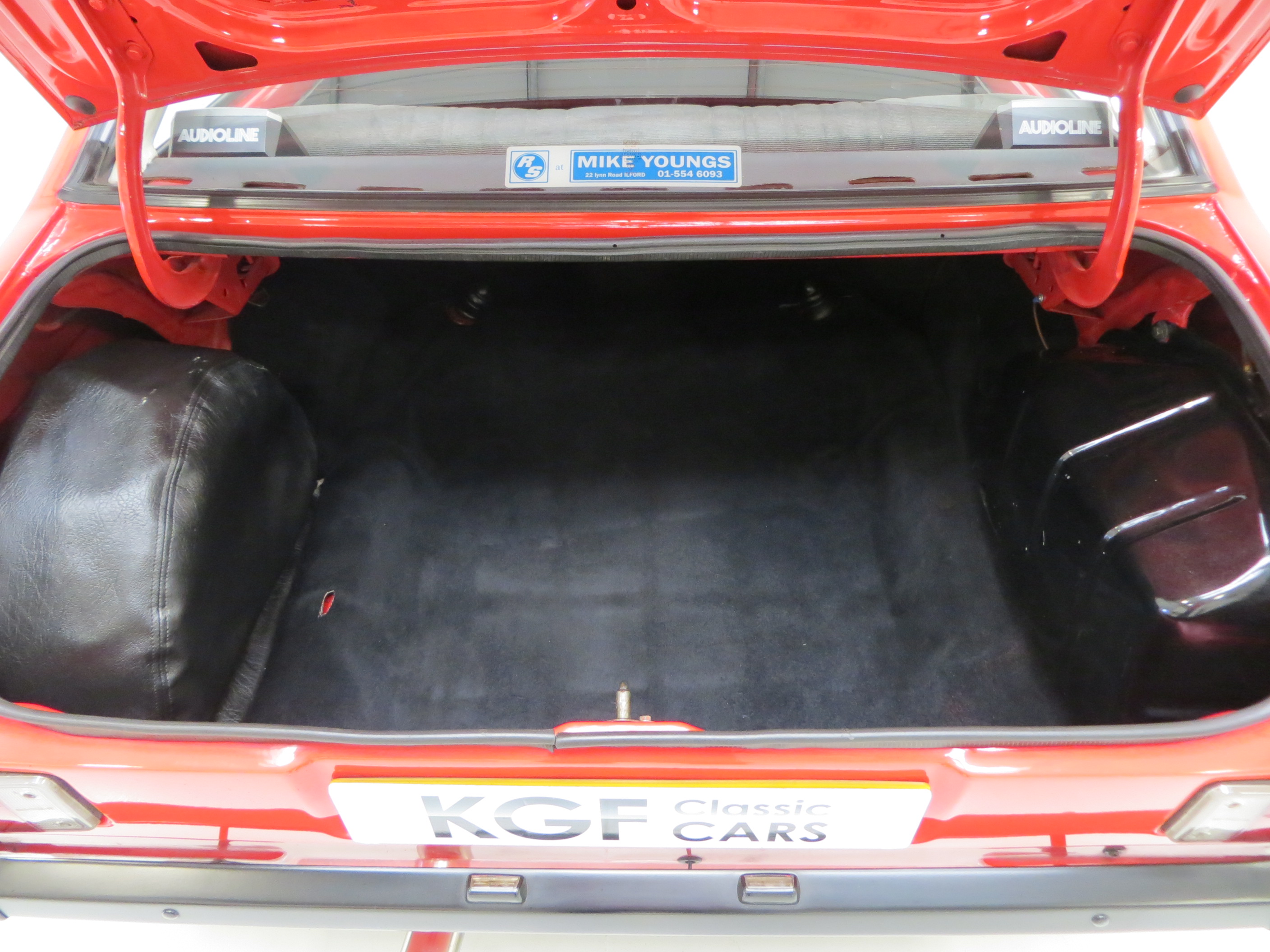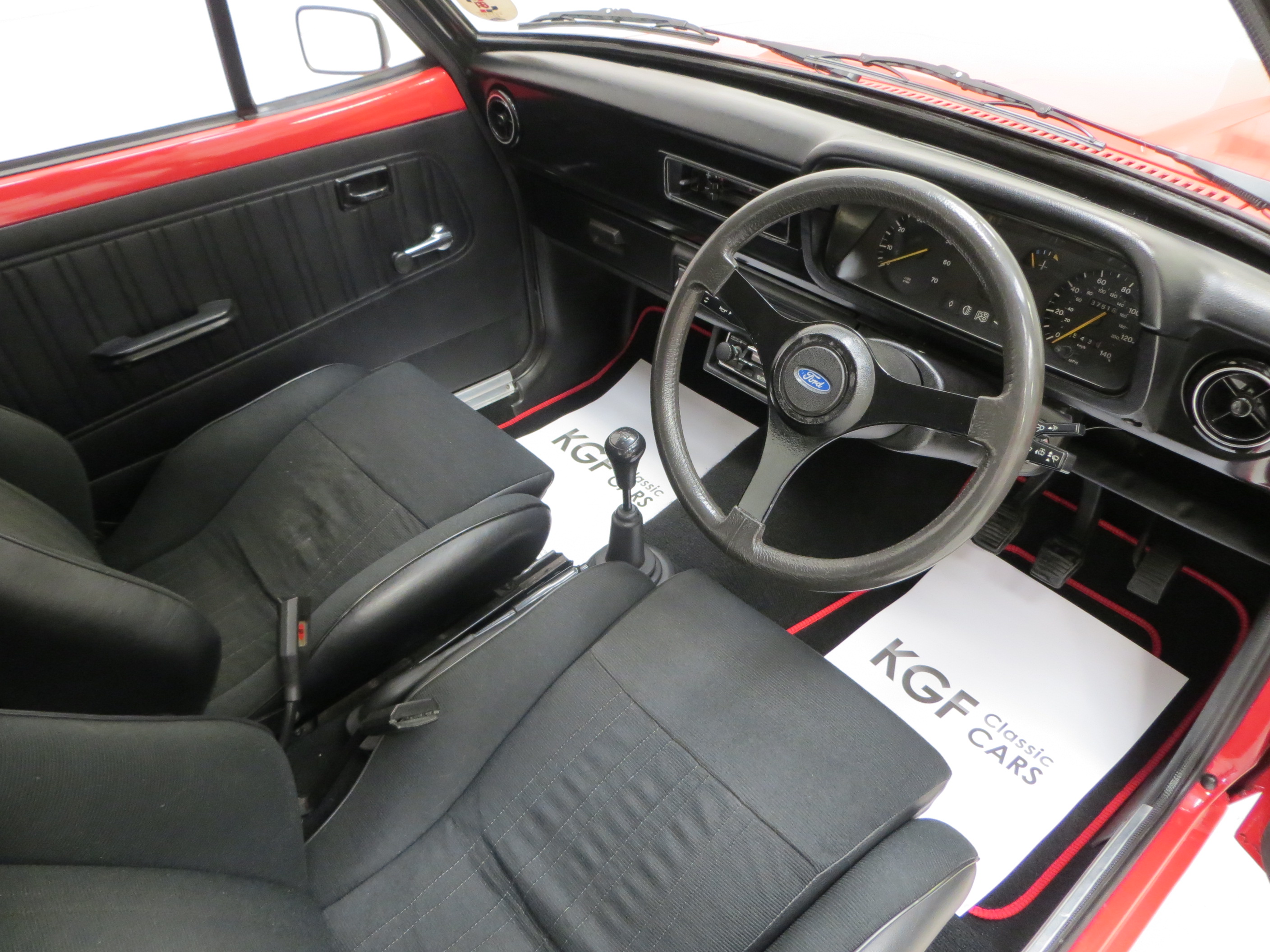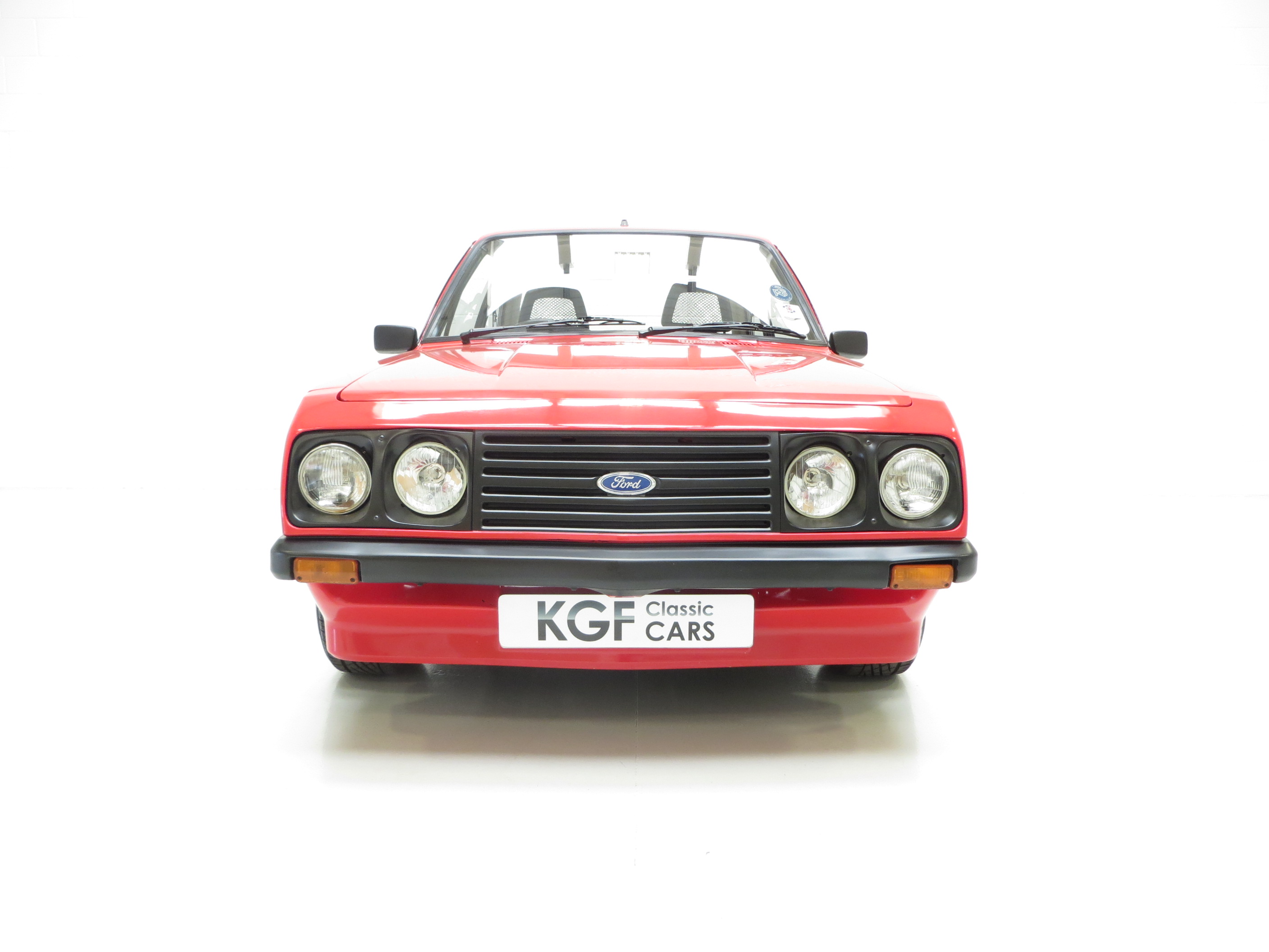 This superb RS2000 Base example is finished in vibrant Venetian Red (code R6). A bright polished finish is pleasing to onlookers and worthy of pride on the show scene. The rear pane around the lamp clusters and number plate remains body coloured and the windows are non-tinted, true to the Base specification. Minor blemishes to the paintwork are visible and the nose cone does have some colour fade. All trim sections and RS decals and badges remain intact and in excellent order, and a very clean engine bay is ready for bonnet up exhibiting. Replica Ford Main Dealer rear screen sticker and number plates are fitted to the car. Altogether a very clean and usable example of Ford’s iconic RS2000, ready for enjoyment!