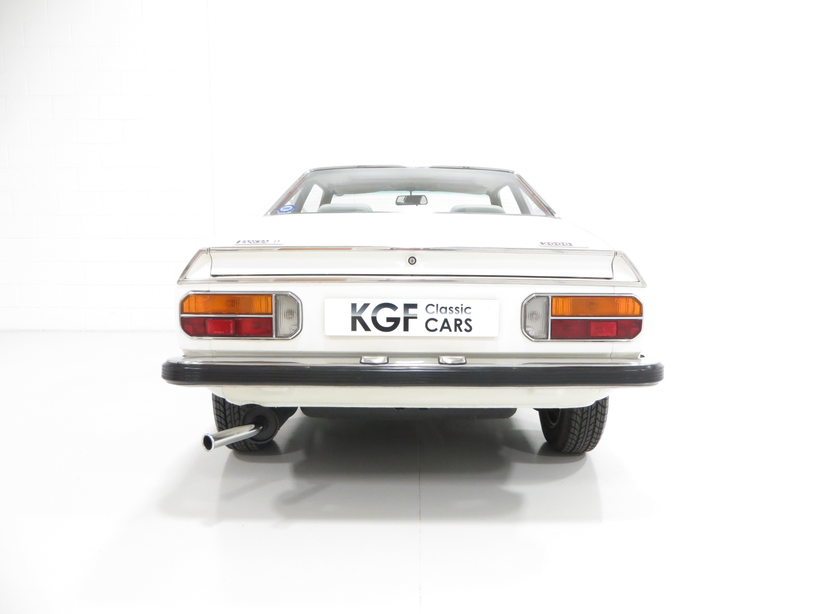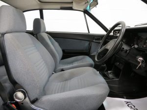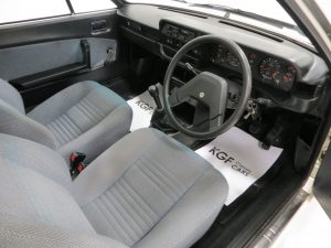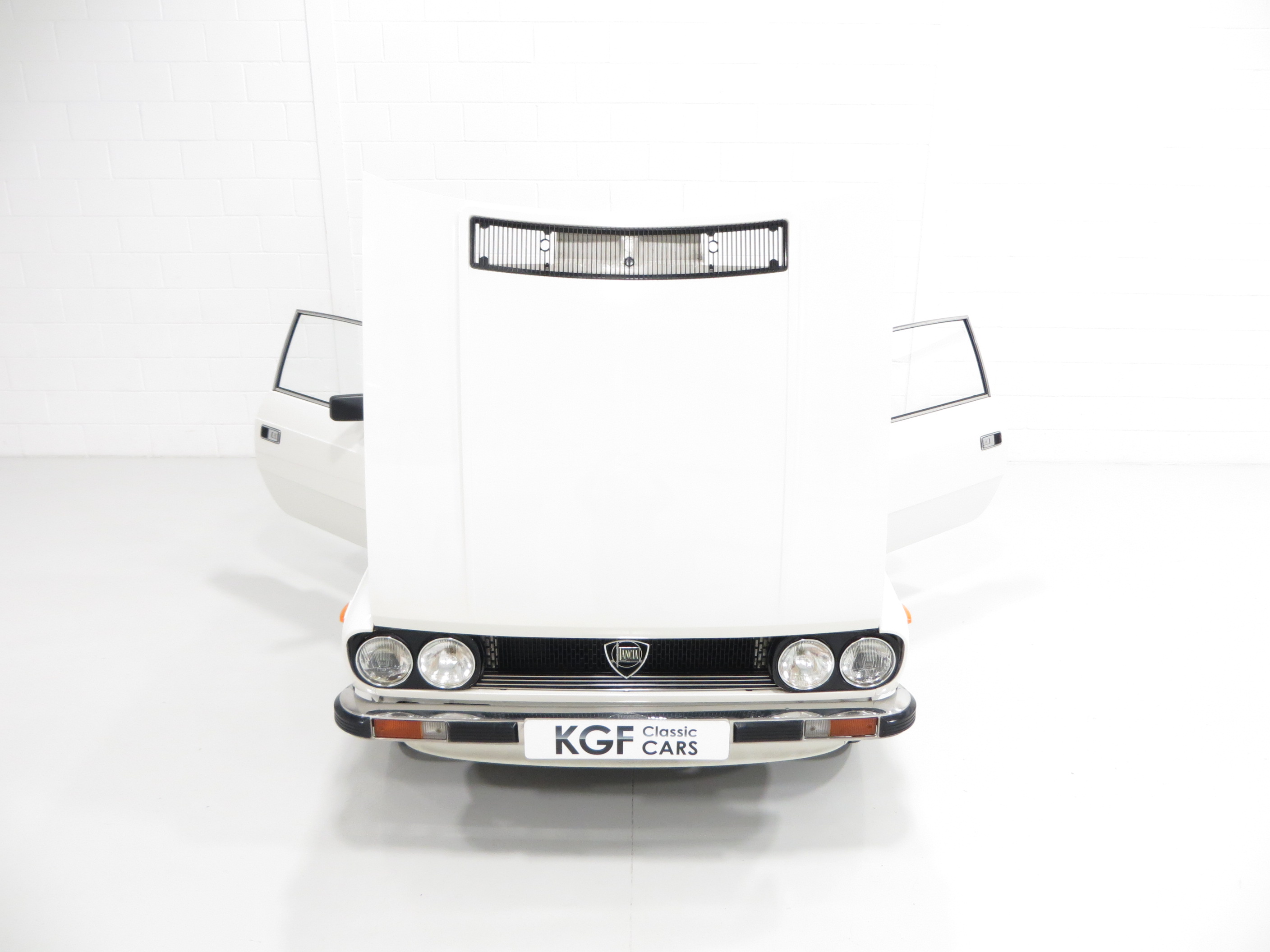 Fabulously appointed in Blue/Grey velvet textured cloth this range topping Lancia is factory perfect having covered such few miles. The driver is presented with a wealth of information thanks to no less than eight gauges and even the oil level indicator push button and inbuilt test button still operate but the voltmeter does not. All carpeting, door cards and headlining is spotlessly clean and provides a nostalgic unspoilt cockpit. Fragile plastics are all remarkably free from damage and cracks and the period Pioneer cassette player mated to an electric aerial still functions. Flair in abundance from a renowned Italian stable.
